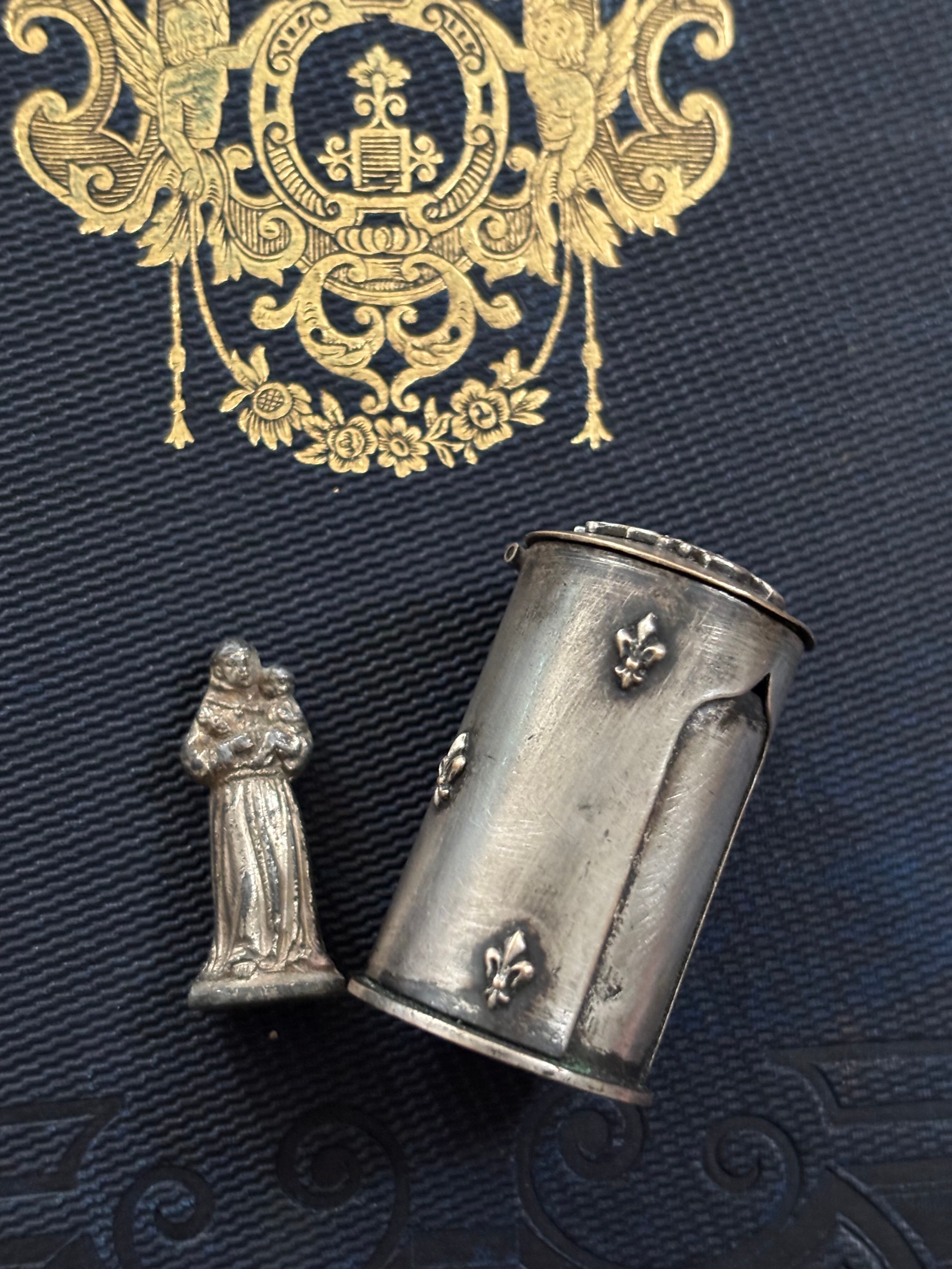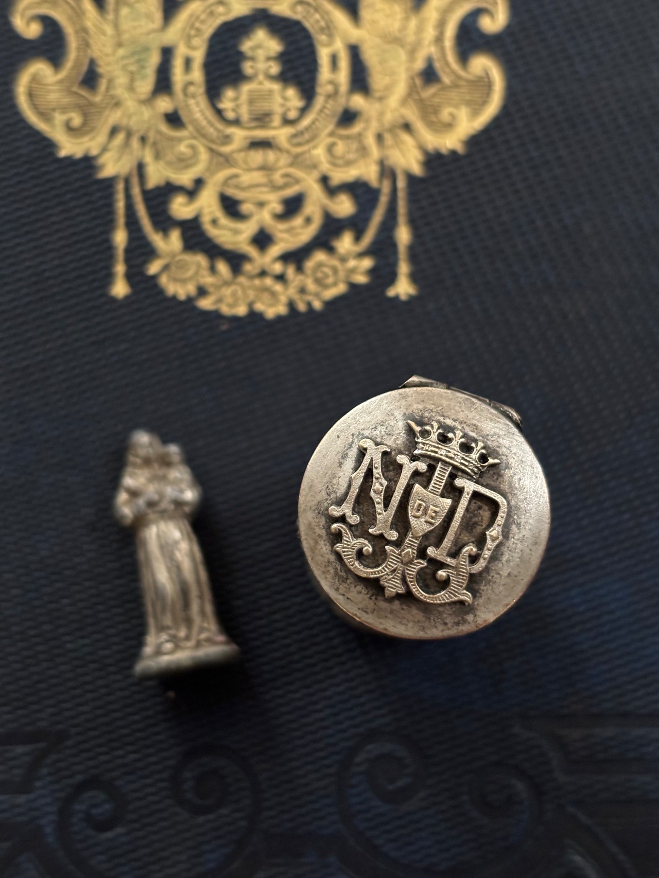 モノグラムと百合の紋章シルバーケース h3.8* 聖母子(キリスト)像入 250921