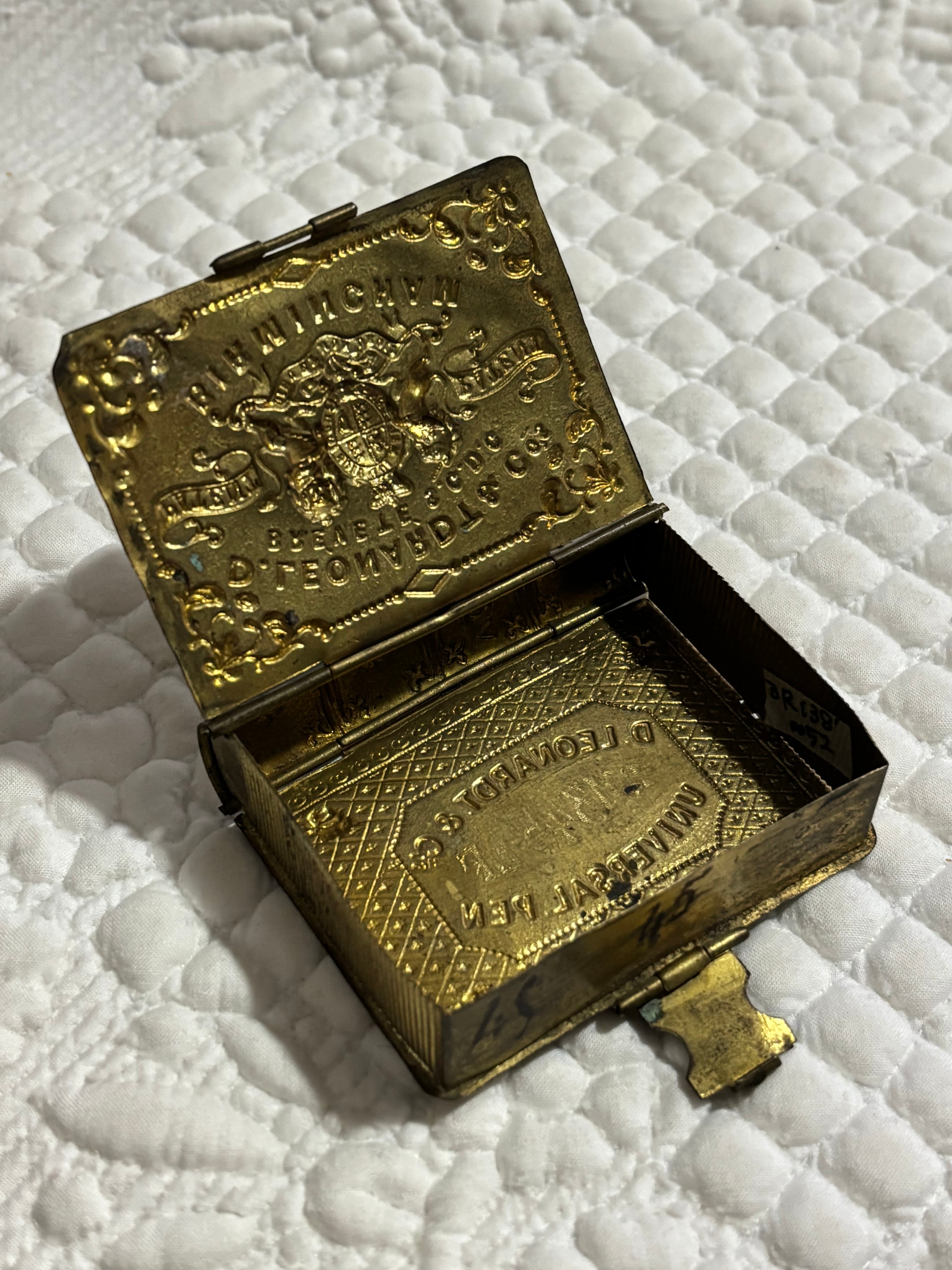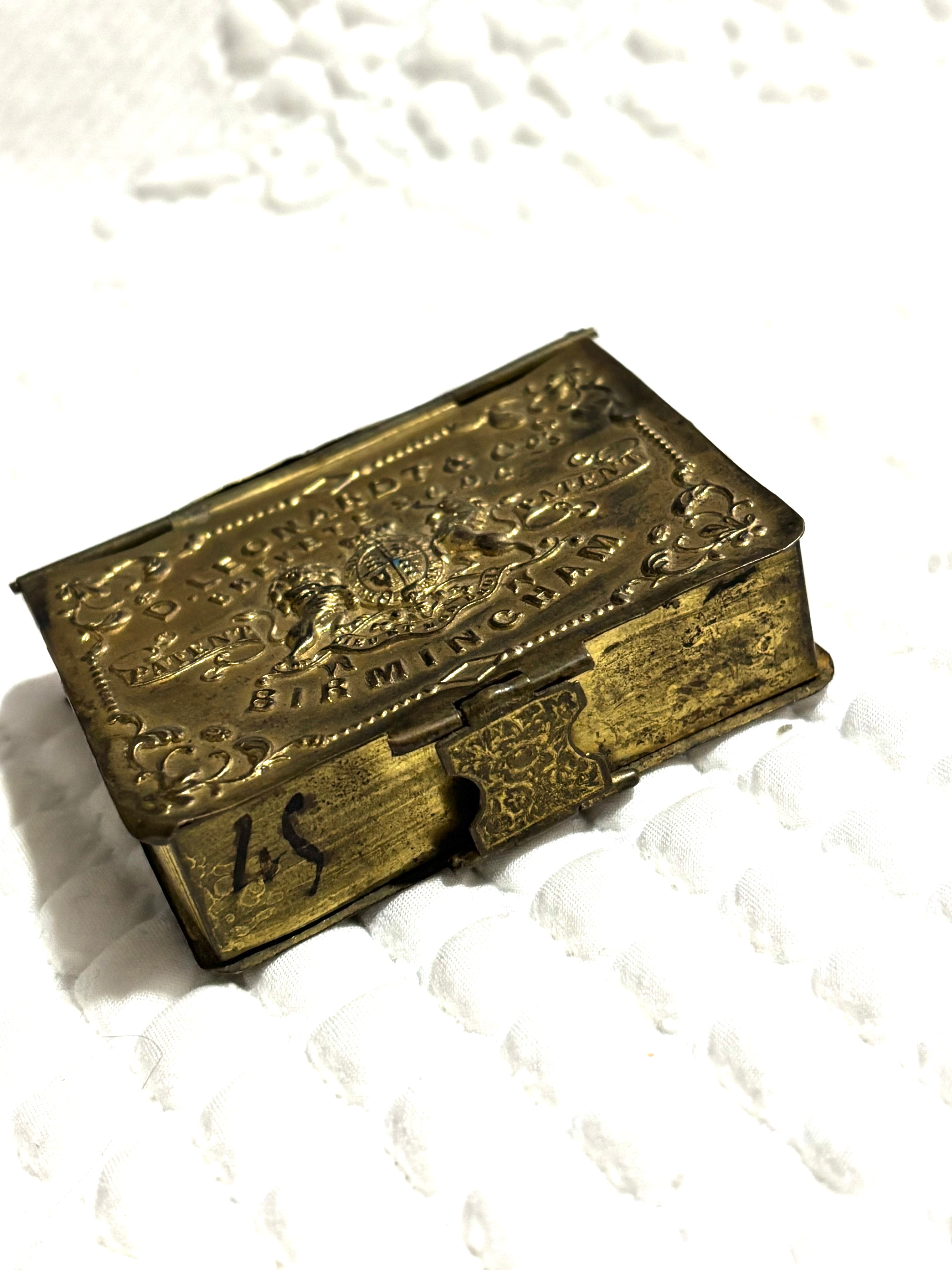 背表紙や裏面、留具にいたるまで見事な意匠が施された 素晴らしいケースです。メタルが美しく朽ちて唯一無二のアンティーク♪