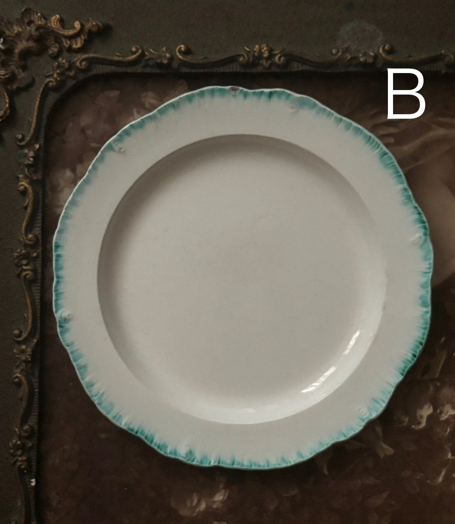 クレイユと合併する前の19世紀前半のモントロー窯のフリルプレート。エメラルドグリーン手彩色。