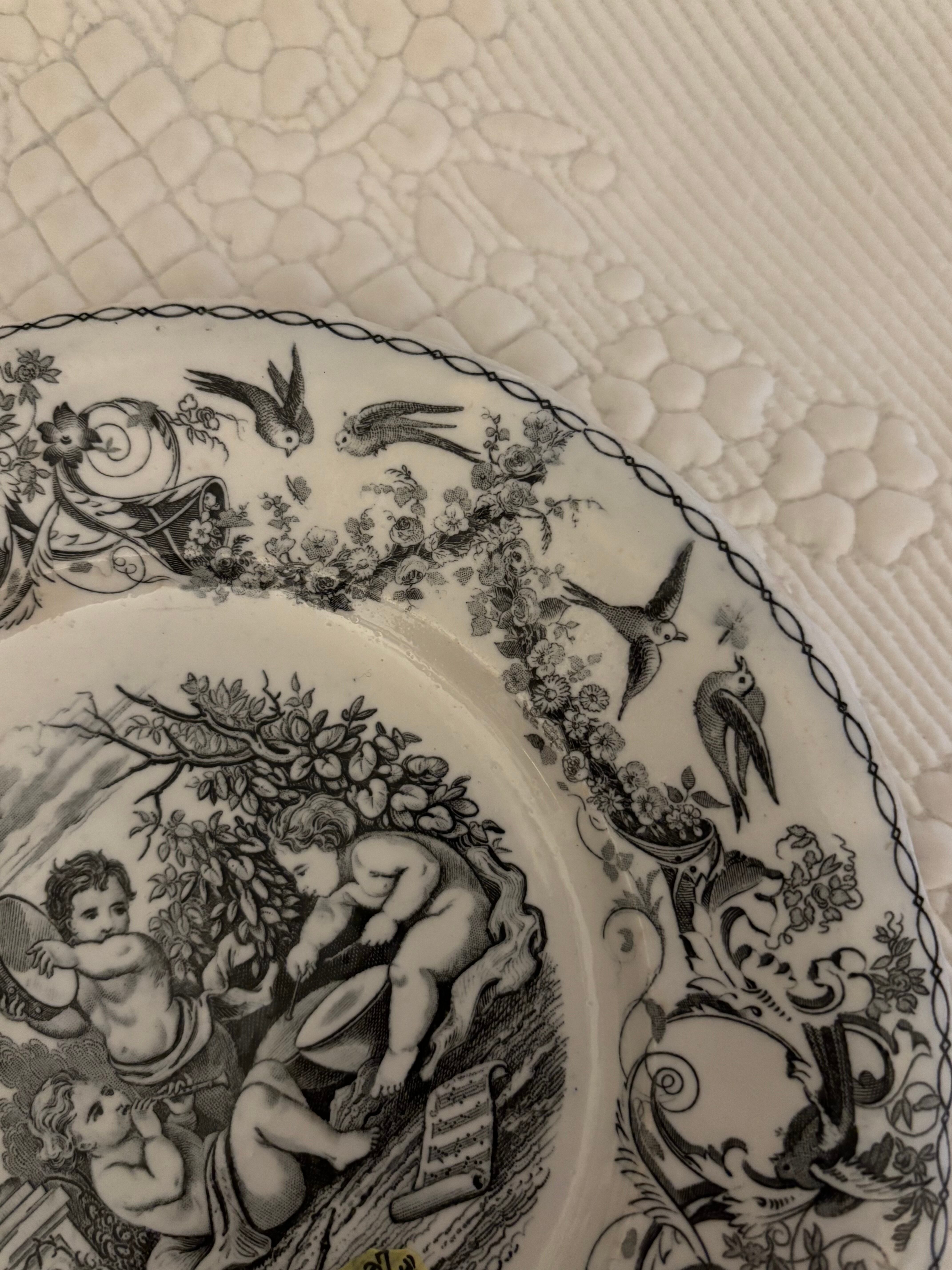 グリニー窯*愛らしいチェロブたちの12ヶ月より 2月 グリザイユプレート