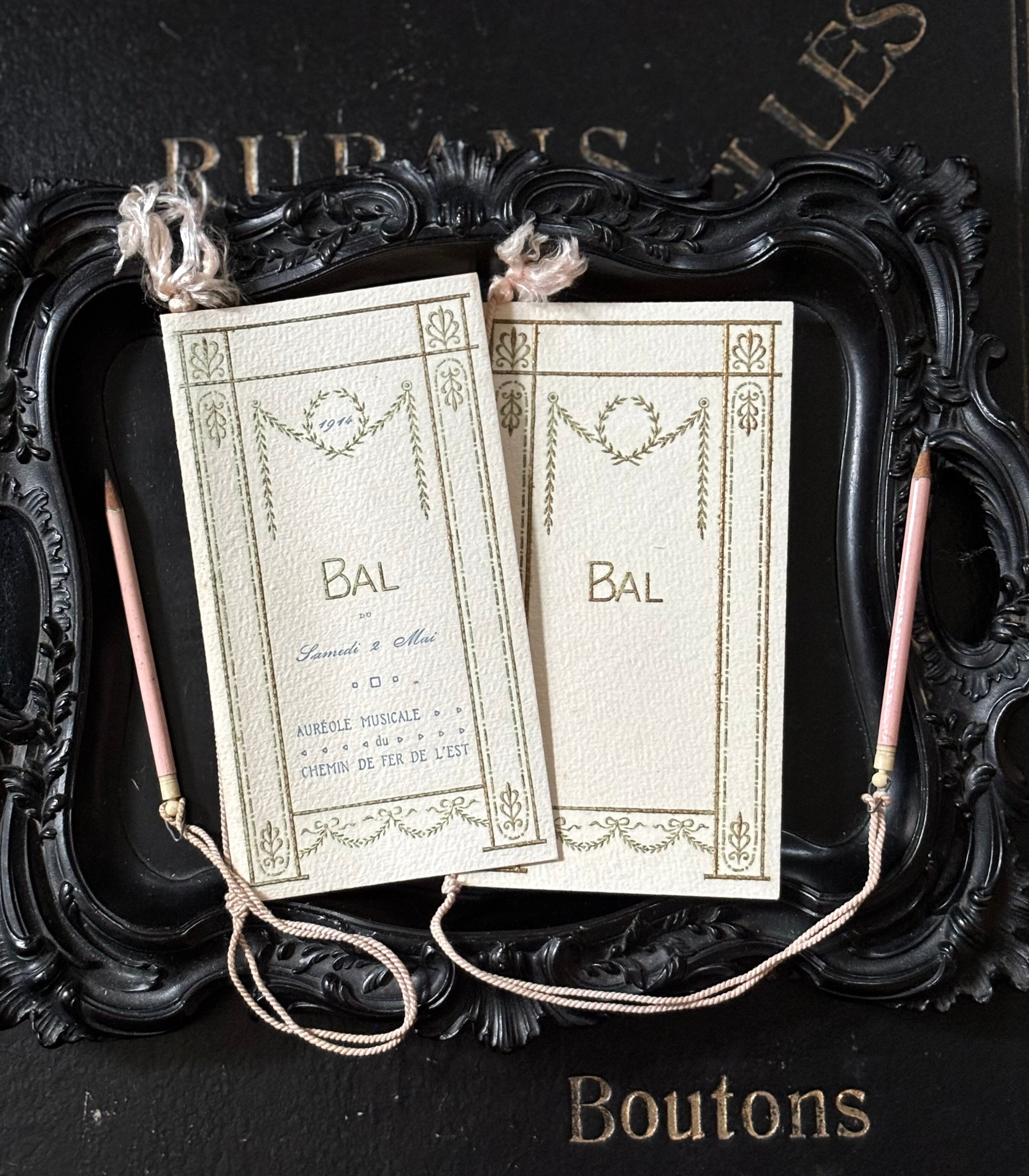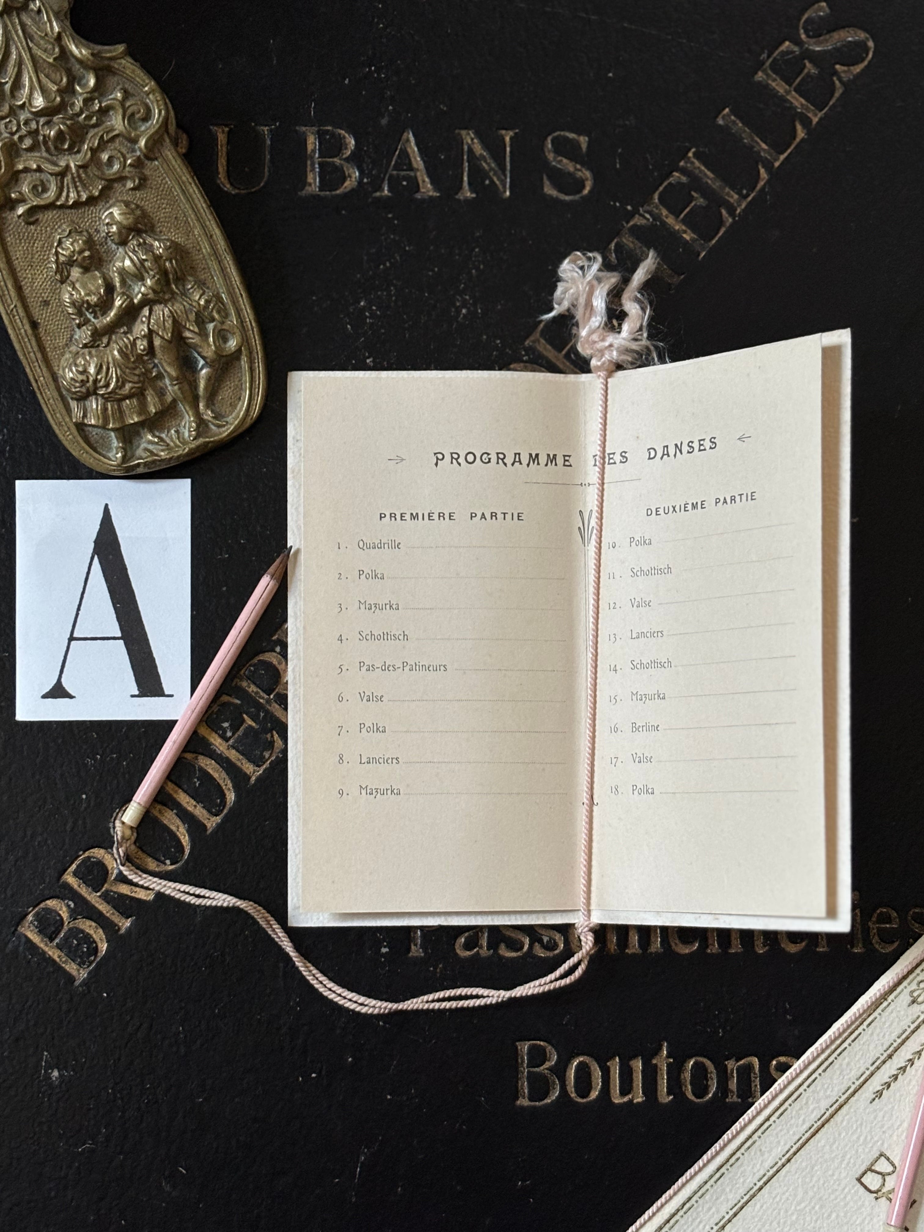 未使用の舞踏会用の手帳で、画像ではわかりにくいのですが、金銀彩の装飾が僅かに凸で美しいです♪