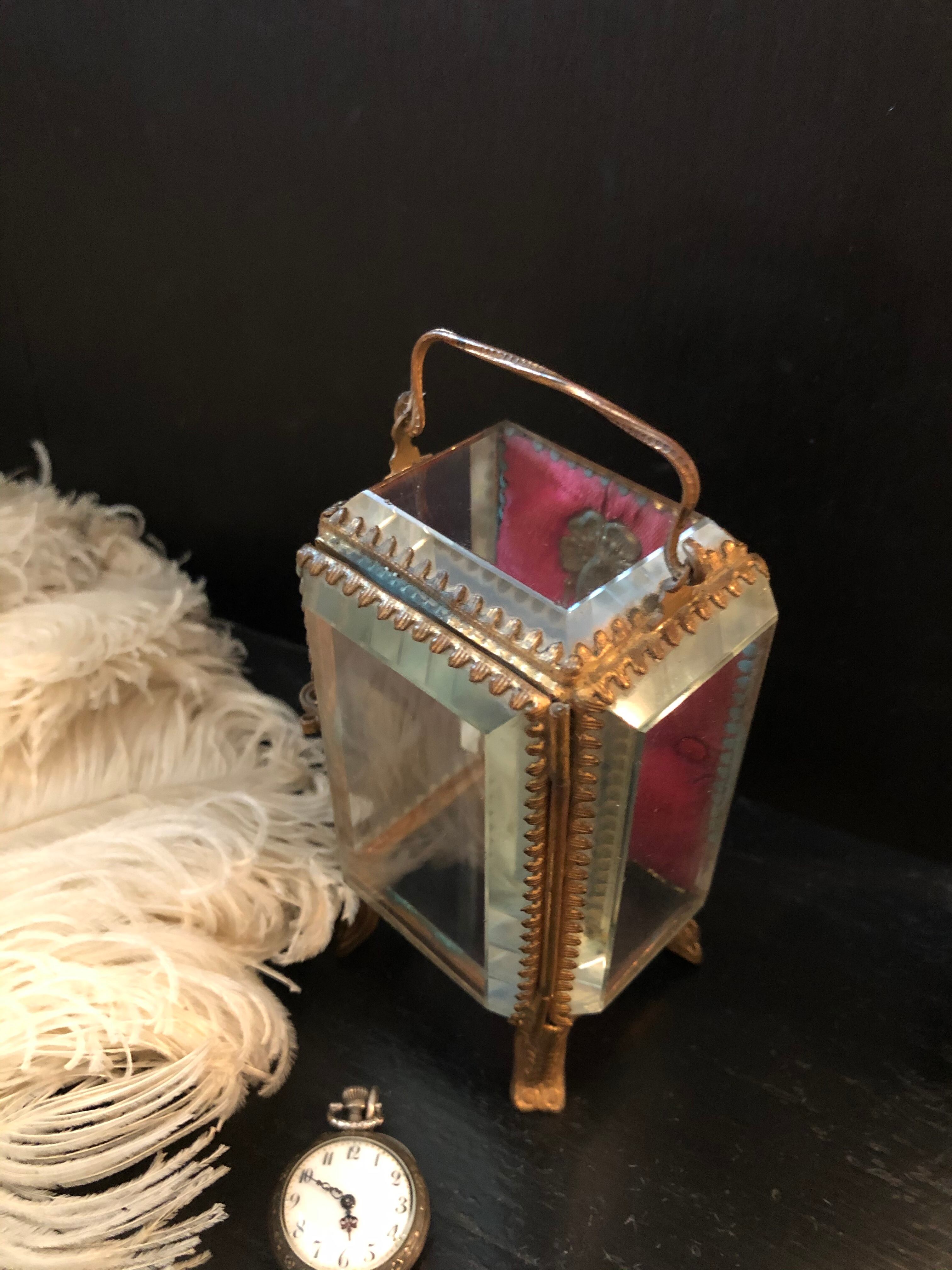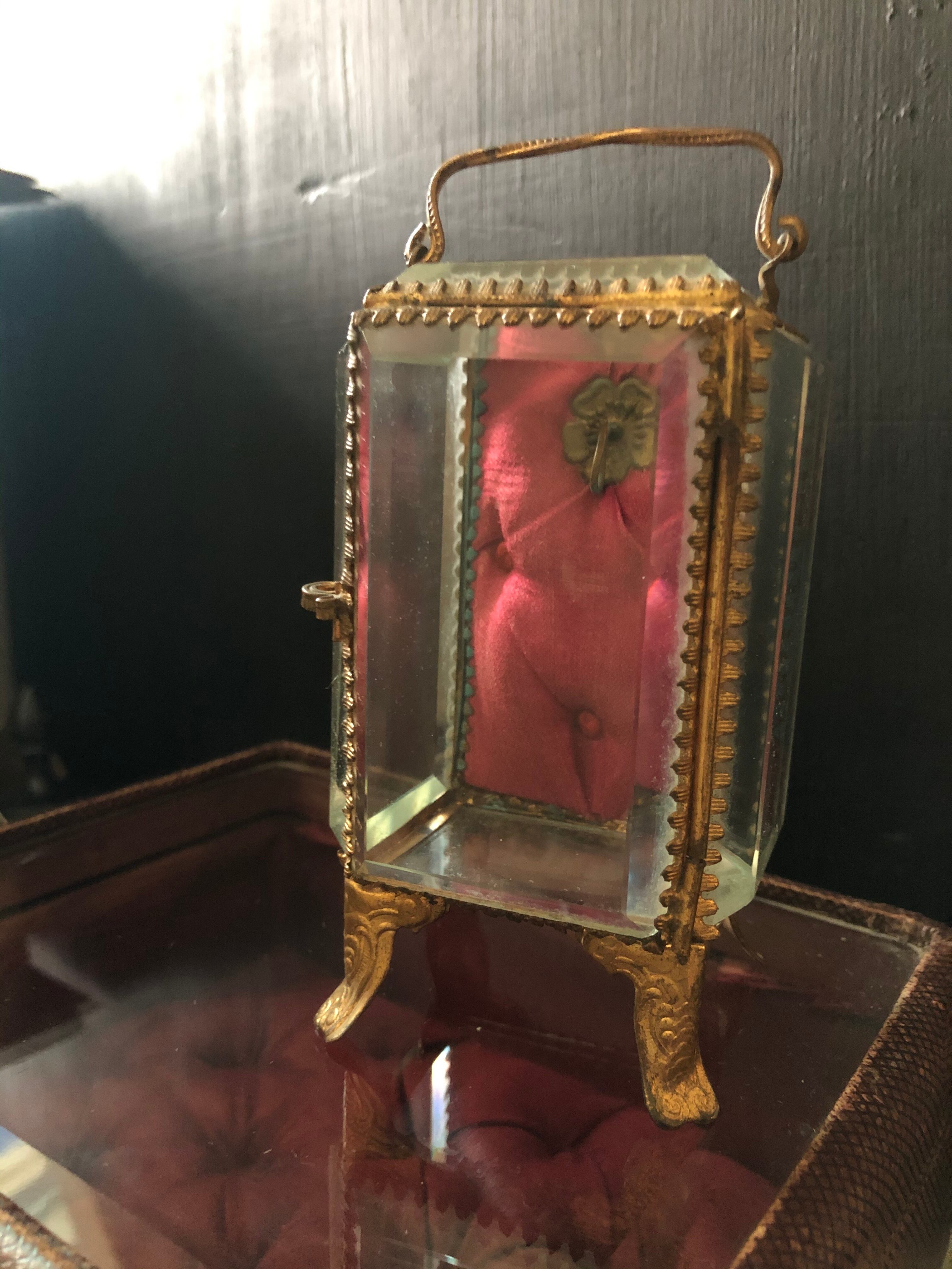 厚ガラスのジュエリーケース/懐中時計用 縦型。
