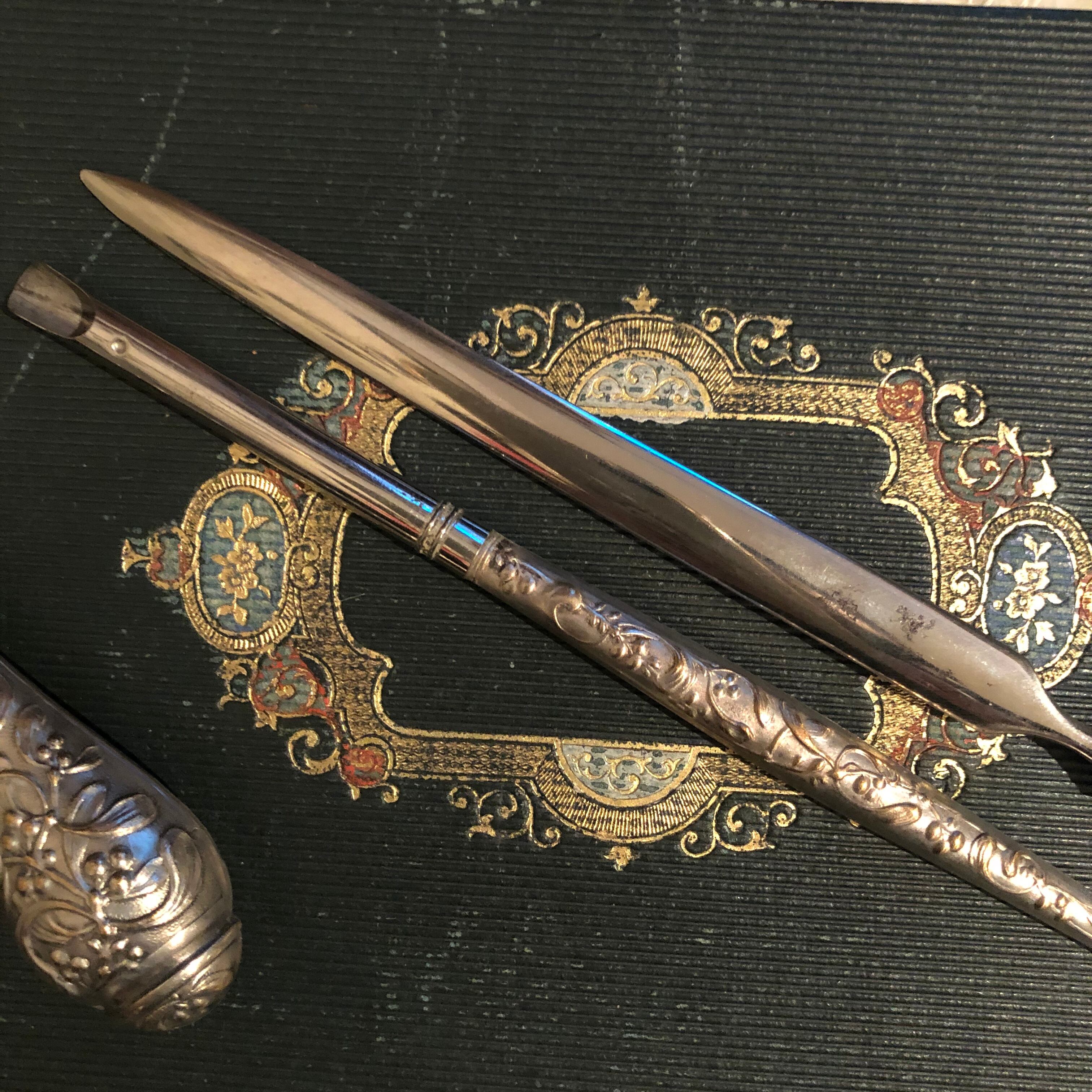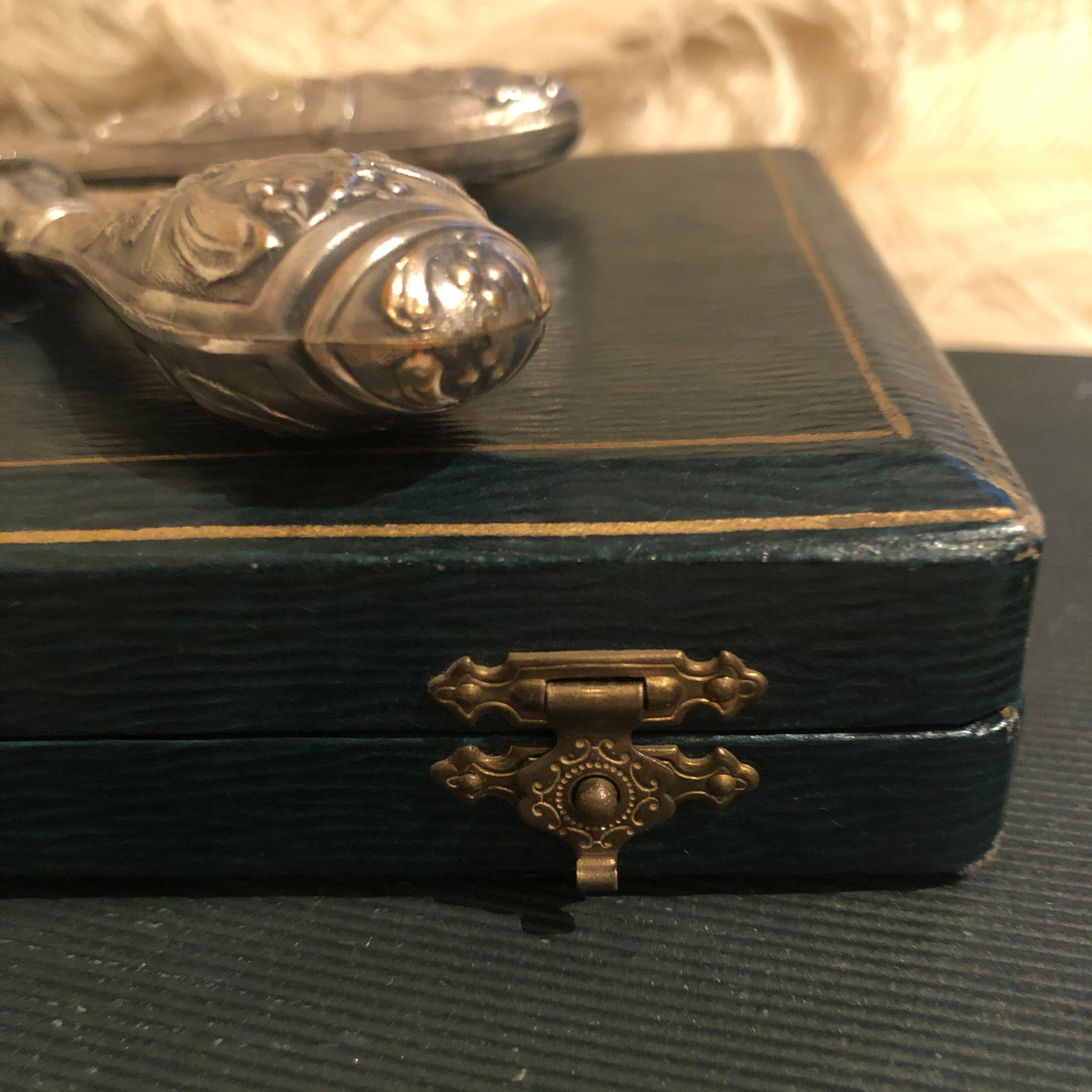 箱には凝った美しい留金具が使われており、きれいな状態で残っていますが、中のベルベットに変色があります。リメイクしてもさらに立派なお箱になるでしょう♪