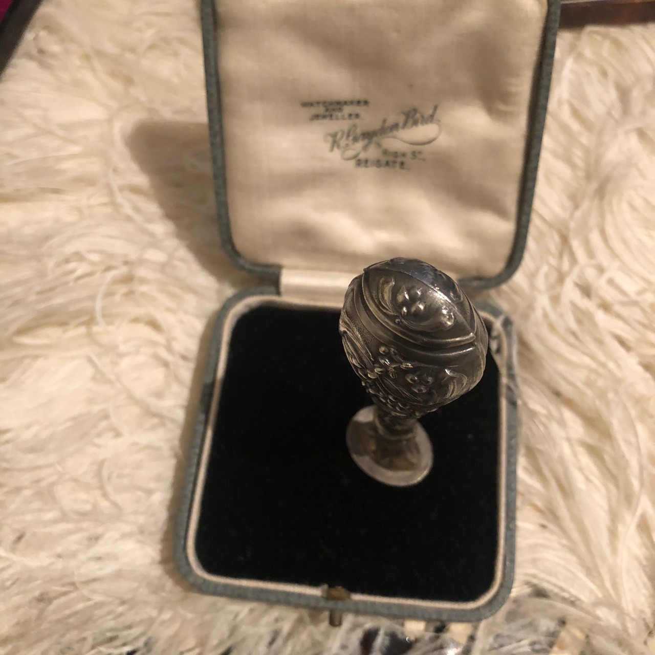シルバー(メタル)のカシェ。シルバープレート。シルバー刻印は見当たりません。