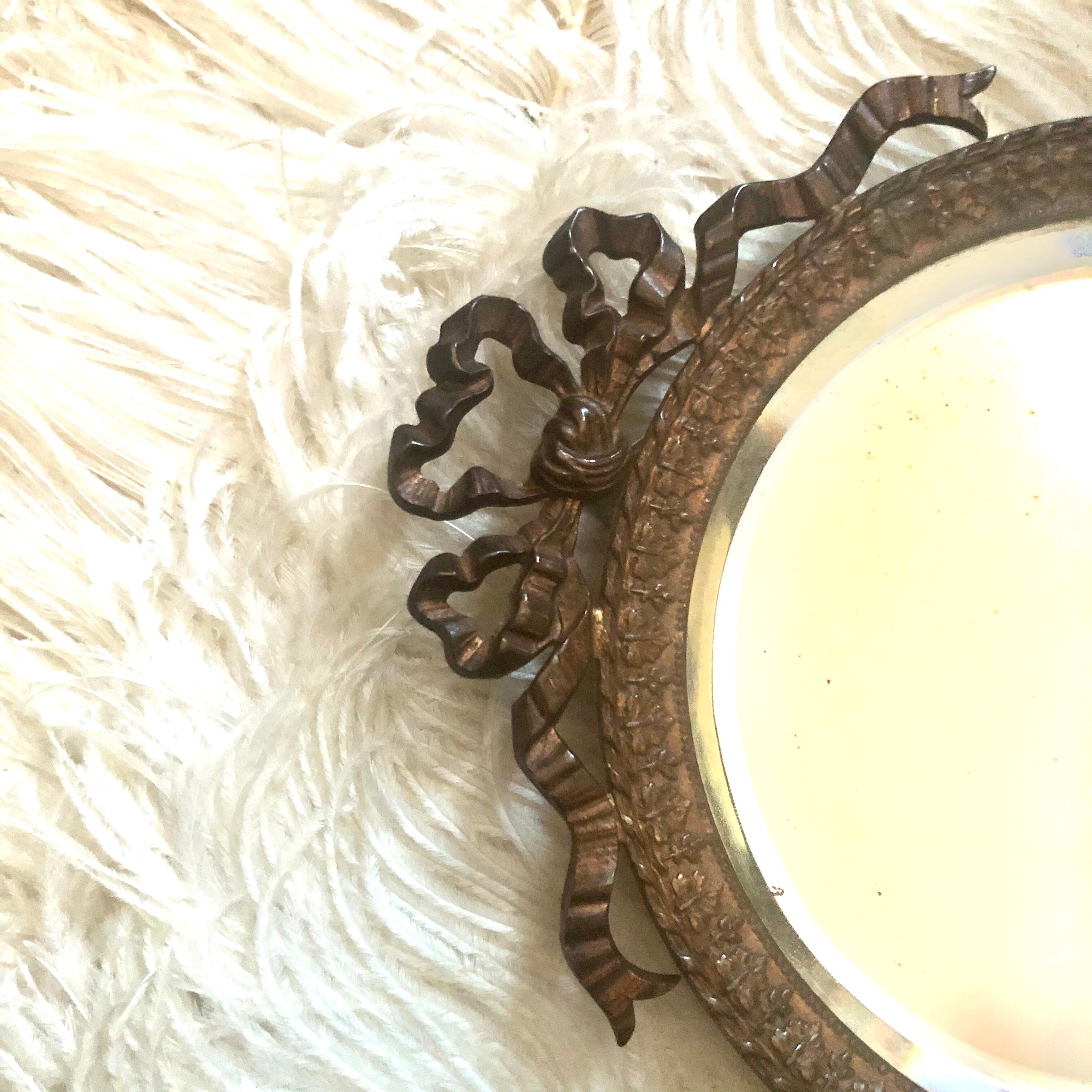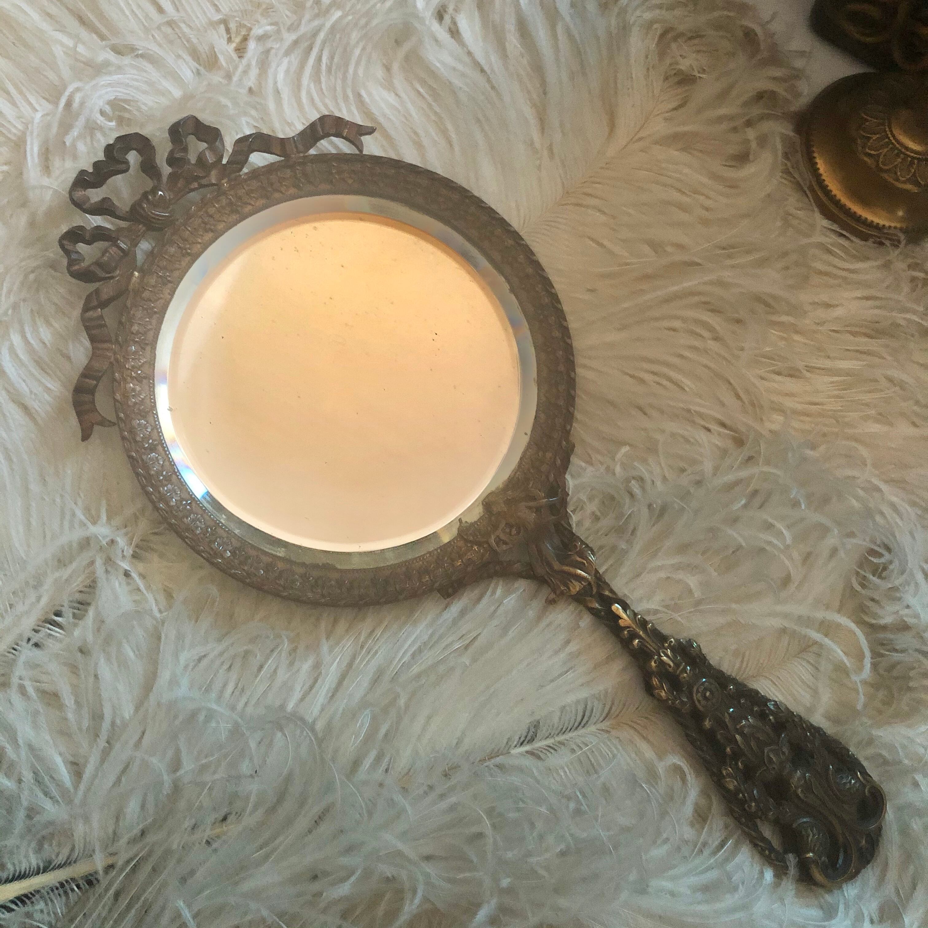 女神やリボンなど大変凝った装飾の美しいハンドミラー♬