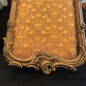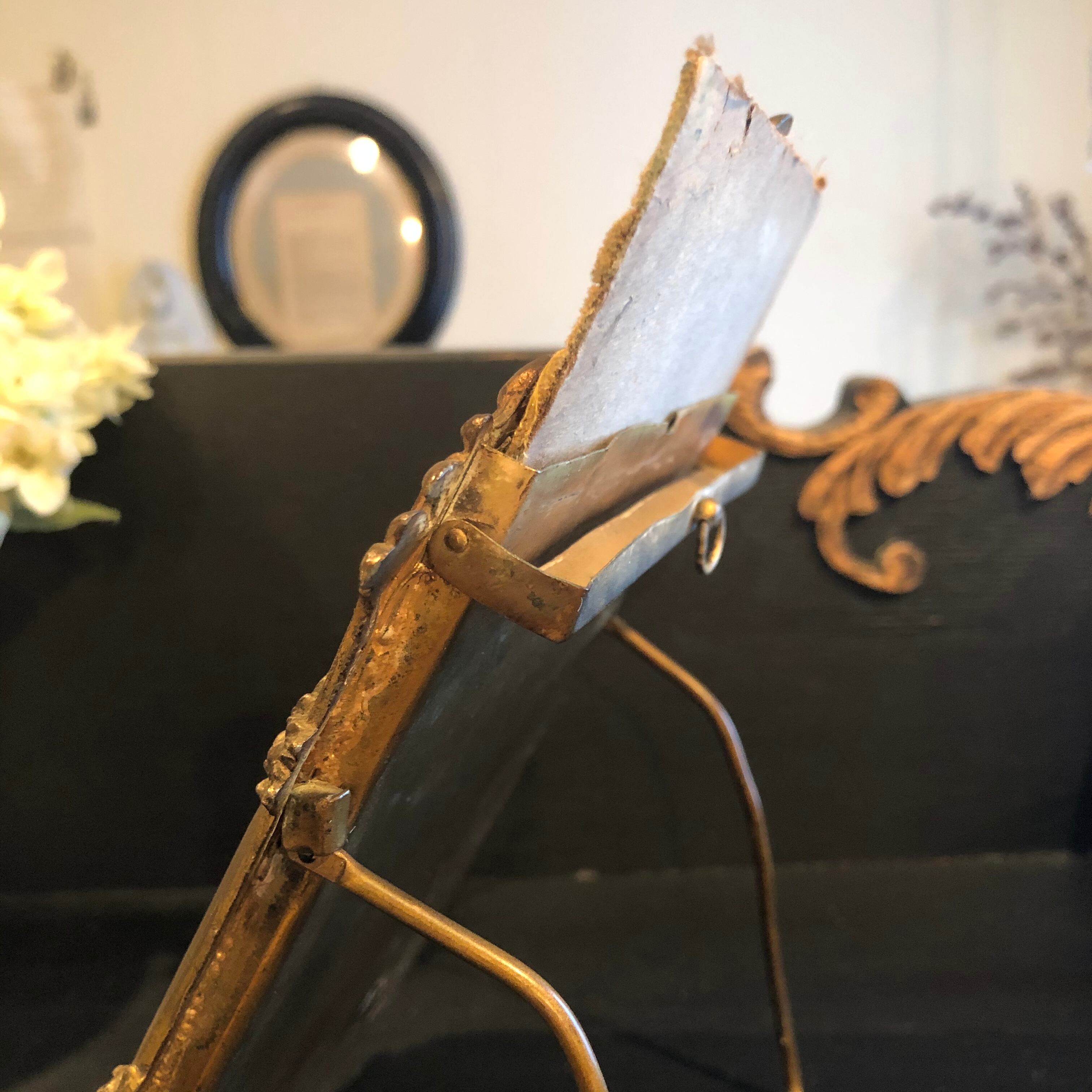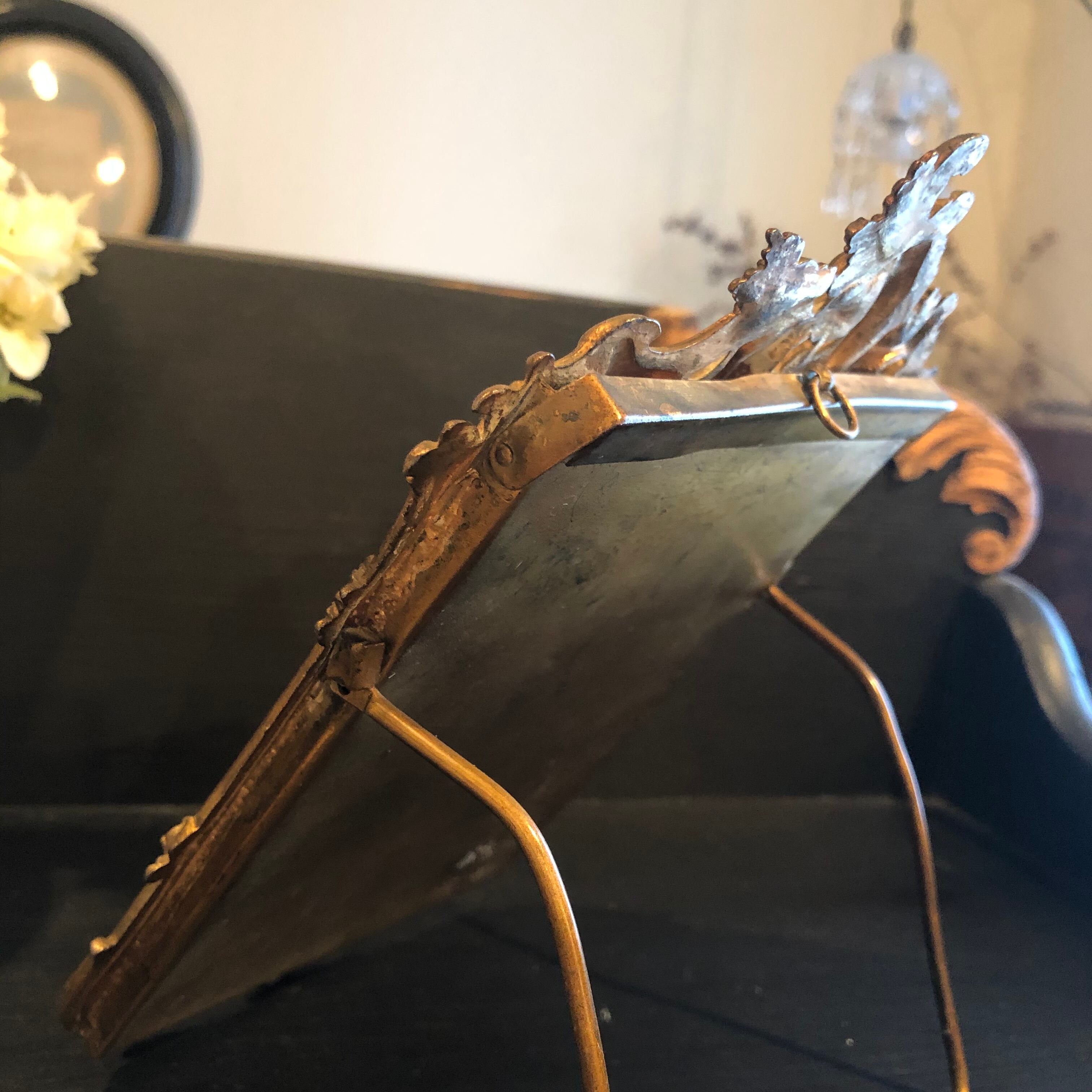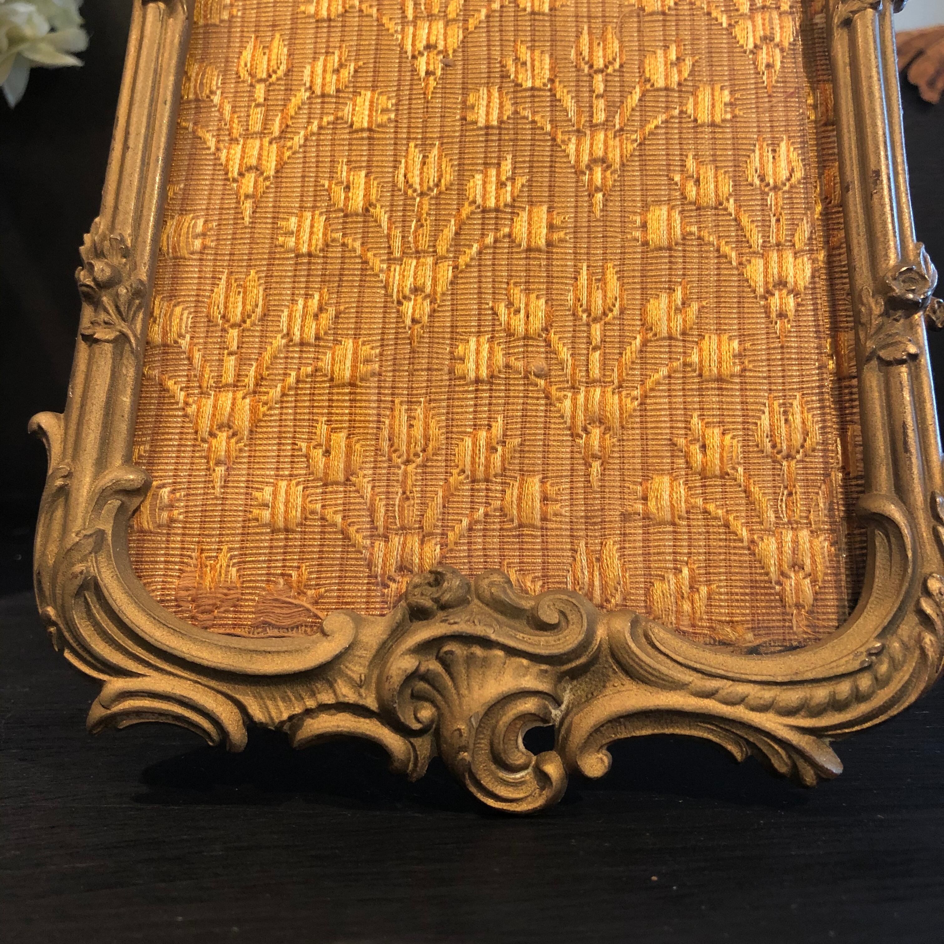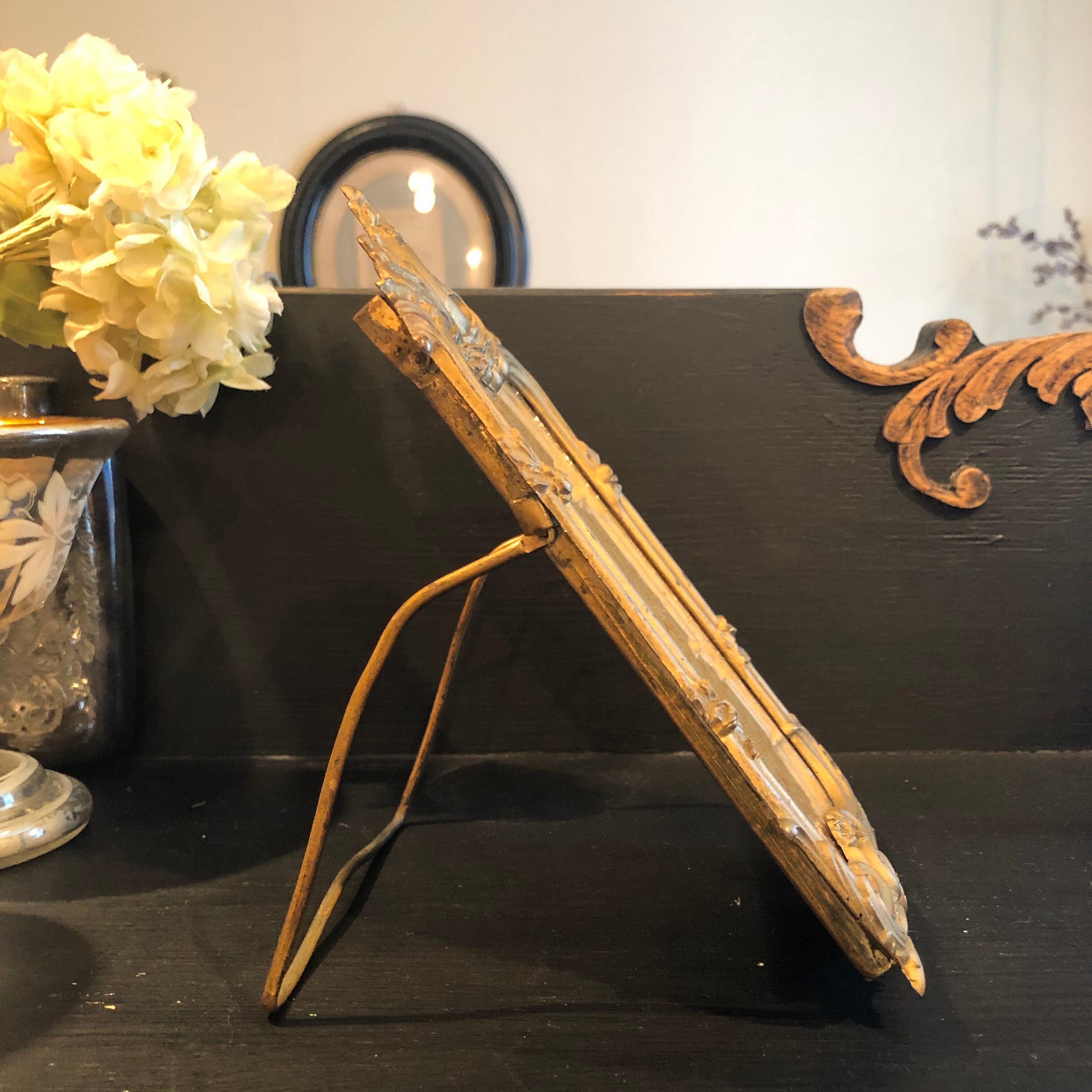 ロカイユ装飾が素晴らしいフォトスタンド✨壁掛けもできます。ピッタリの豪華な刺繍布の台紙がありましたのでお付けいたします。このままでも絵になりますね♪