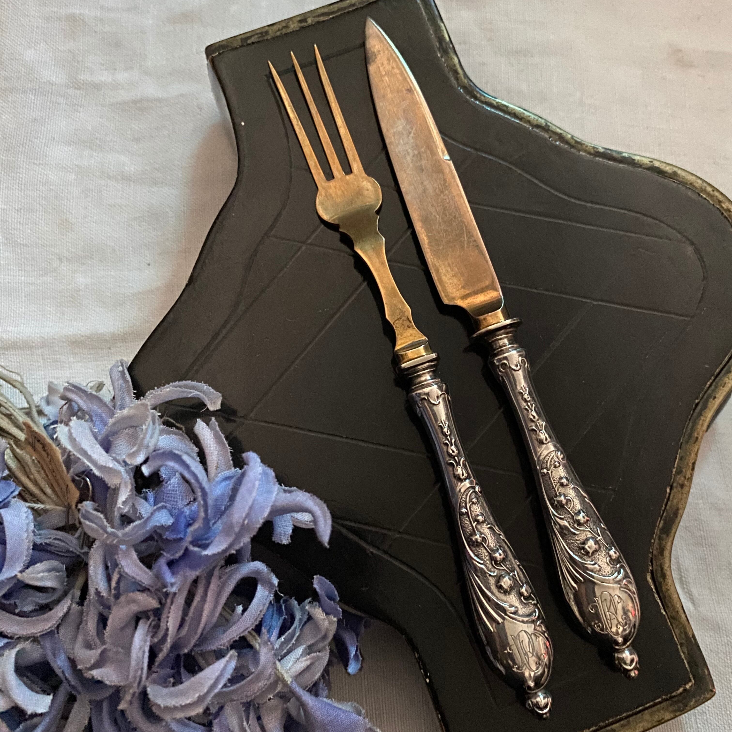 ドイツアンティーク デザートフルーツ用ナイフ&フォークのペア