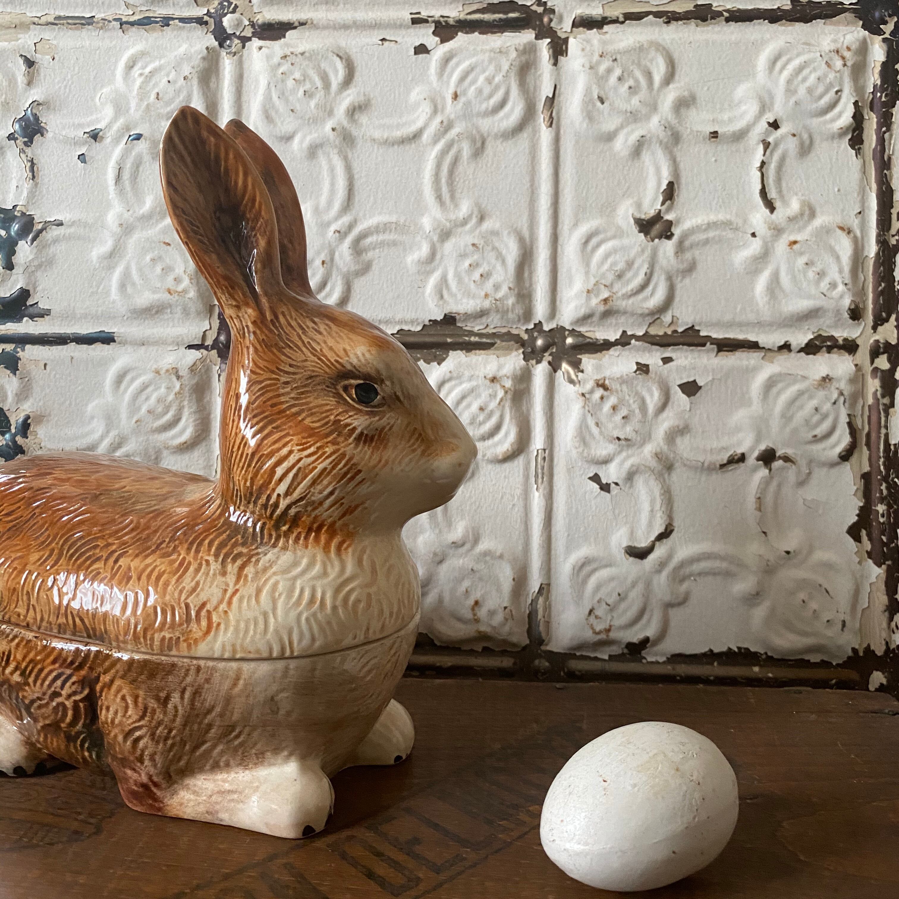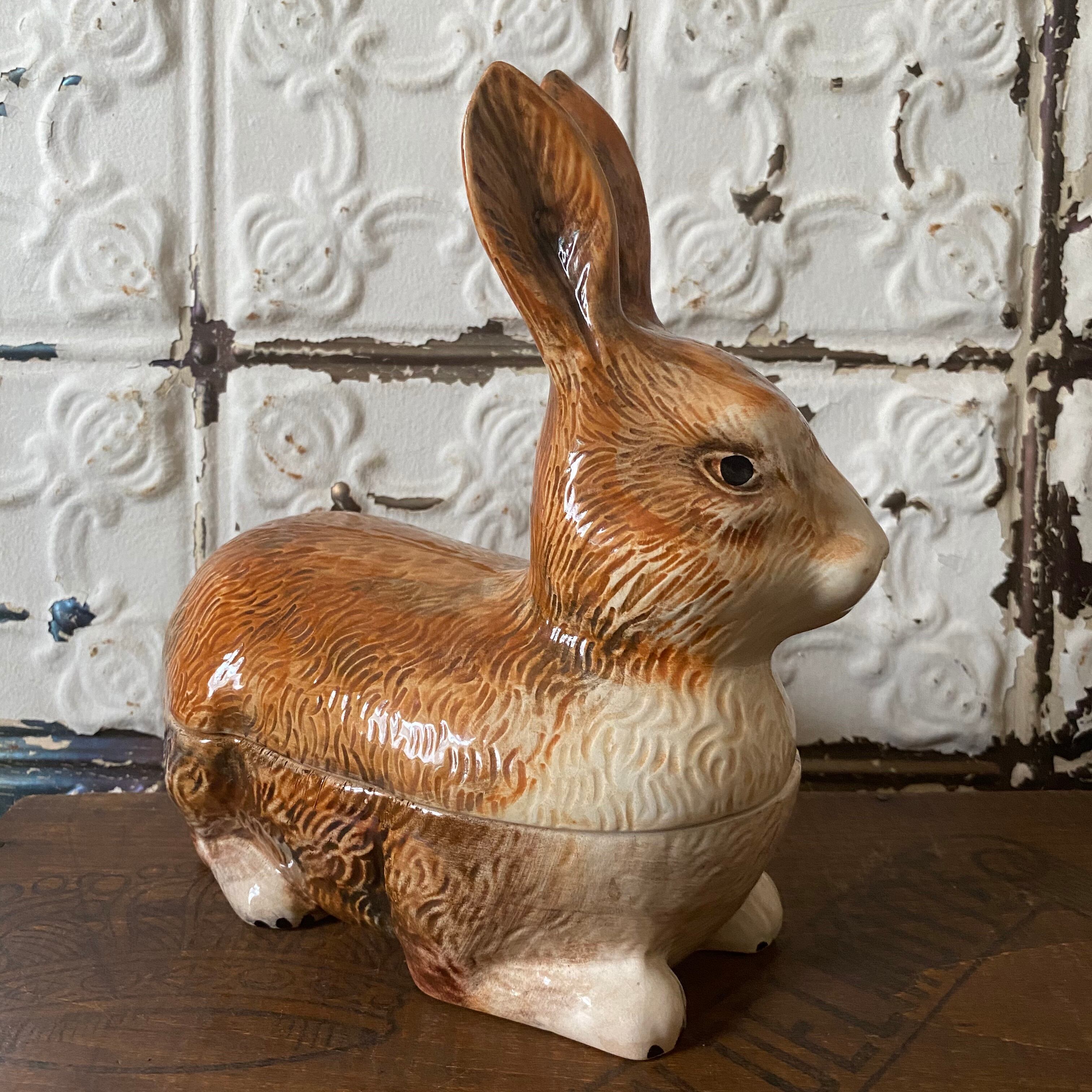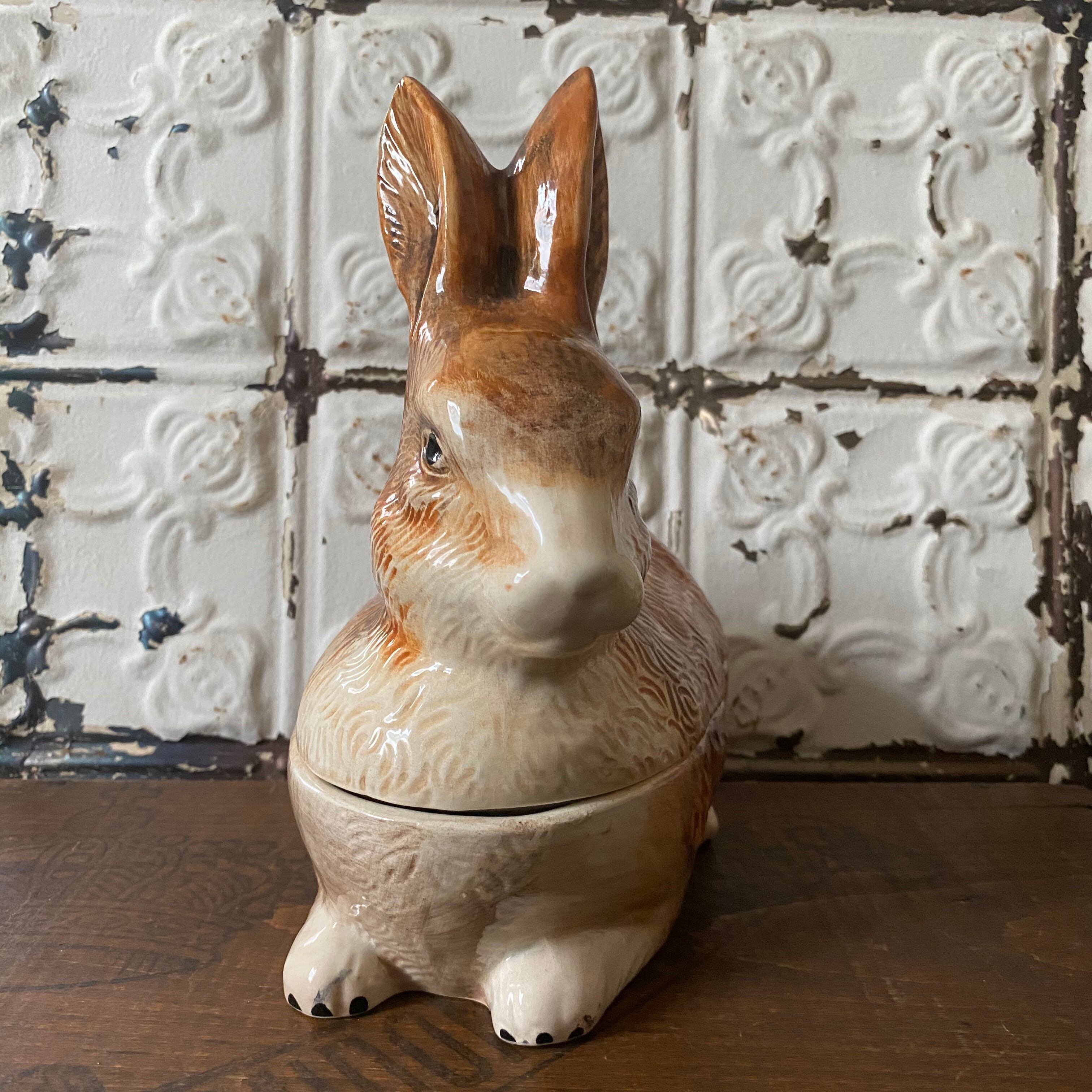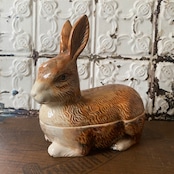 ふてぶてしい顔つきがまた愛らしい、ミシェル・コーガンの陶器のウサギ容器はコレクターアイテム♪
