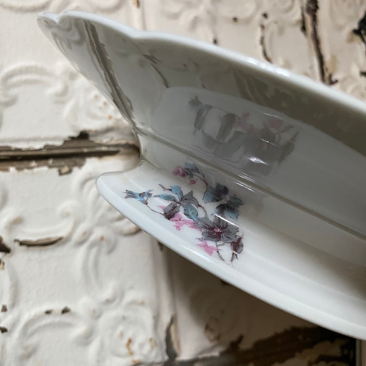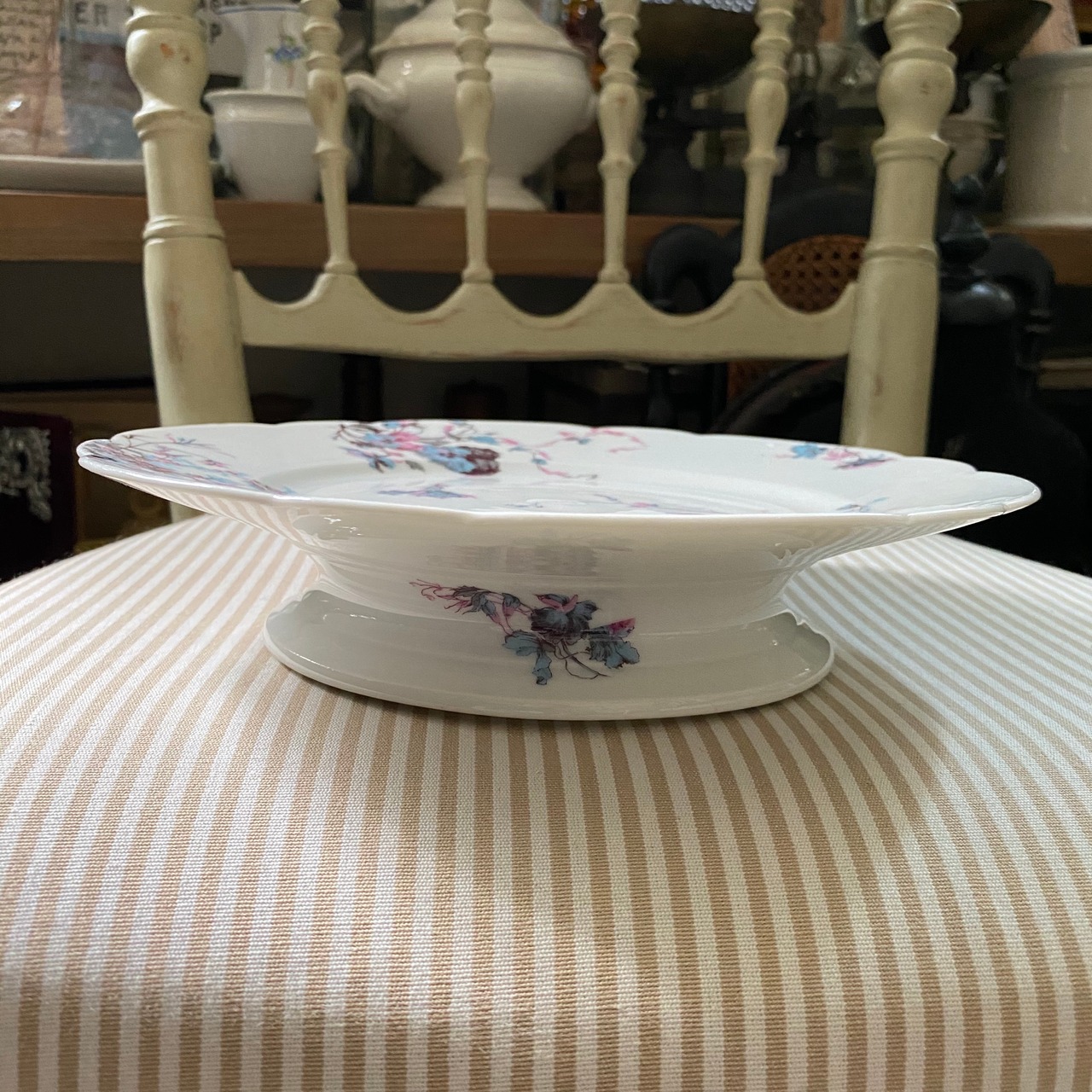 白磁に上品な花柄のコンポート。脚の高い平皿タイプなのでケーキなどものせられます。