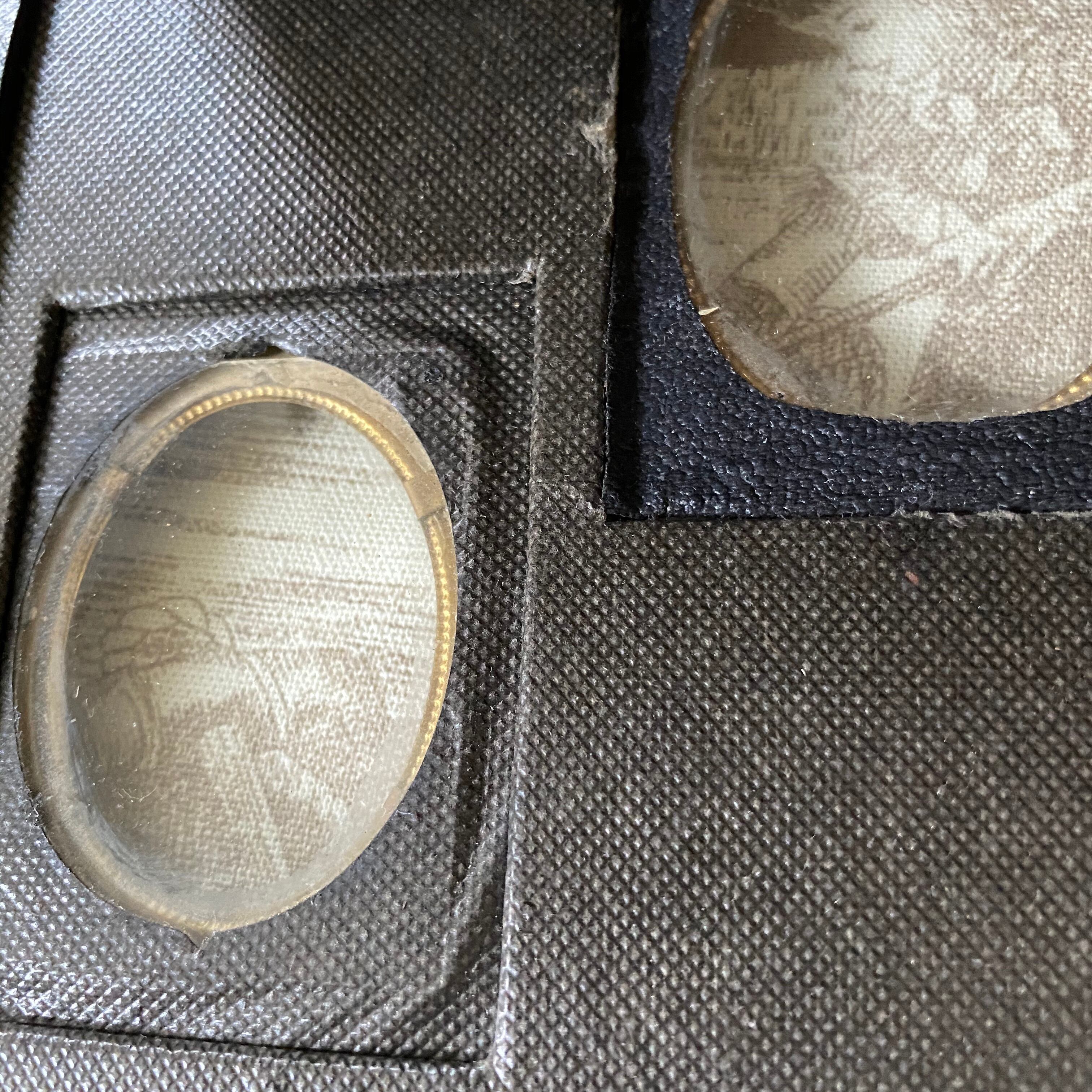 大小2種類のオーバル4窓がレアな、小さめの壁掛スタンド両用ガラス付フレーム