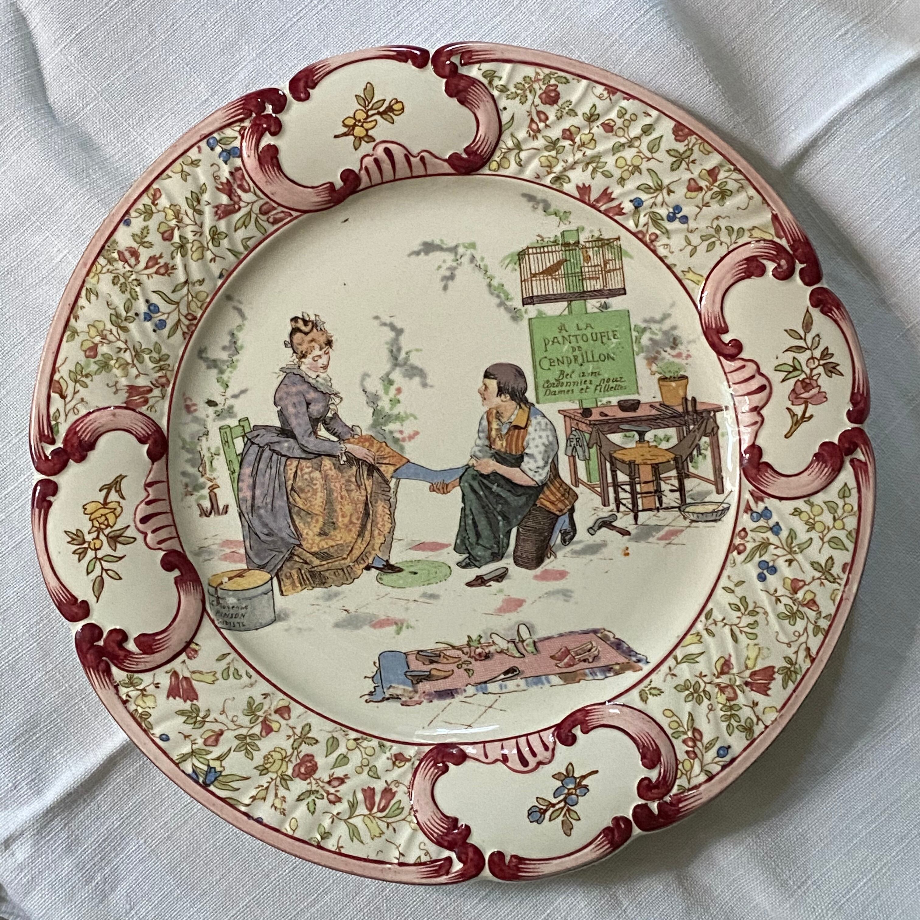 19世紀サルグミンヌU&C アルベール・リシャール*の楽しい絵皿(*本も出ている有名作家です)