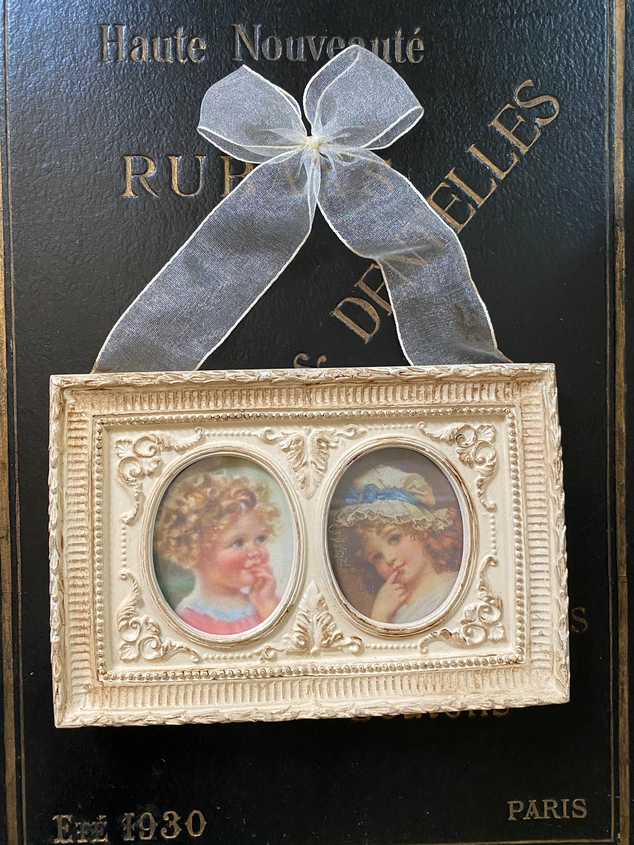 2窓*ホワイトレリーフ額フレーム,フォトスタンド