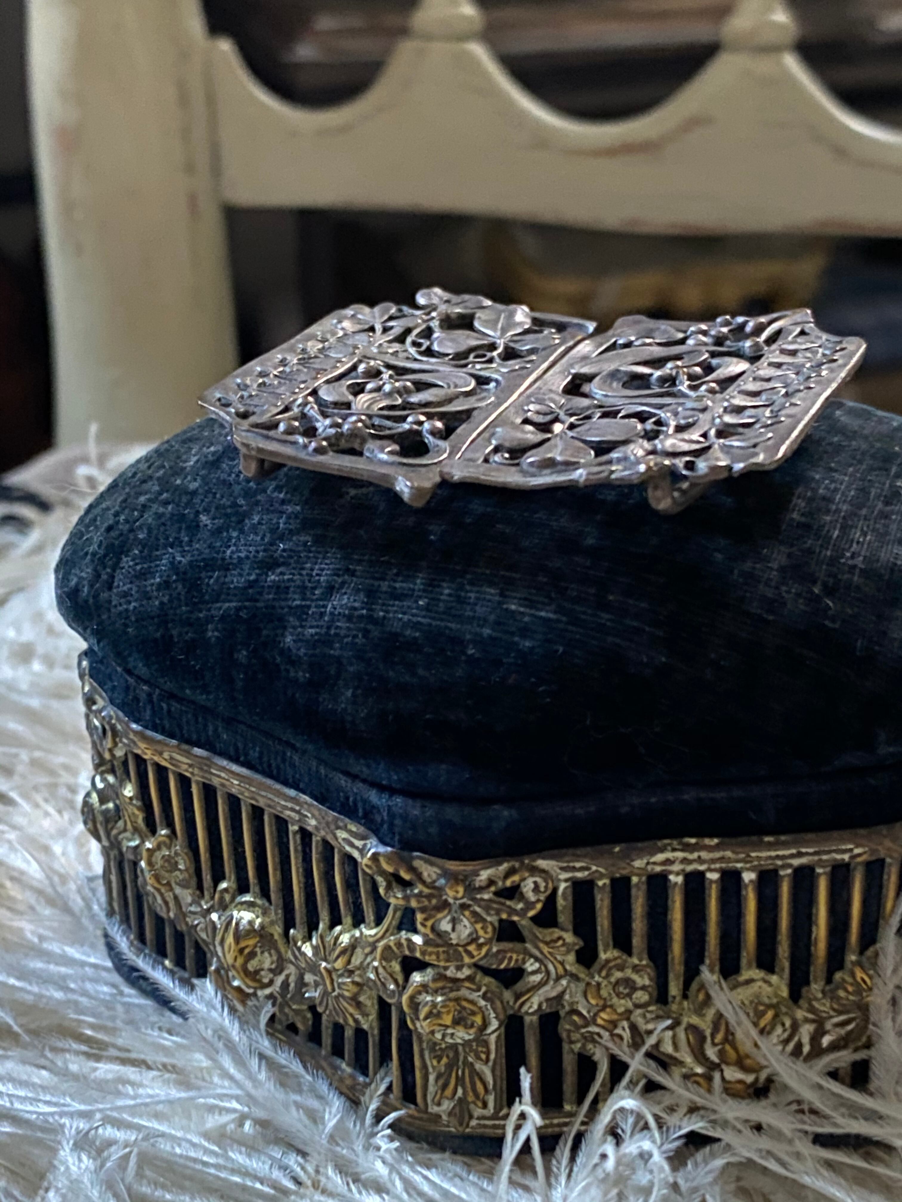 アールヌーボーとアールデコをともに感じるような素晴らしいデザイン。ブローチなどアクセサリーに加工したり、インテリアとして額装しても素敵なパーツだと思います♪