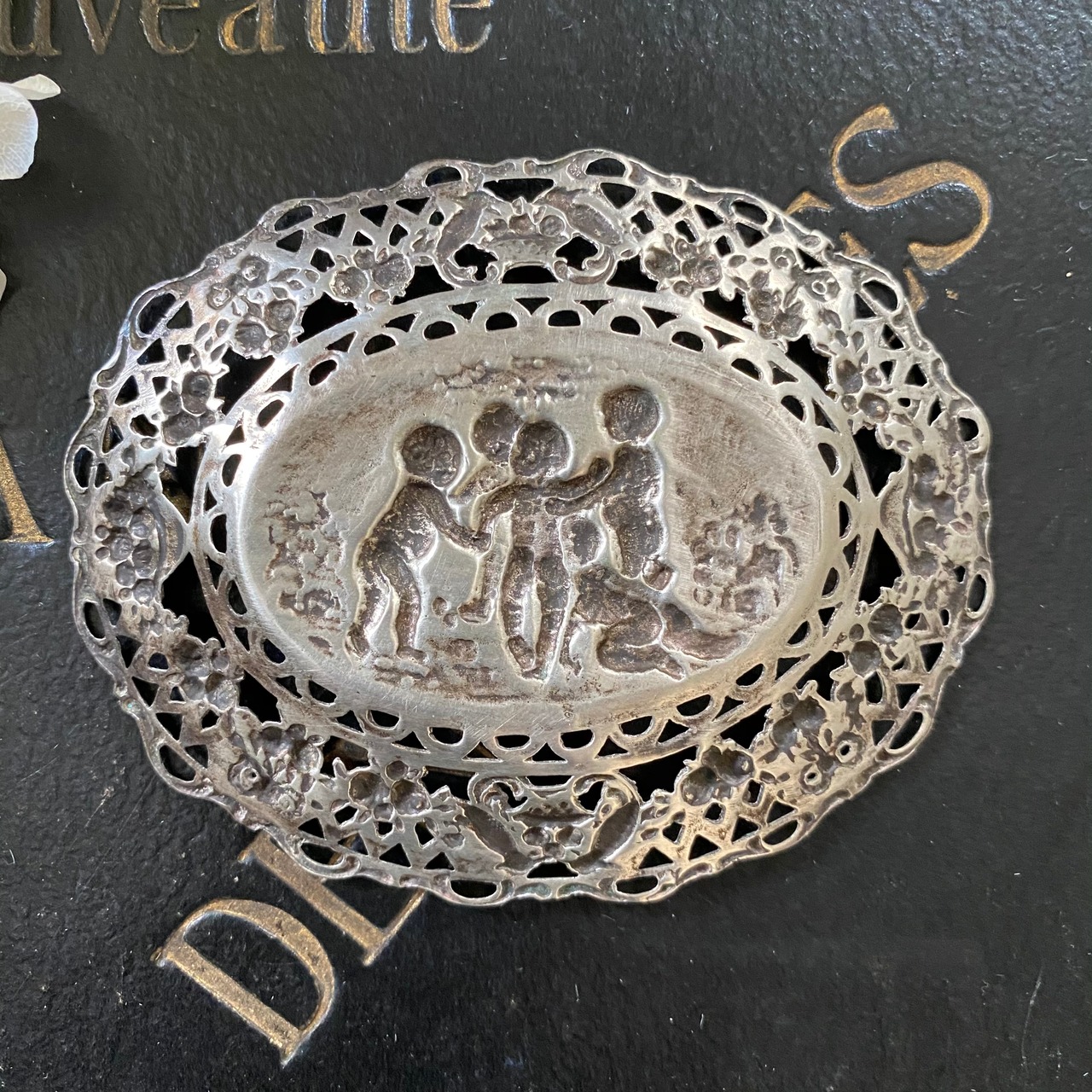 ぷっくりした天使のような可愛らしいベビーたちが戯れ、ローズパニエとオウムのリムの装飾も素晴らしいです!