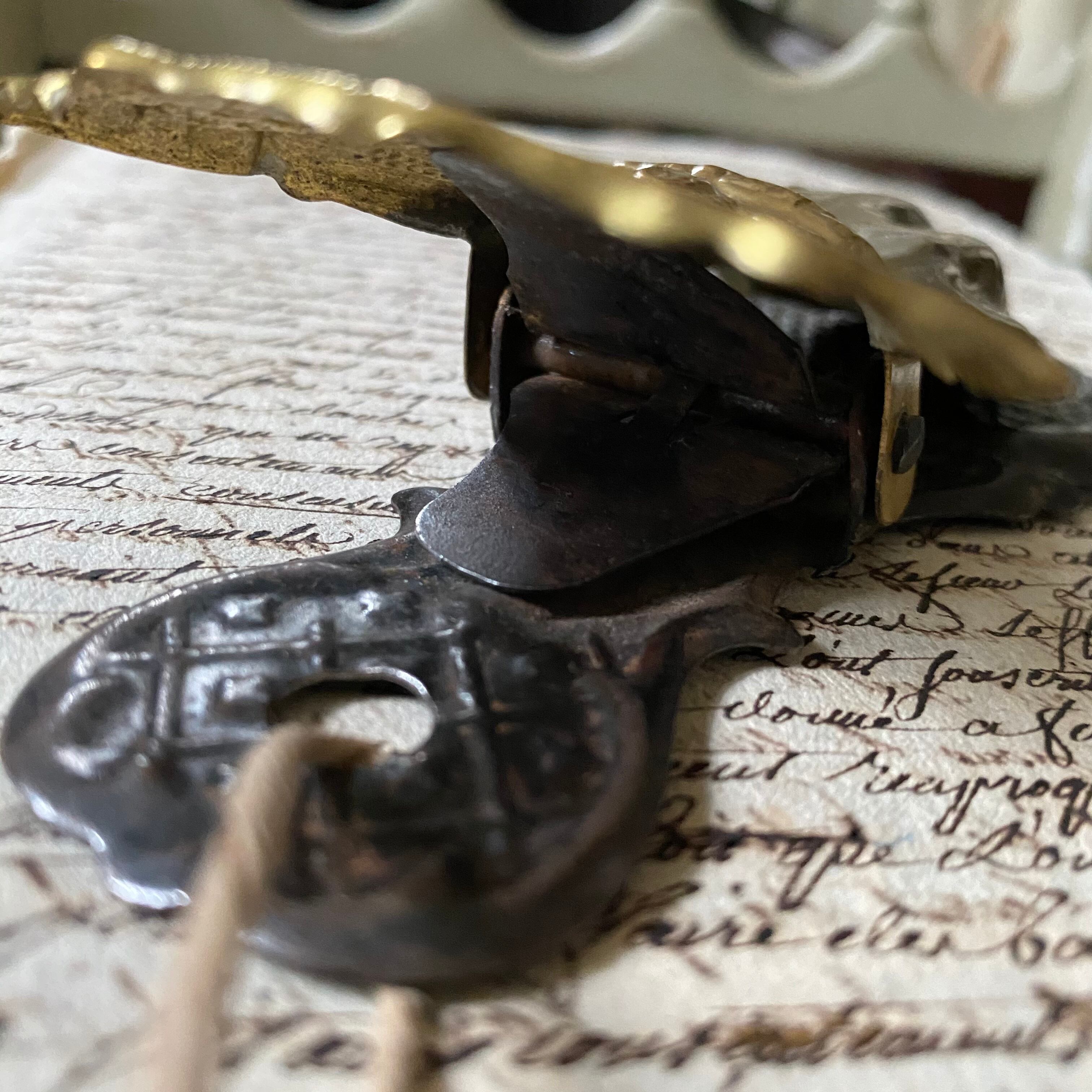 ビンテージや現行品も出回っていますが、分厚い真鍮などでどっしりと重く、裏はフラットな型抜きでアンティークとは全く趣が異なります。