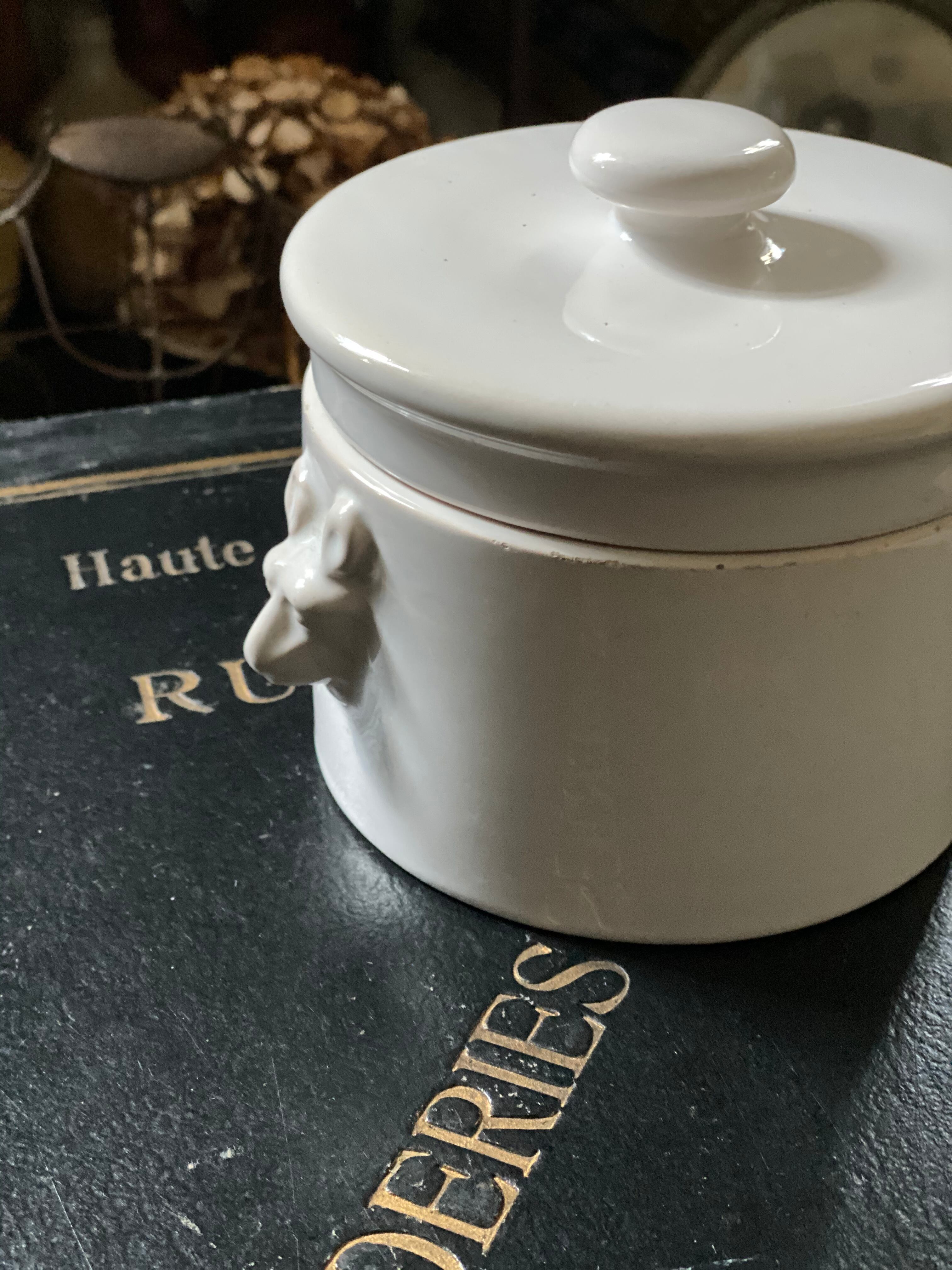 とろみ感のある白い釉薬で、土の色とあいまってほんのりピンク味を帯びたあたたかみある白に仕上がっております。その肌質から南仏のものだと思います。
