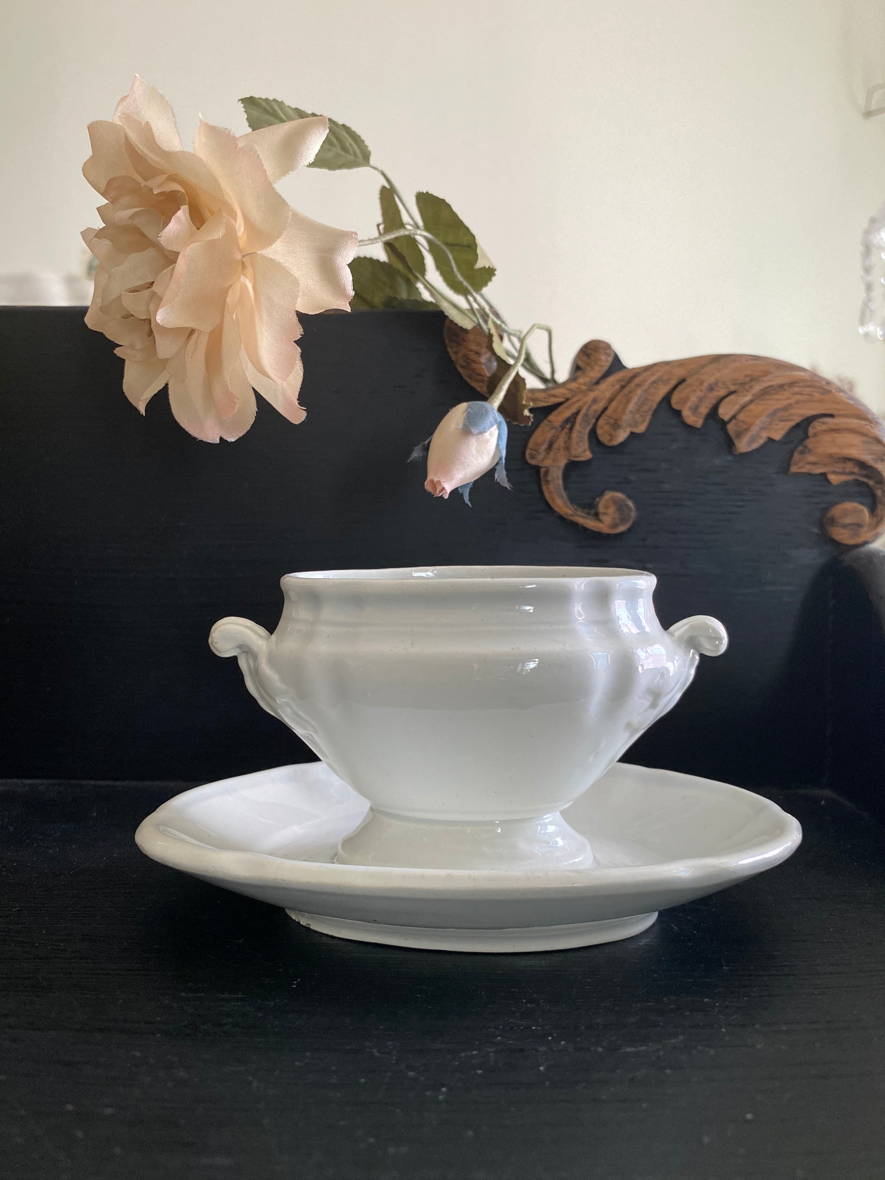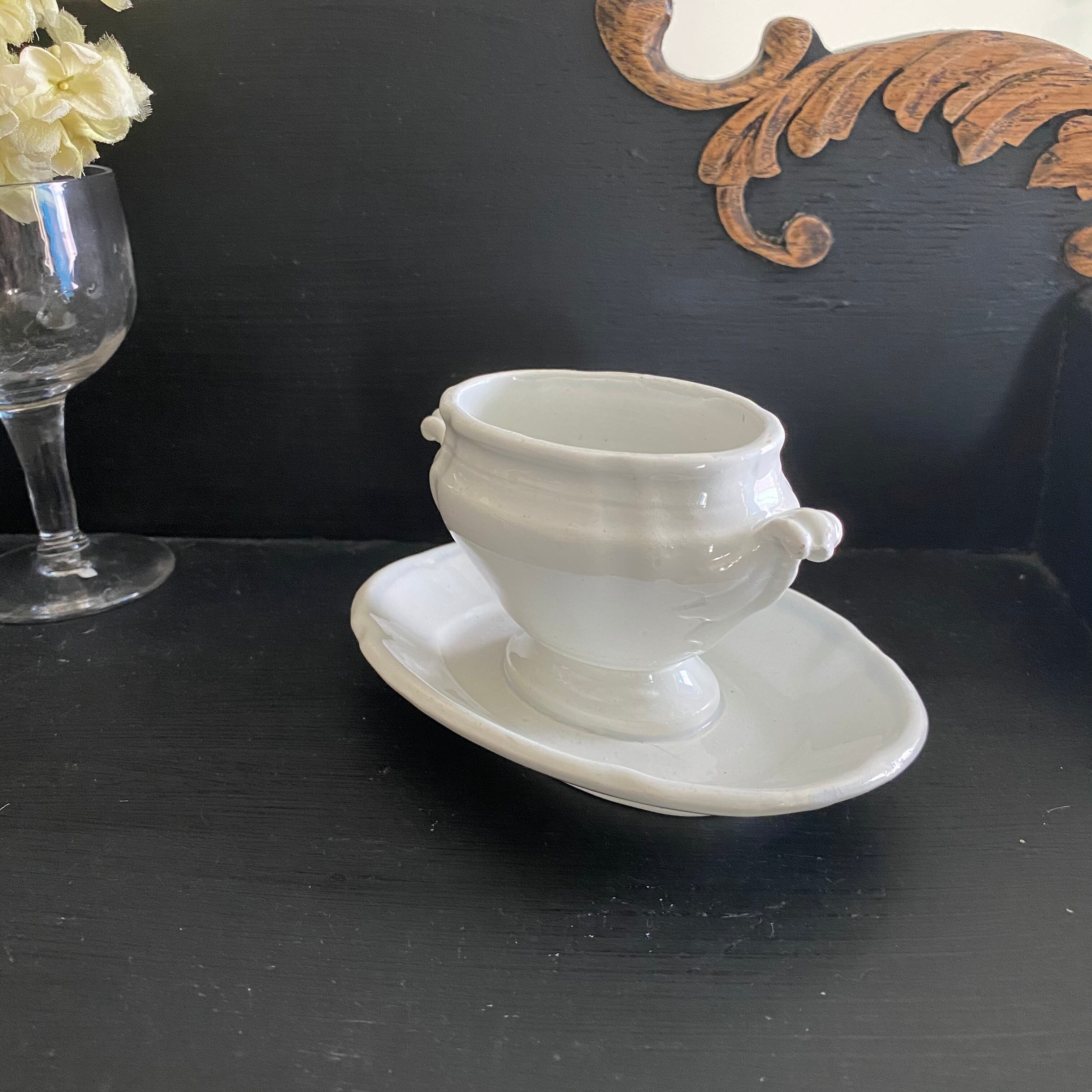 クレイユモントローらしいほんのり蒼味を感じる白釉の美しい器。シュクリエや花器としても素敵にお使い頂けますね。