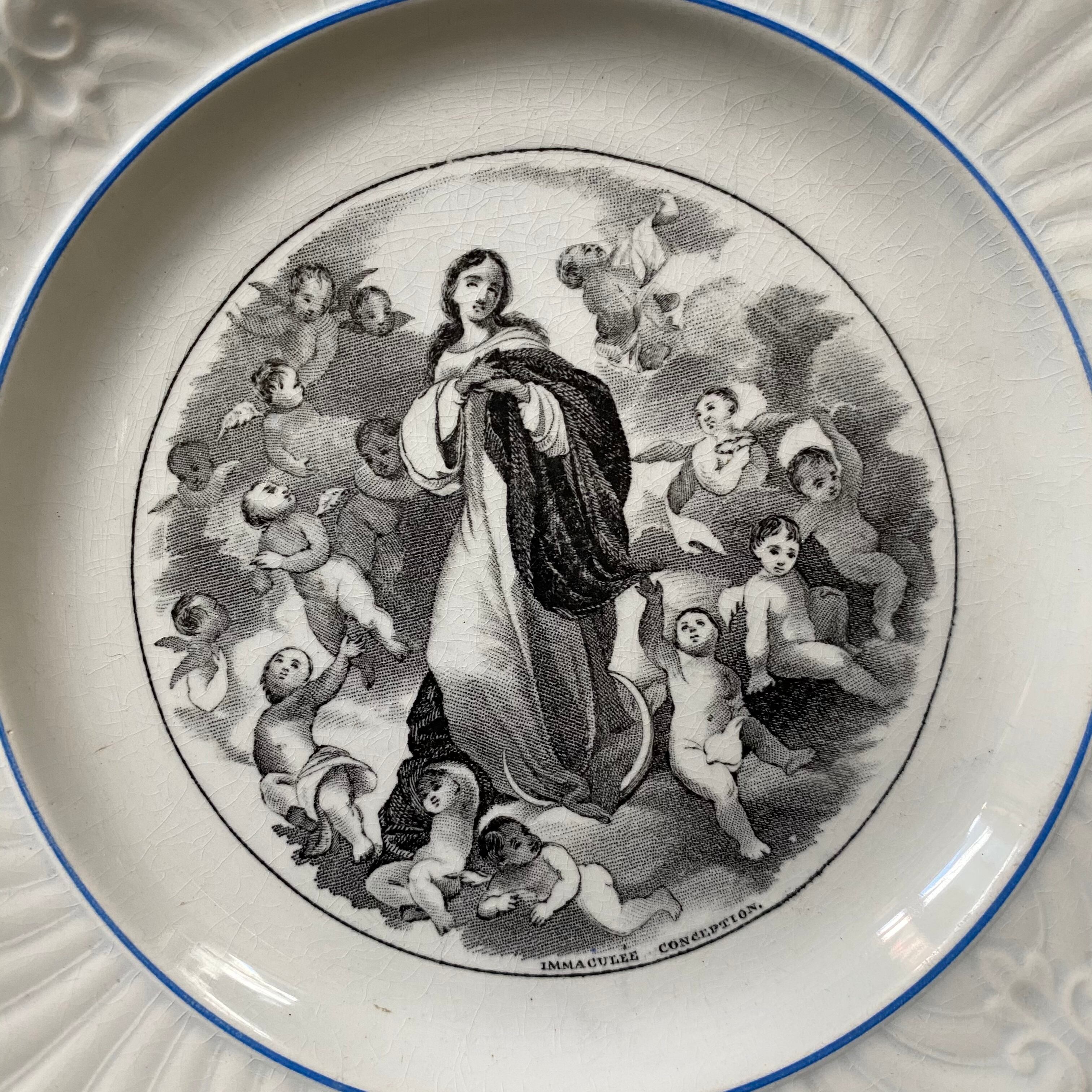 クレイユモントロー*天使グリザイユ 青ラインロカイユレリーフ。