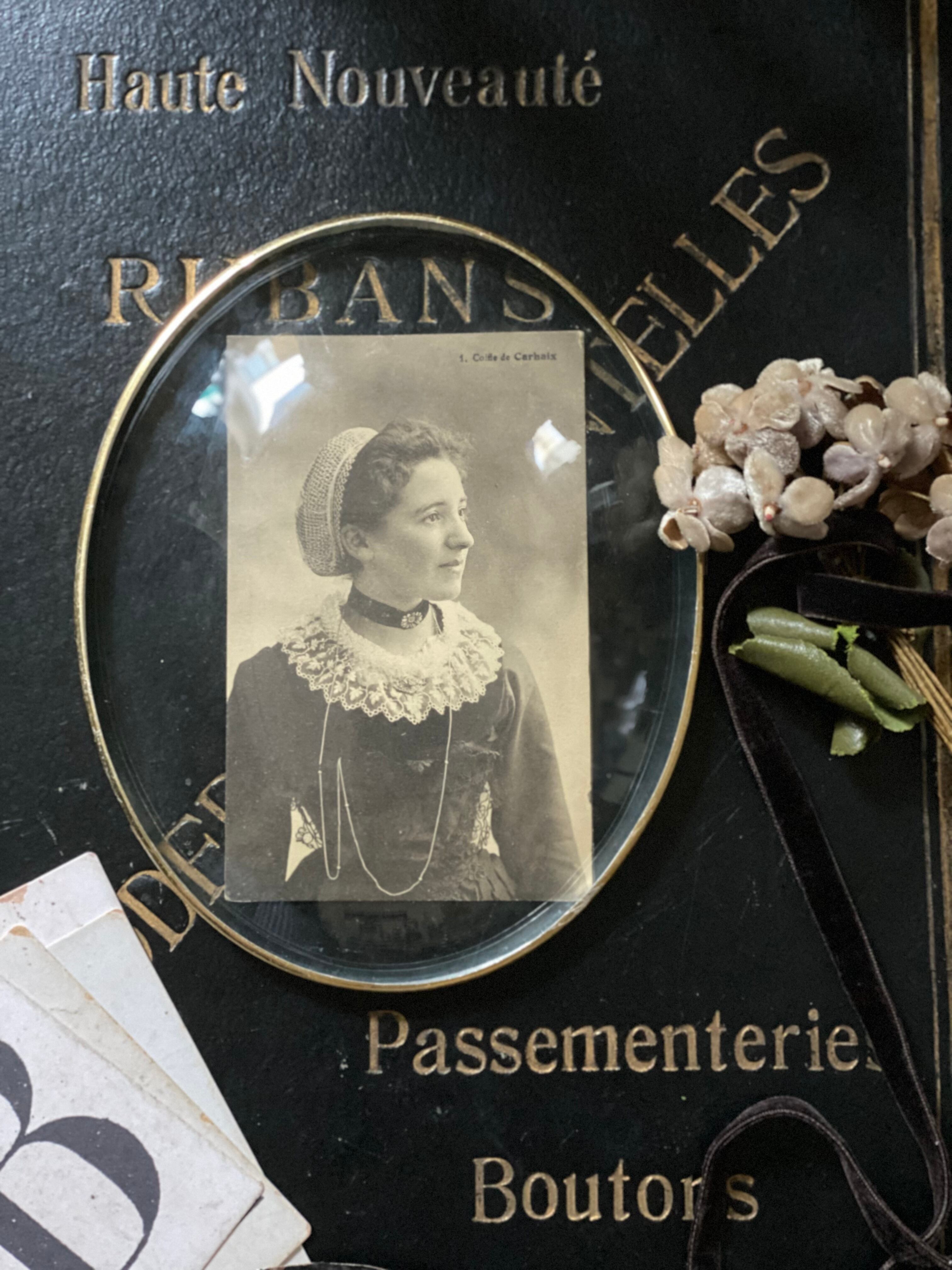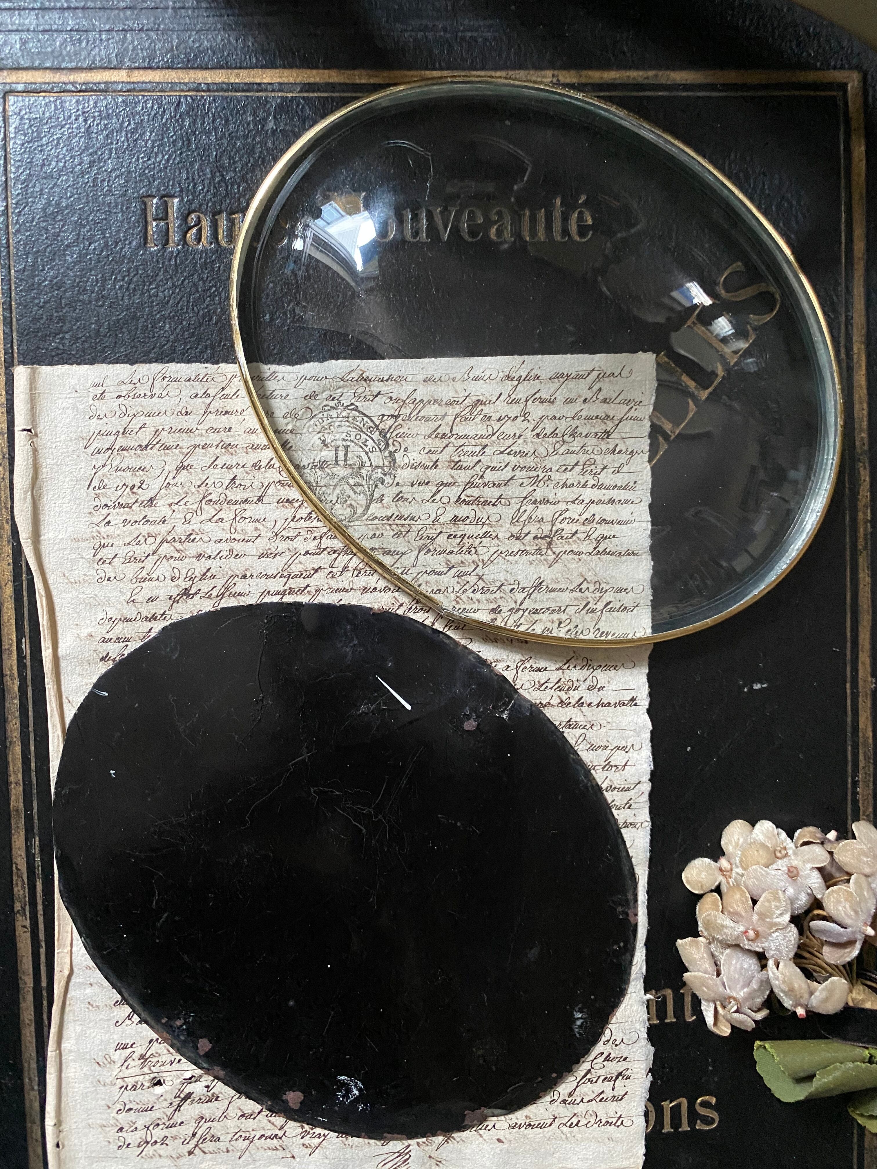 こちらはガラスの膨らみに高さがあります。細い金属枠のみのシンプルなタイプなので、お好みで枠をアレンジしても素敵ですね。参考にトップ画像では手持ちのベルベットリボンを巻いてみましたが、厚みのあるブレードやレースも良いですね。