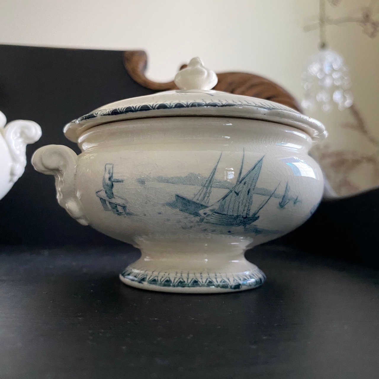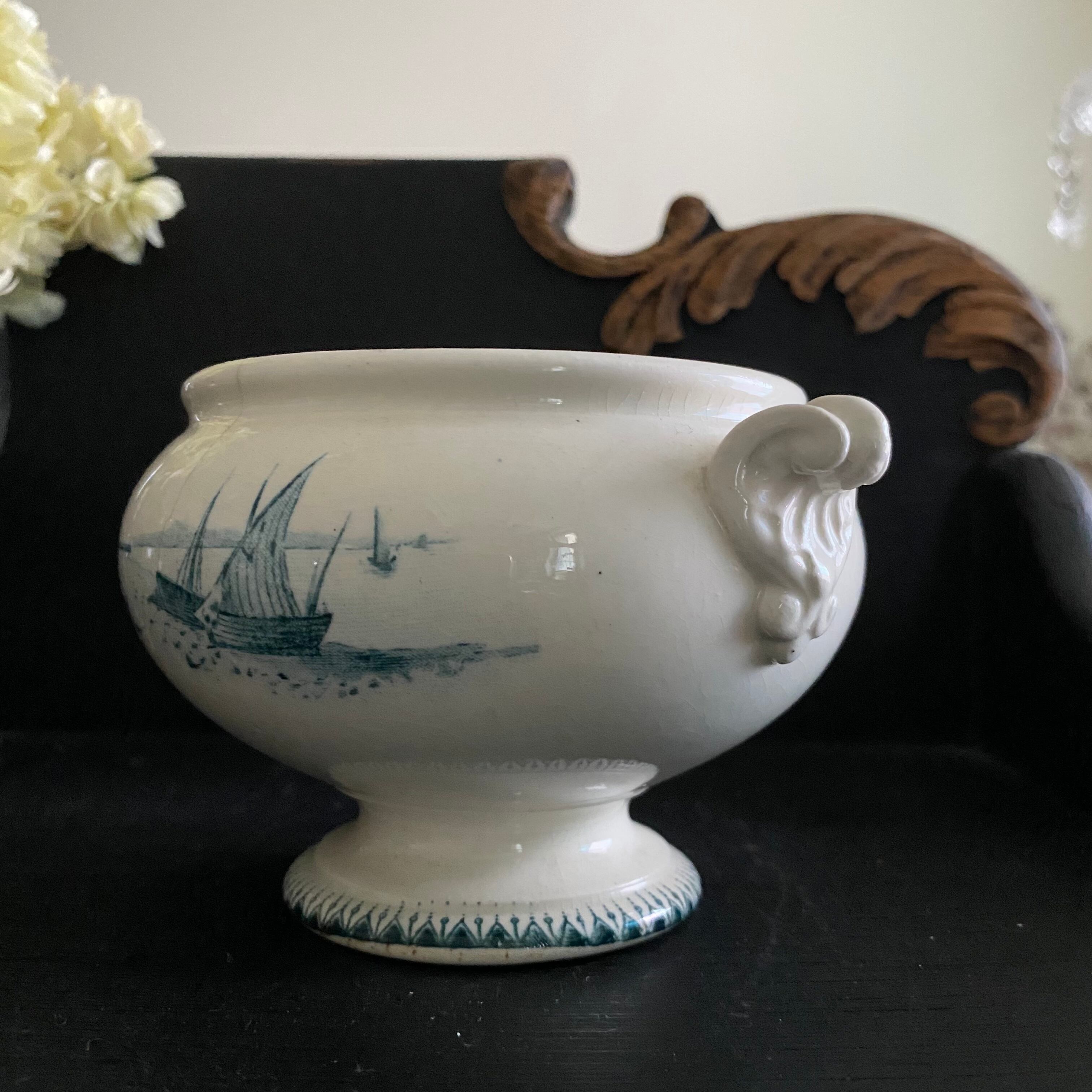 スーピエールの口周りにラインが2か所。レギュミエの取手に極小チップと、下部に染まりがございますが、裏返してみなければ通常は見えませんので問題ないかと思います。その他、画像でご覧になれるようにツヤのある大変良いコンディションです。