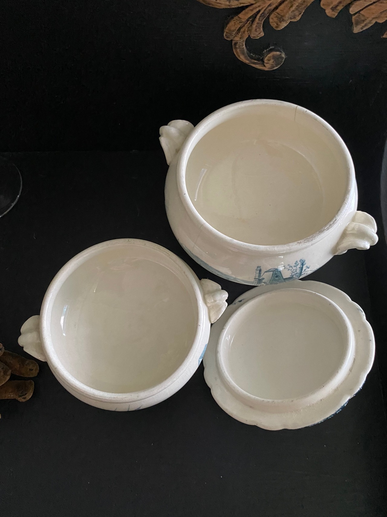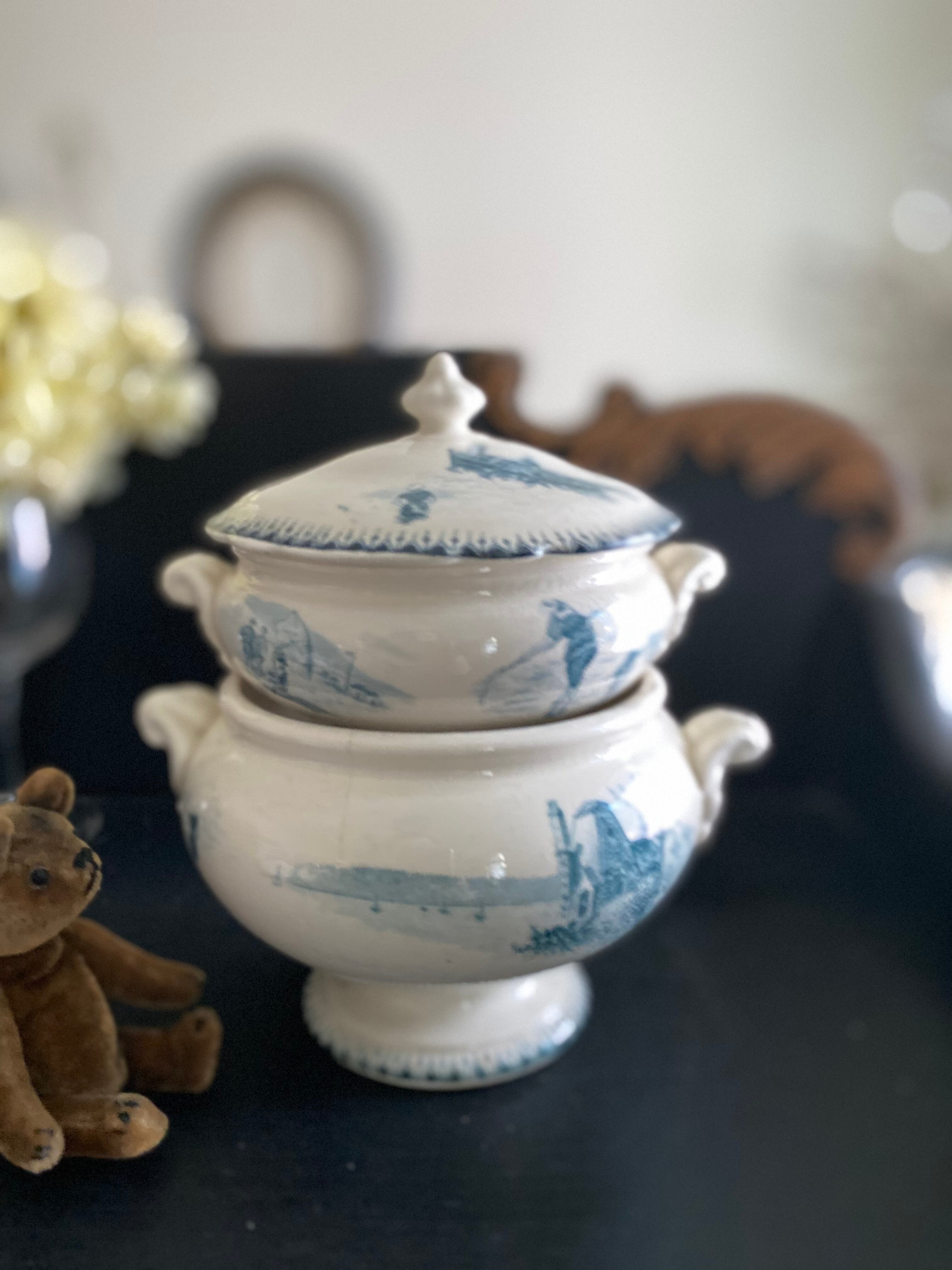 どちらも実用にはシュクリエにピッタリ。蓋はどちらにもはまります。取手や蓋のトップなどの意匠も凝っていて、レギュラーサイズのものと同じようなおつくりで素敵です。