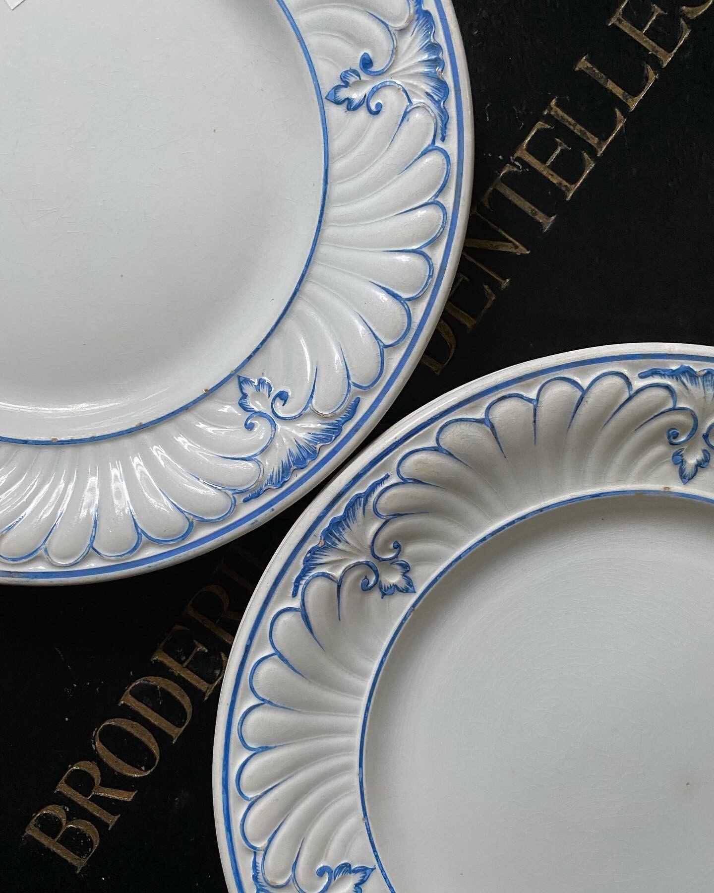 人気のロカイユレリーフプレート。こちらはレリーフに沿ってブルーのハンドペイントが施されたモデルで、リムと見込みの周りに2本だけ青いラインが入ったものと比べてもなかなか出会いのないタイプだと思います。コレクションにもおススメです。