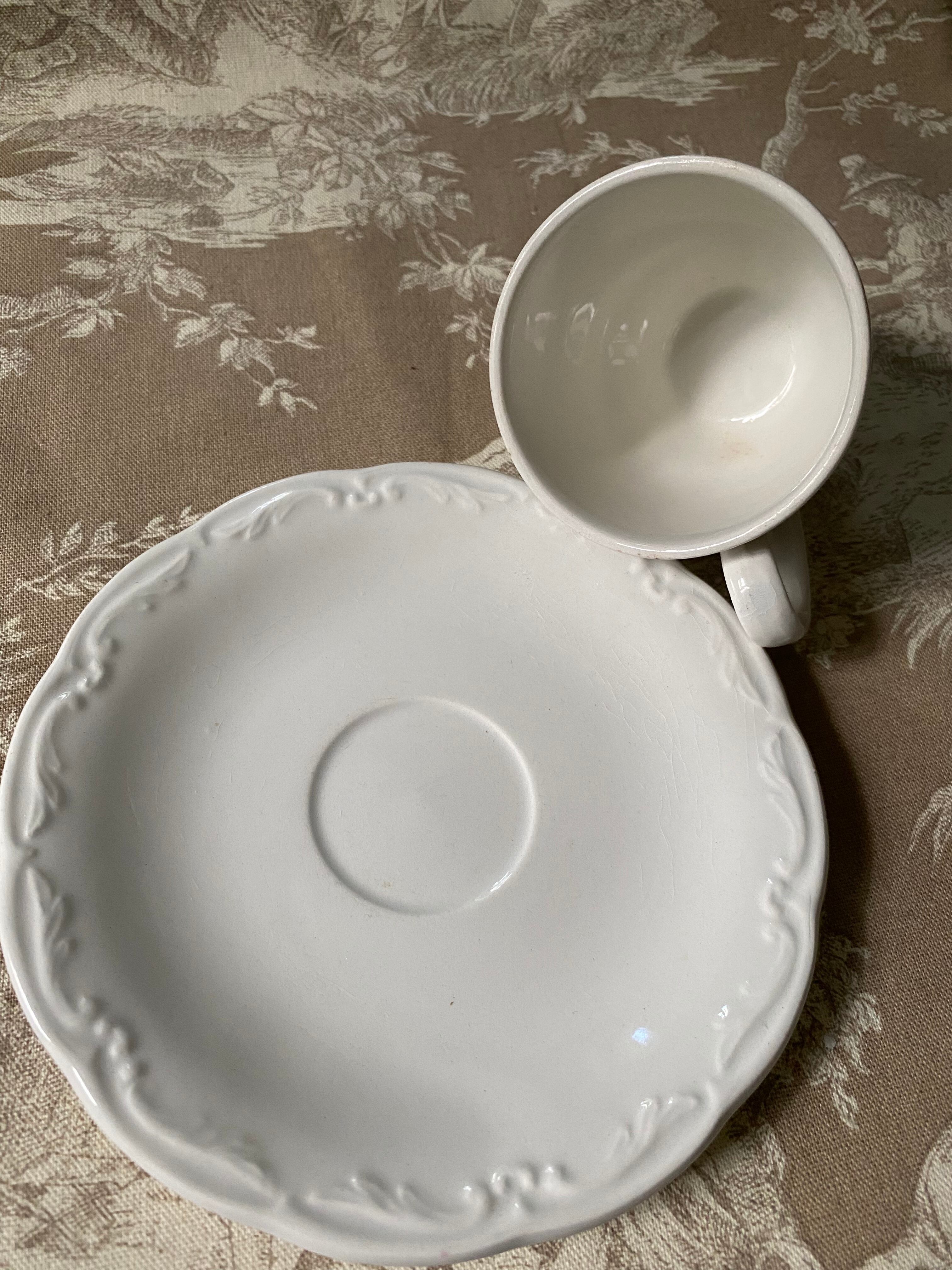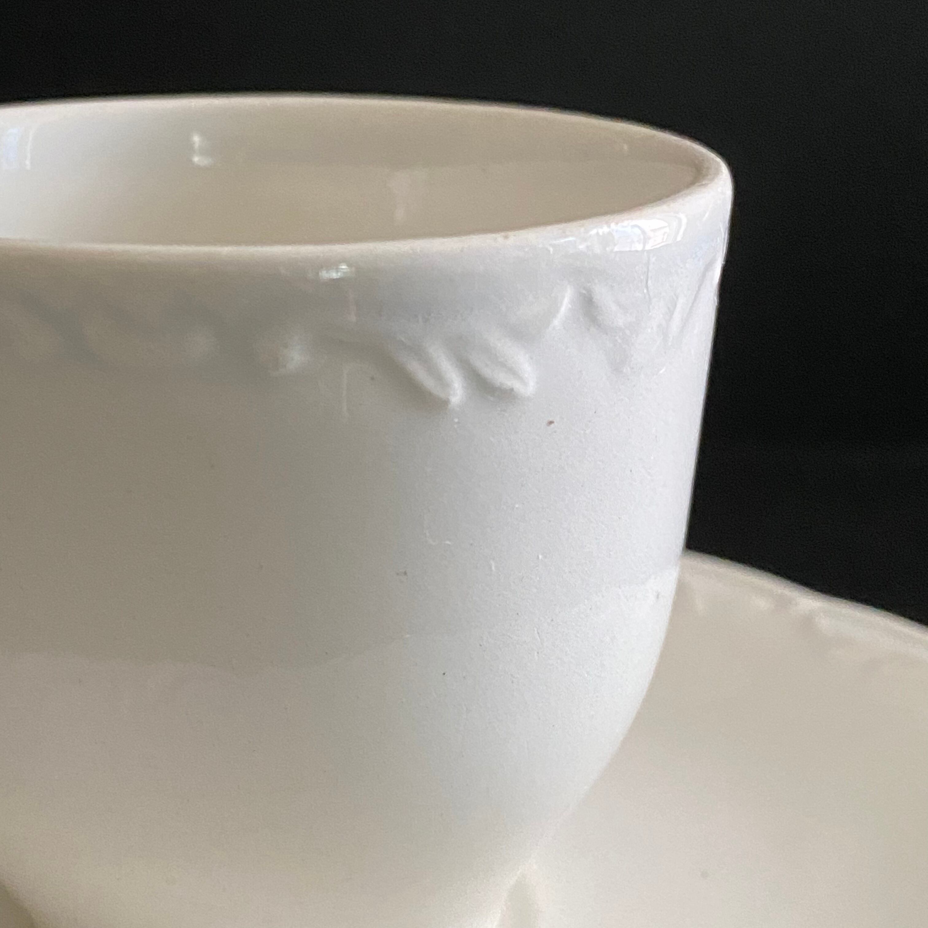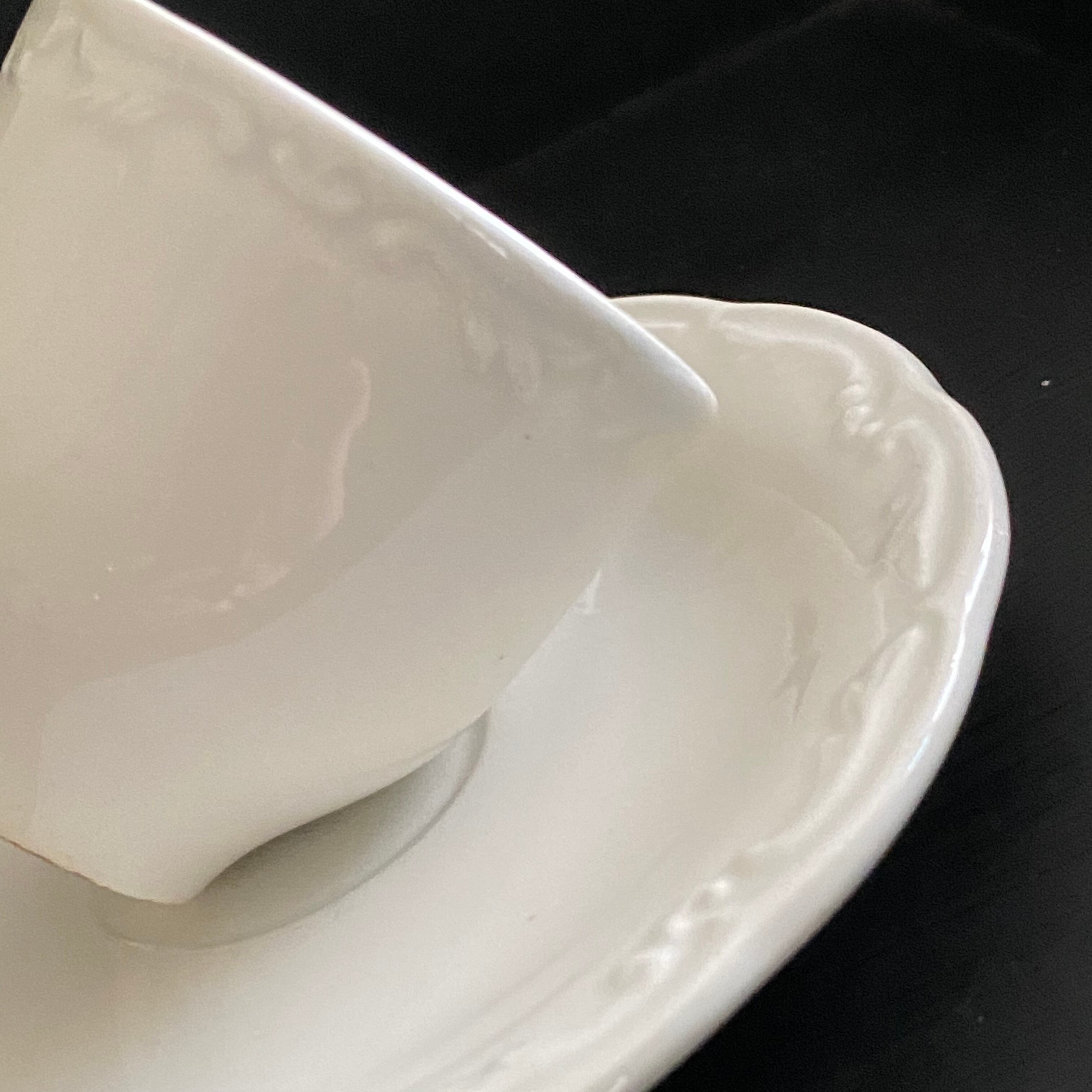 レリーフが素敵な小さめのカップ&ソーサー。デミタスサイズはフランスではポピュラーなコーヒーカップのサイズです。