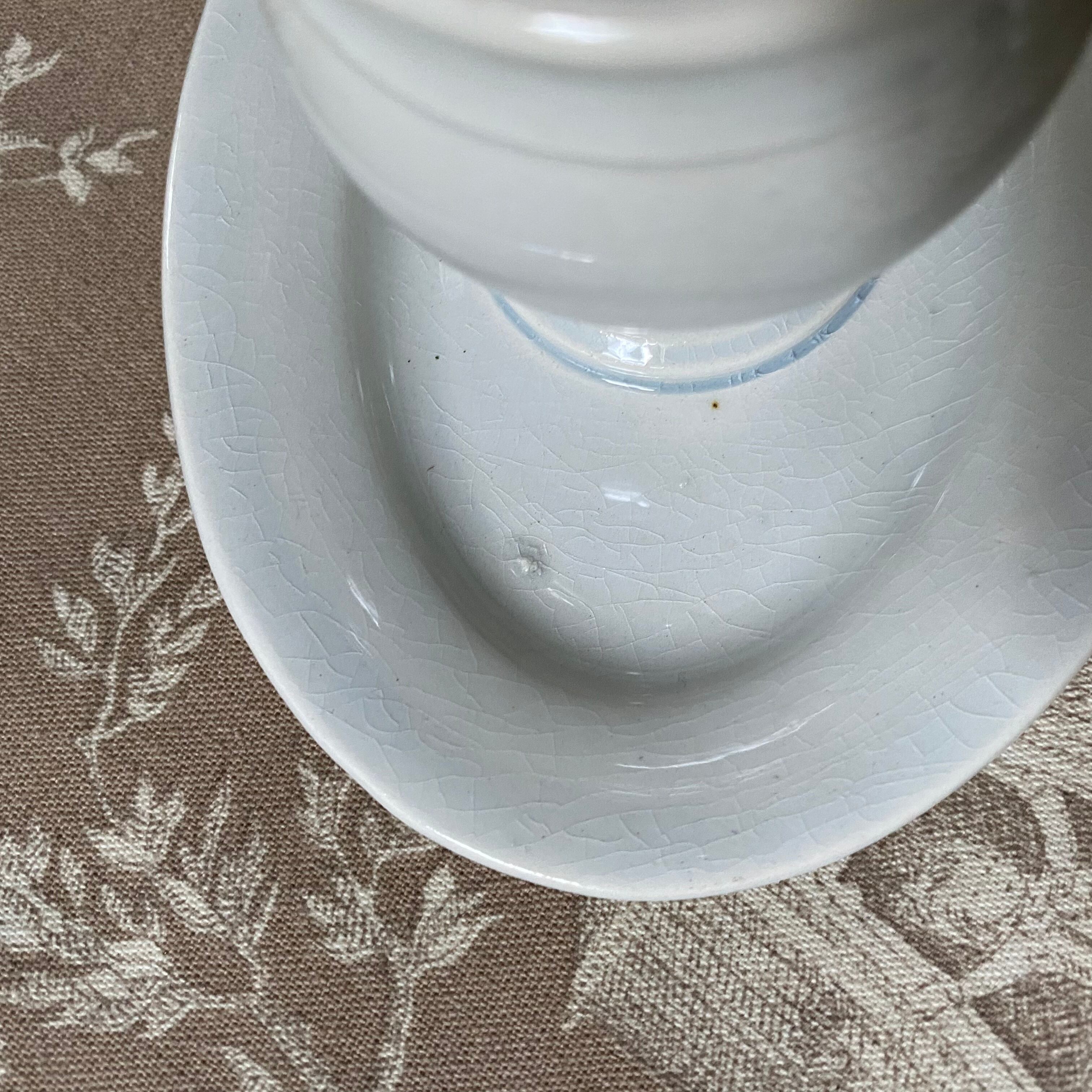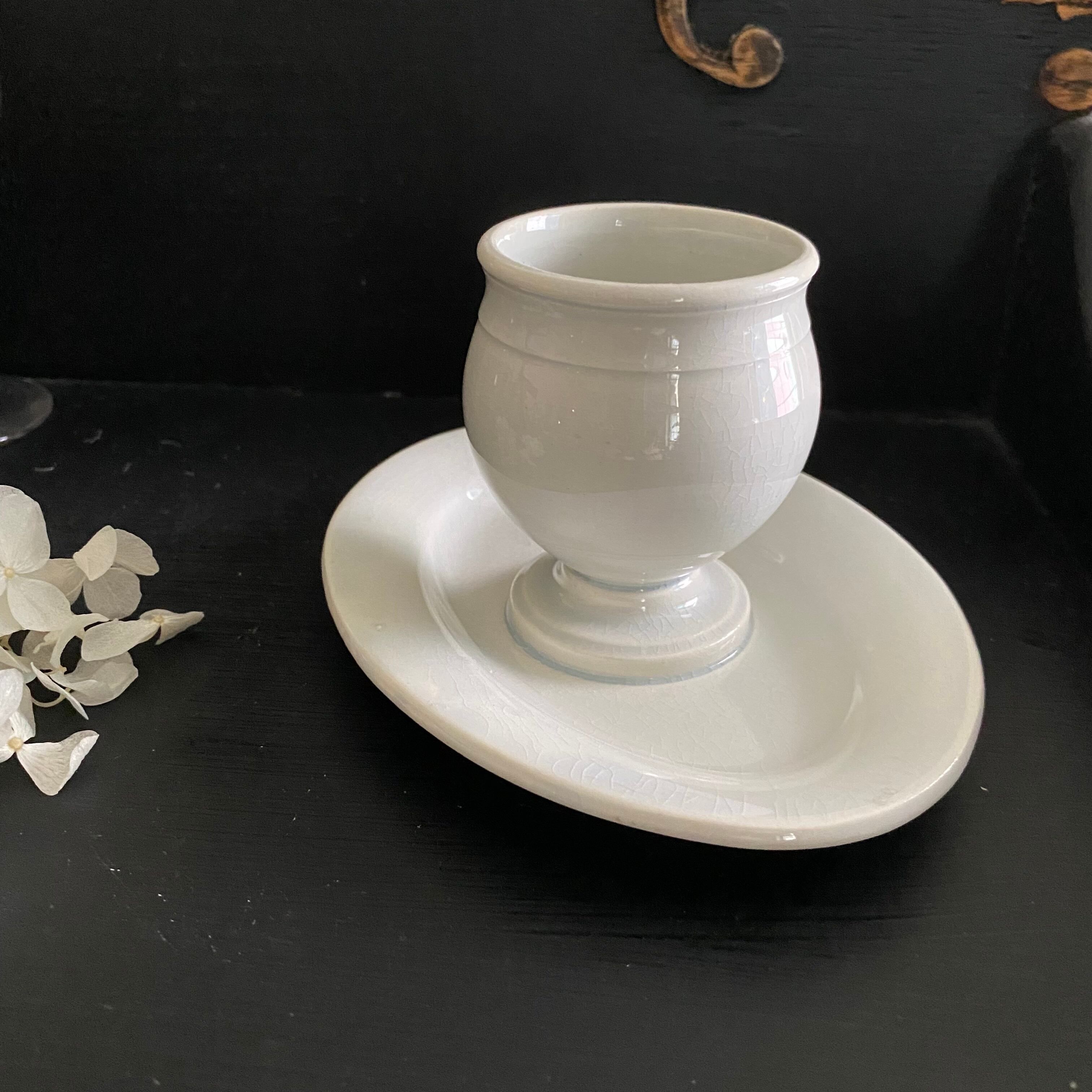 ソーサーがオーバルで本体も美しいくびれのフォルムのショワジー・ル・ロワのムタディエール、又はコクチエ、エッグカップかもしれません。