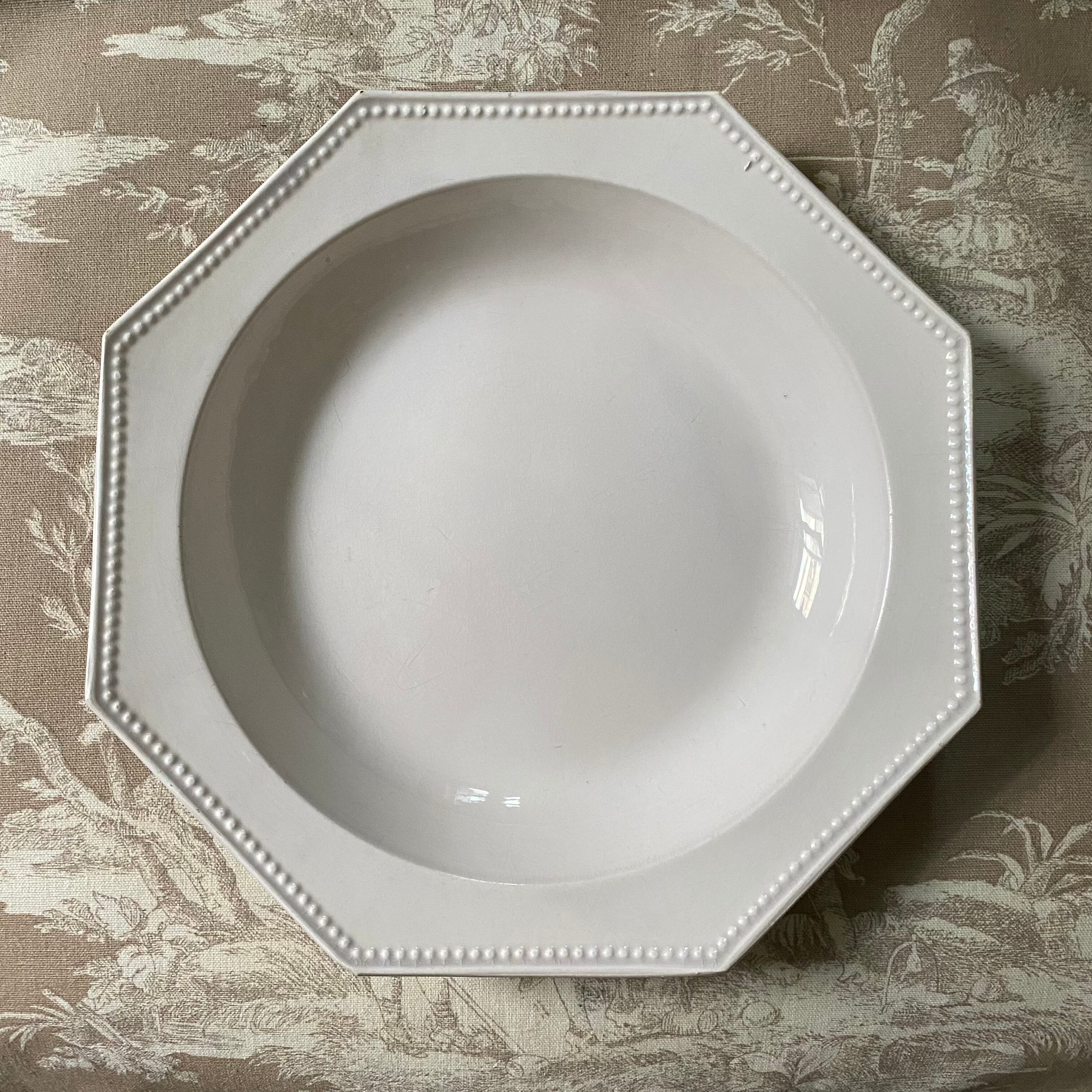 人気のオクトゴナルですが、こちらはクレイユと合併する前の19世紀前半のモントロー窯のスープ用などのプレートです(この時期の半円刻印があるお品とないものがありますが同じ時期のものです)残=刻印無し トップ画像は1番上のお品