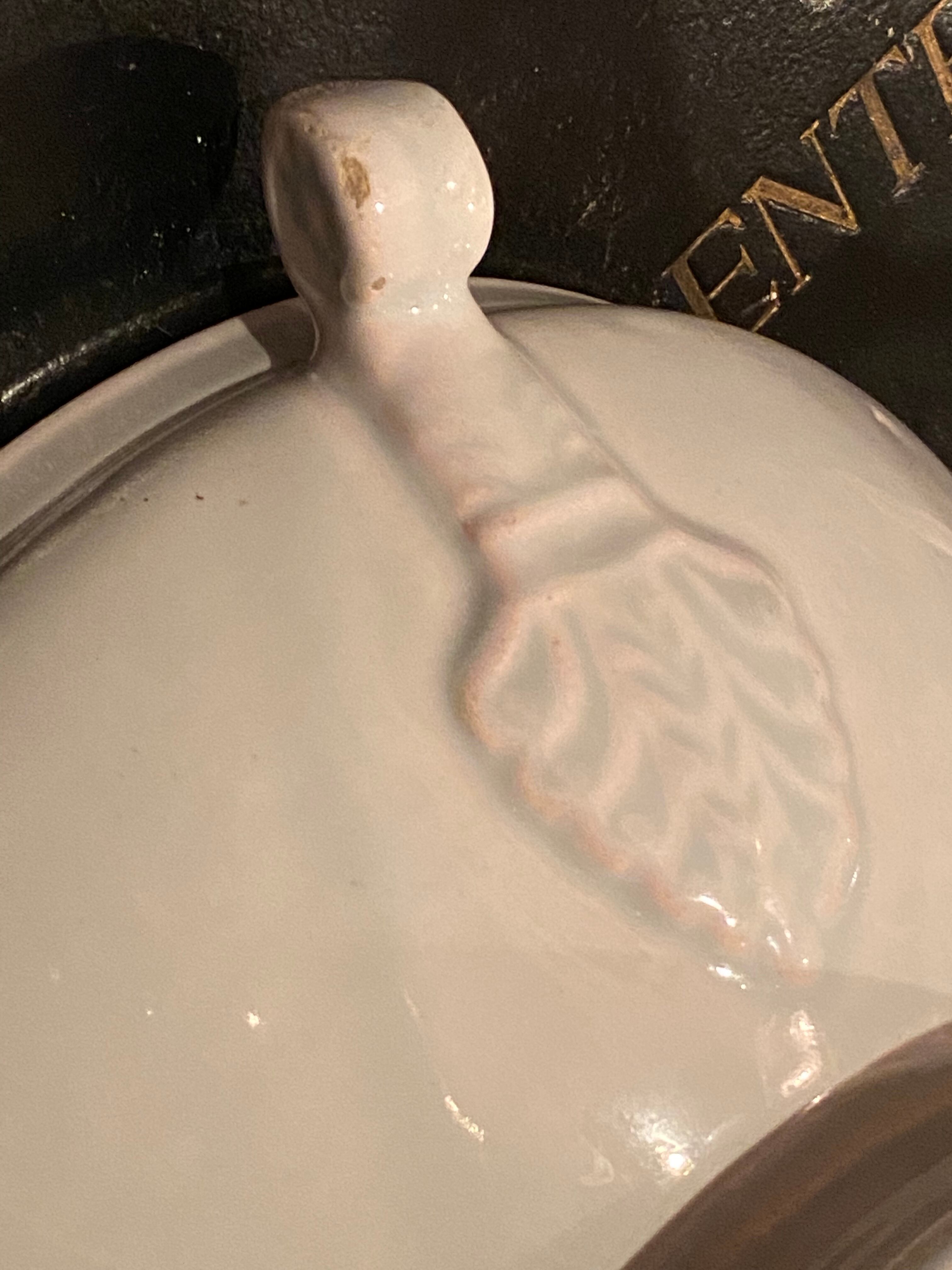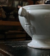 ムスティエ、又は近郊で作陶されたと思われる、まったりとした白釉の2人用くらいの小さめのスーピエール。(ディーラーさんにはムスティエといわれました)同じ形でムスティエのバックスタンプのある19世紀のものといわれるものを見つけましたので、同じころのものだと思われます。