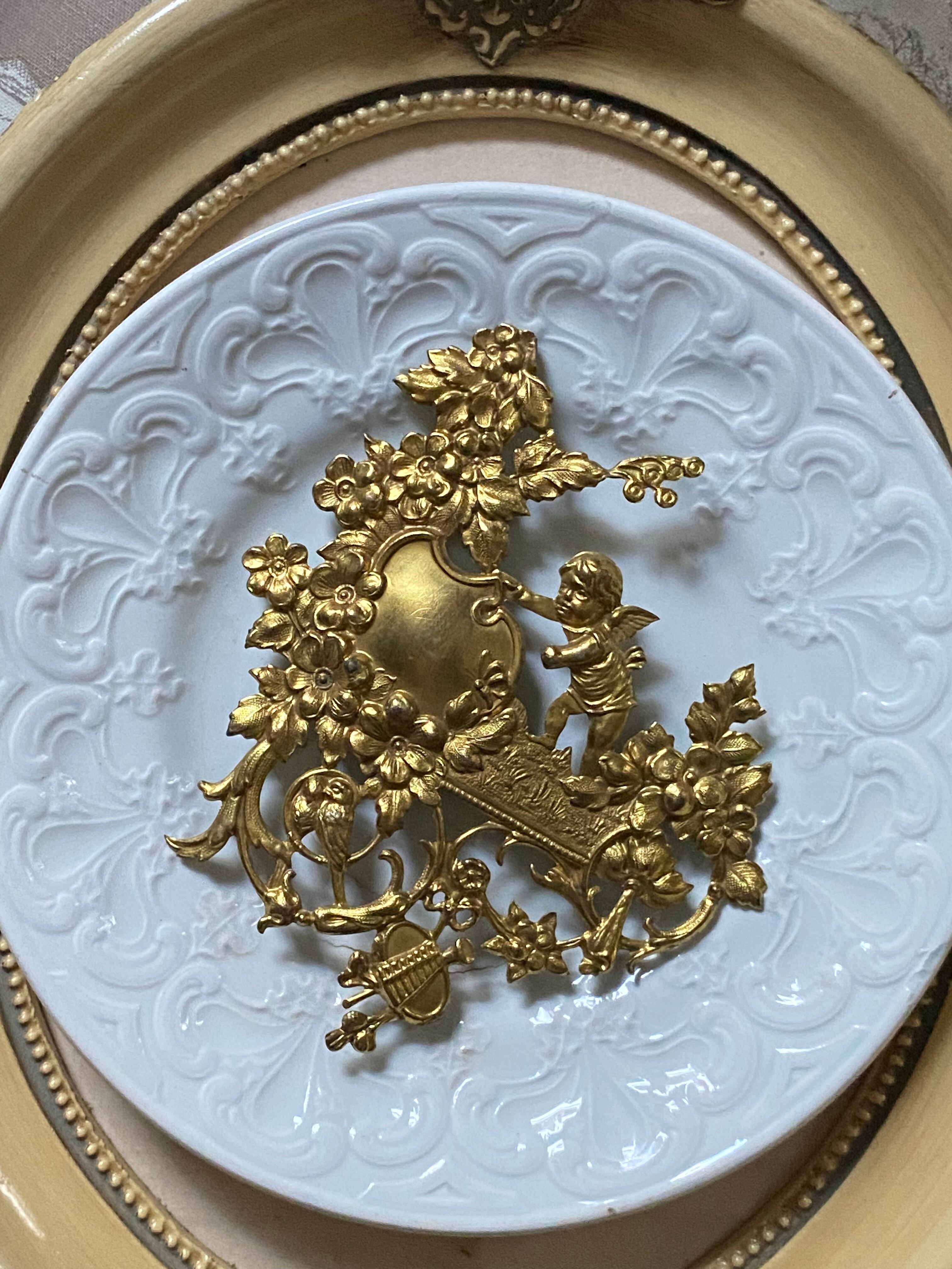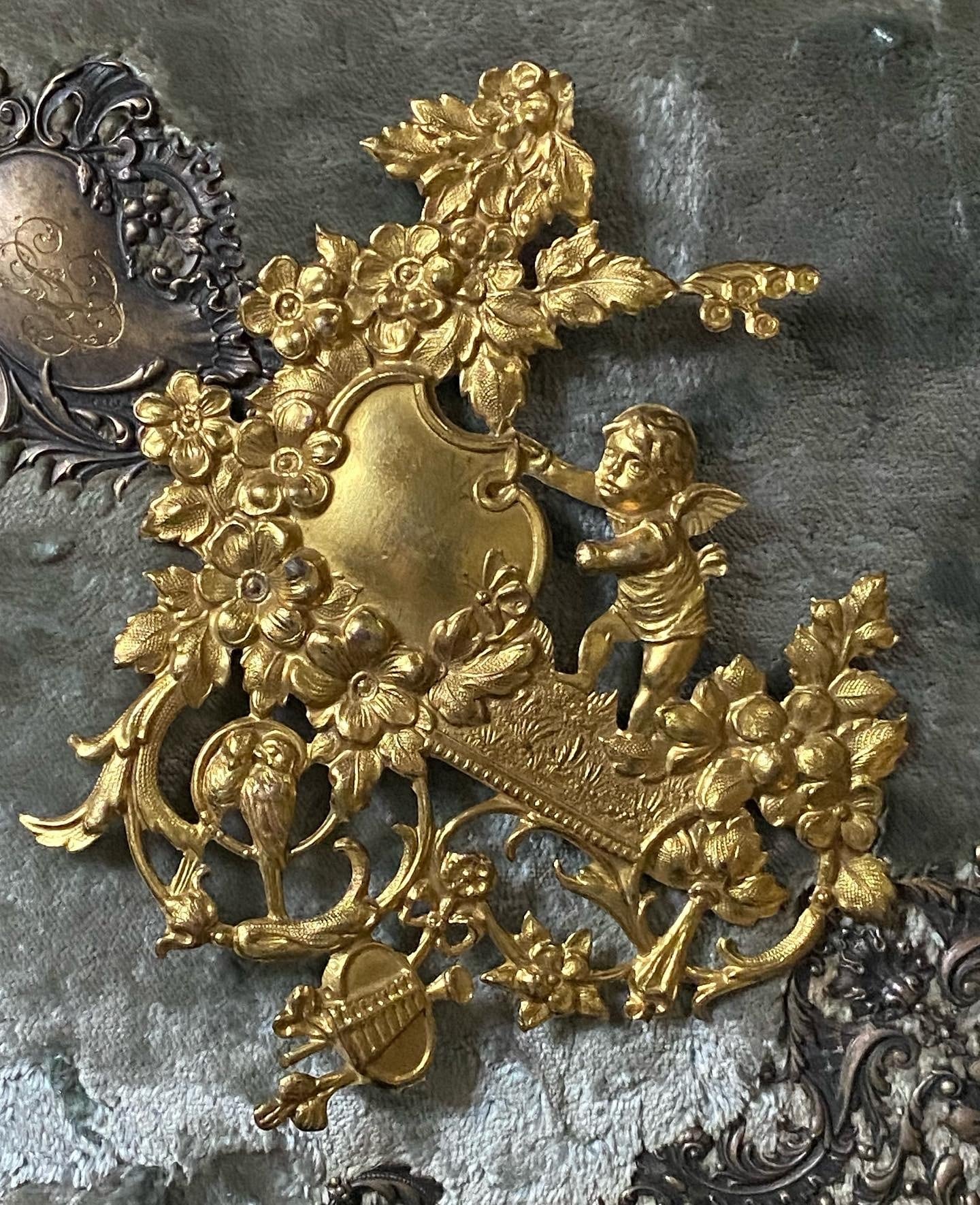 天使や小鳥たちのカワイイレリーフの装飾パーツ。フラットではなくふくらみがあり立体的です。