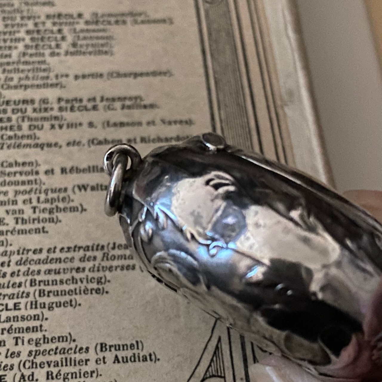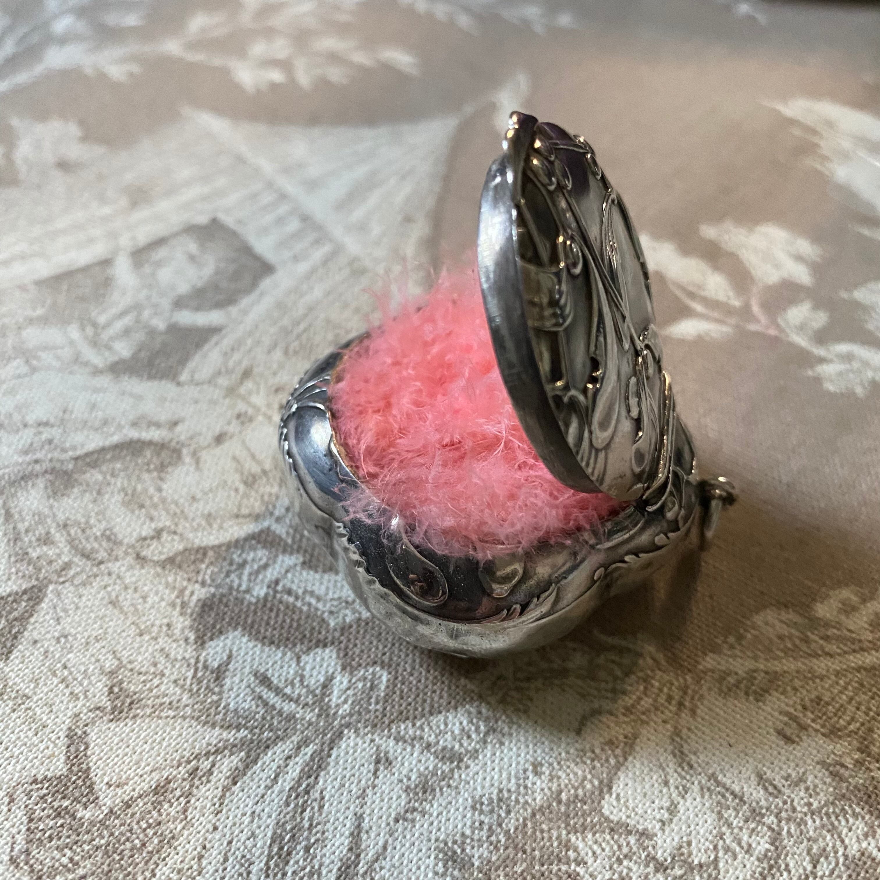 シャトレーン用の丸カンと蓋のサイドにシルバー刻印がありますので画像でご確認下さい。