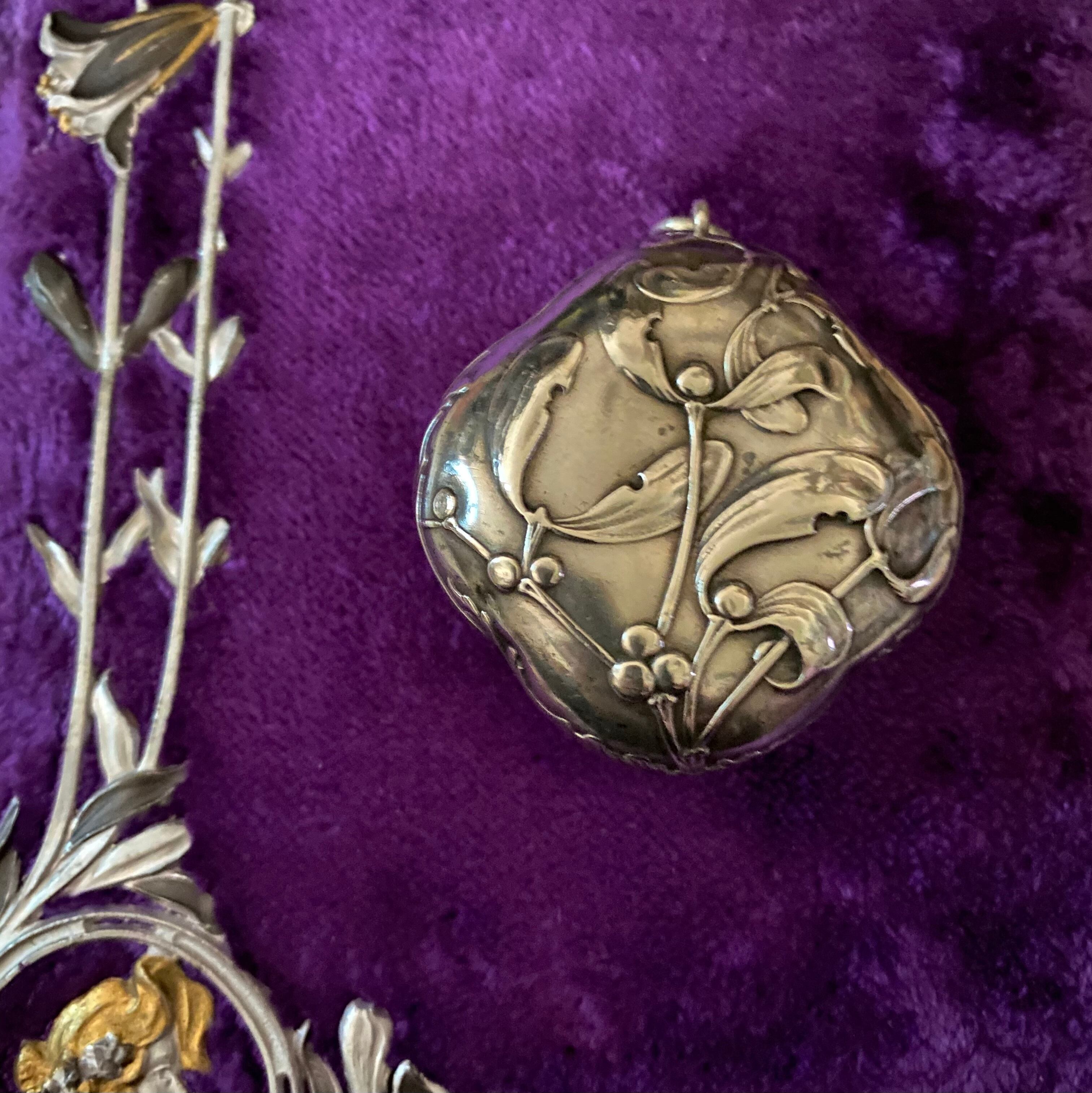 ダイヤ型で、ヤドリギレリーフが裏表共に素晴らしいコンパクト♬