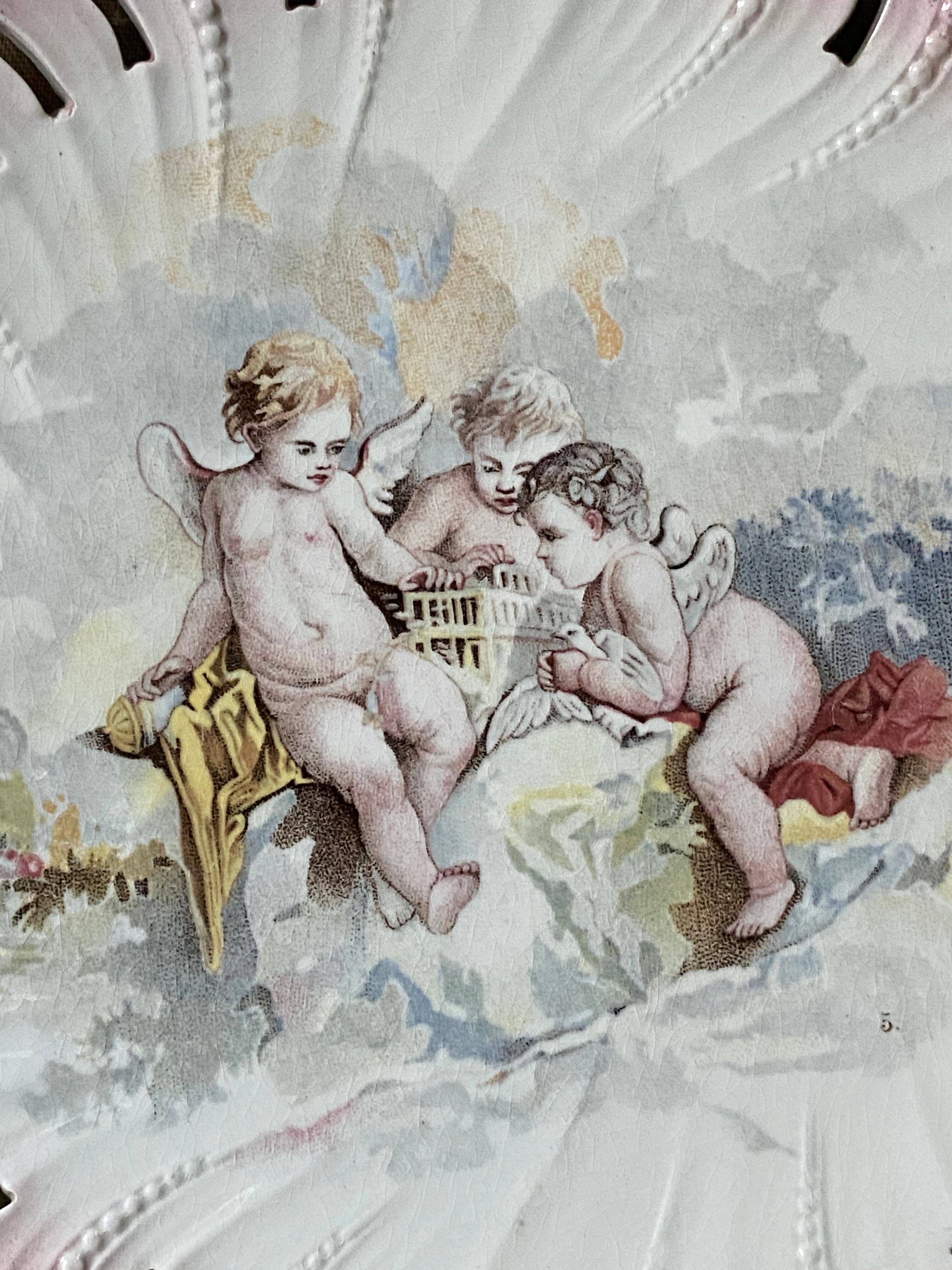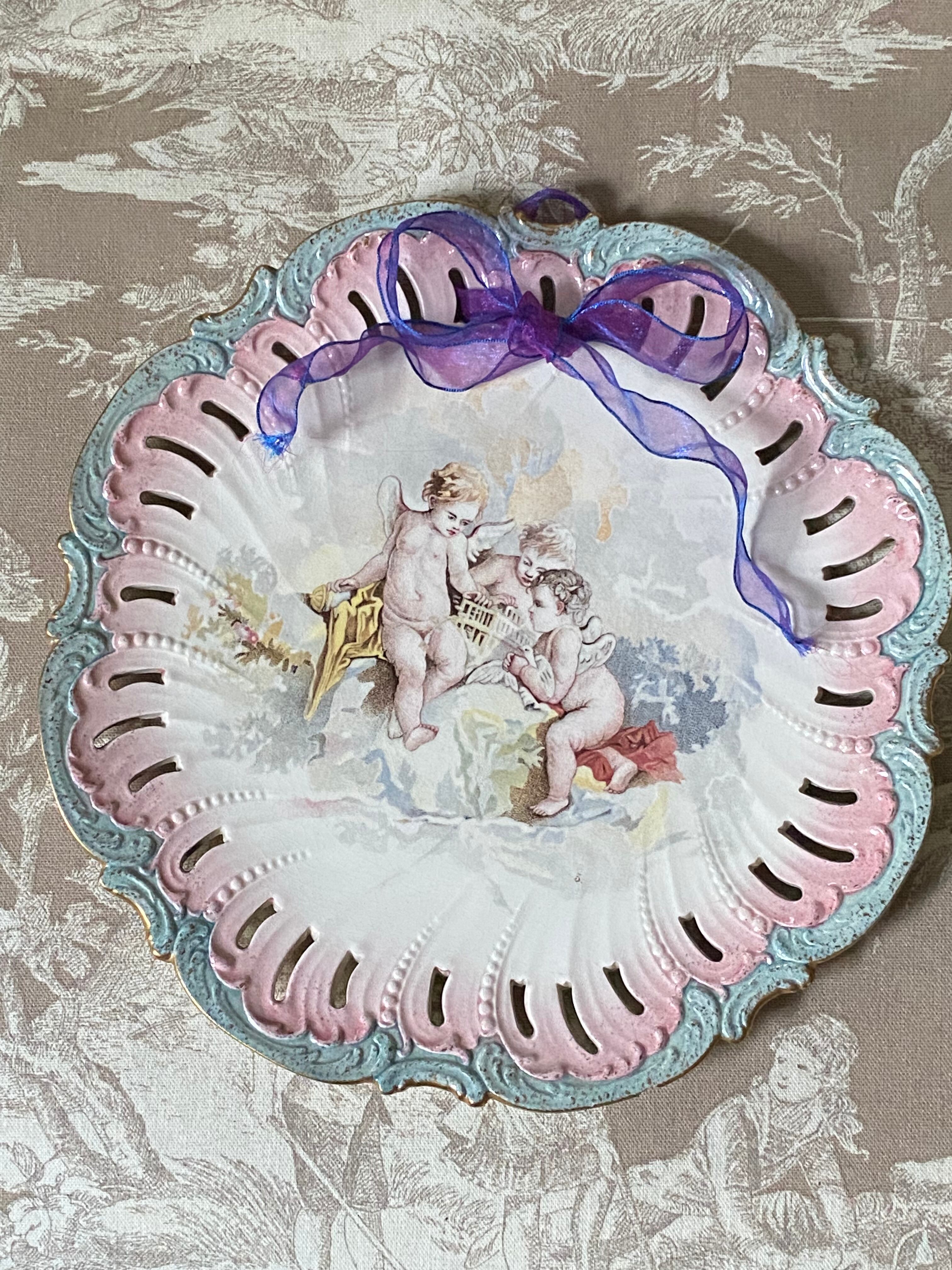 平和の象徴である鳩を抱いた3天使♡パステルカラーがまるで砂糖菓子のようにスイートでロココ調な美しいプレートです。