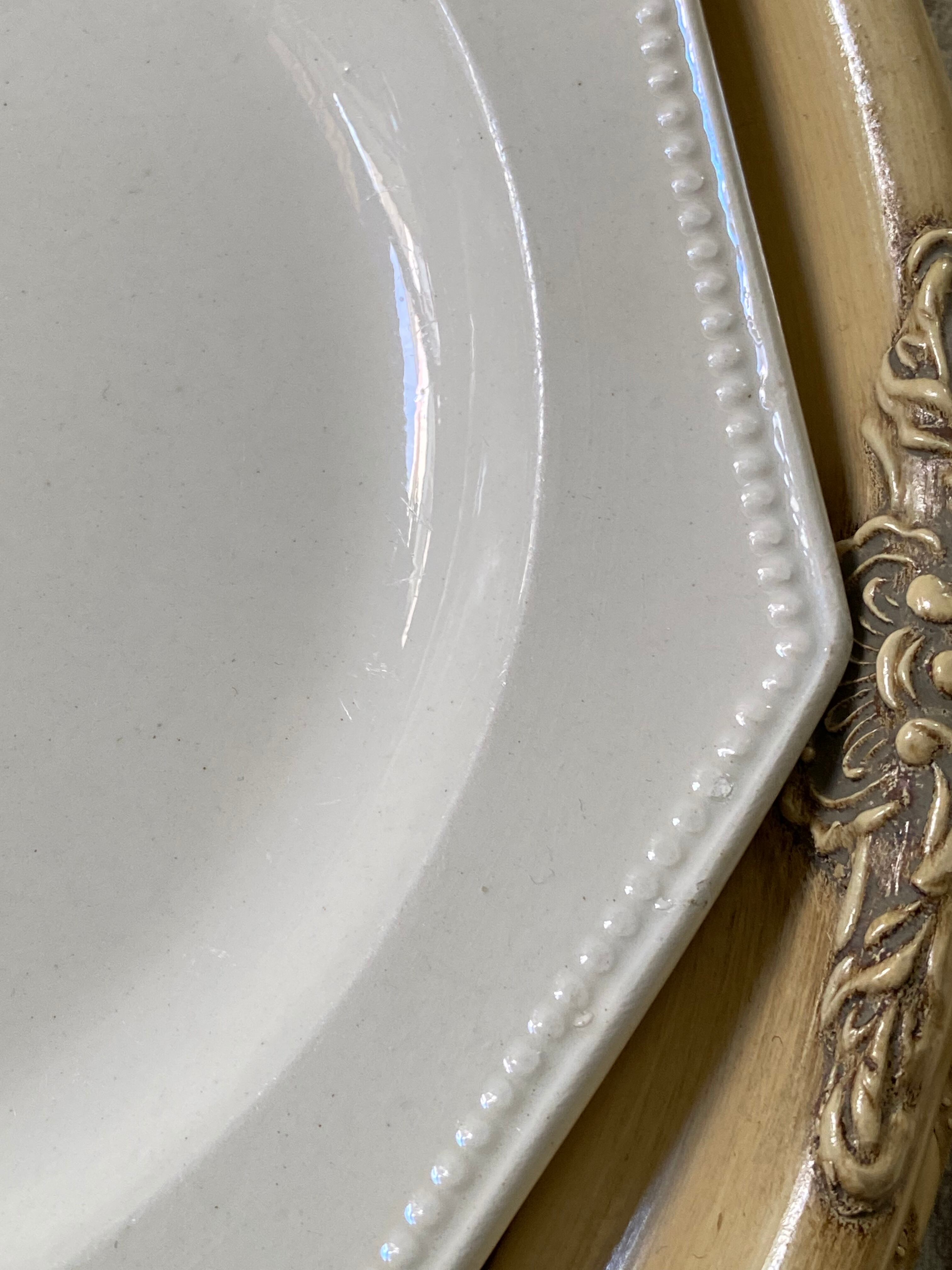 どちらも小さなチップやカトラリー跡などもありますが、この時代ものとしては大変良いコンディションです。白はお写真がわかりにくいかと思いますが画像でご確認下さいませ。真っ白ではなくやわらかなアイボリーカラーです。