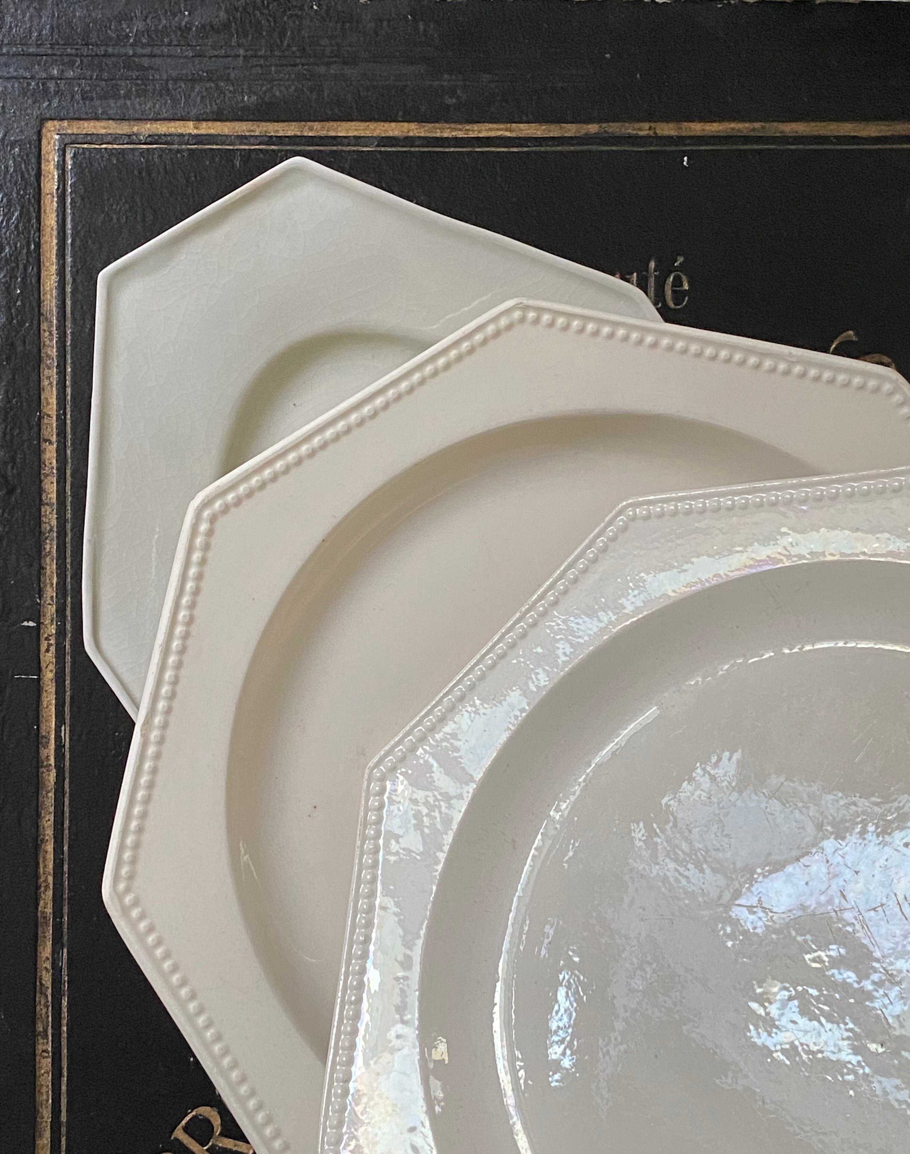 人気のオクトゴナルですが、クレイユと合併する前の19世紀前半のモントロー窯の少し深さのあるディナープレート。今回ご紹介するのは各刻印のもの1枚ずつです。