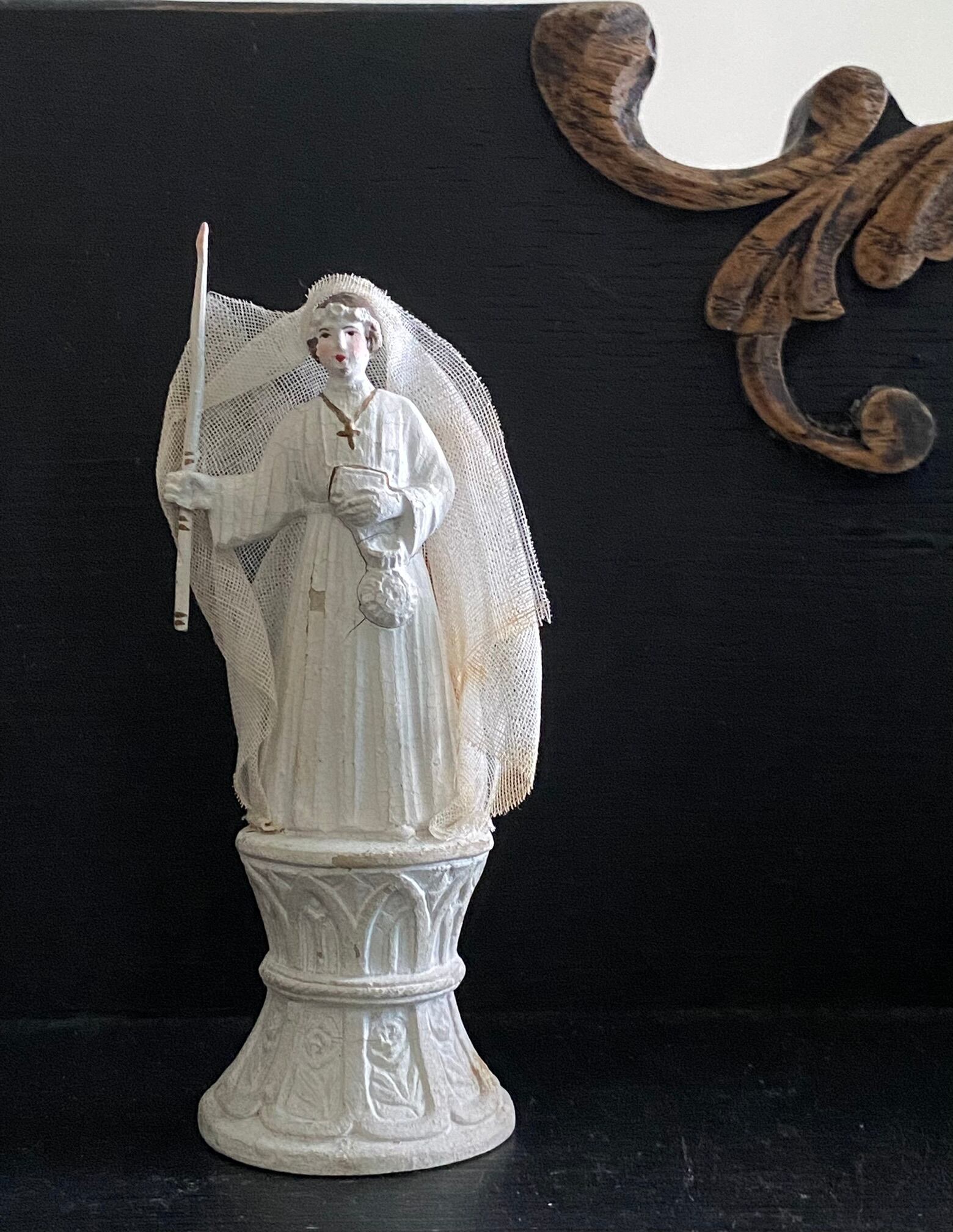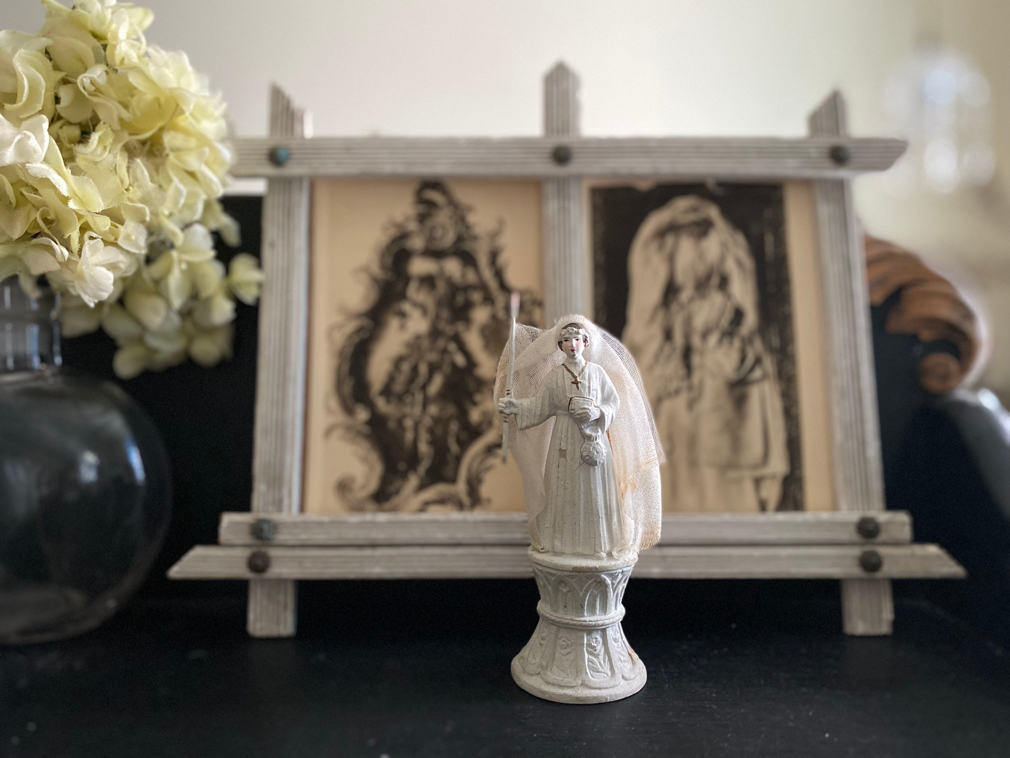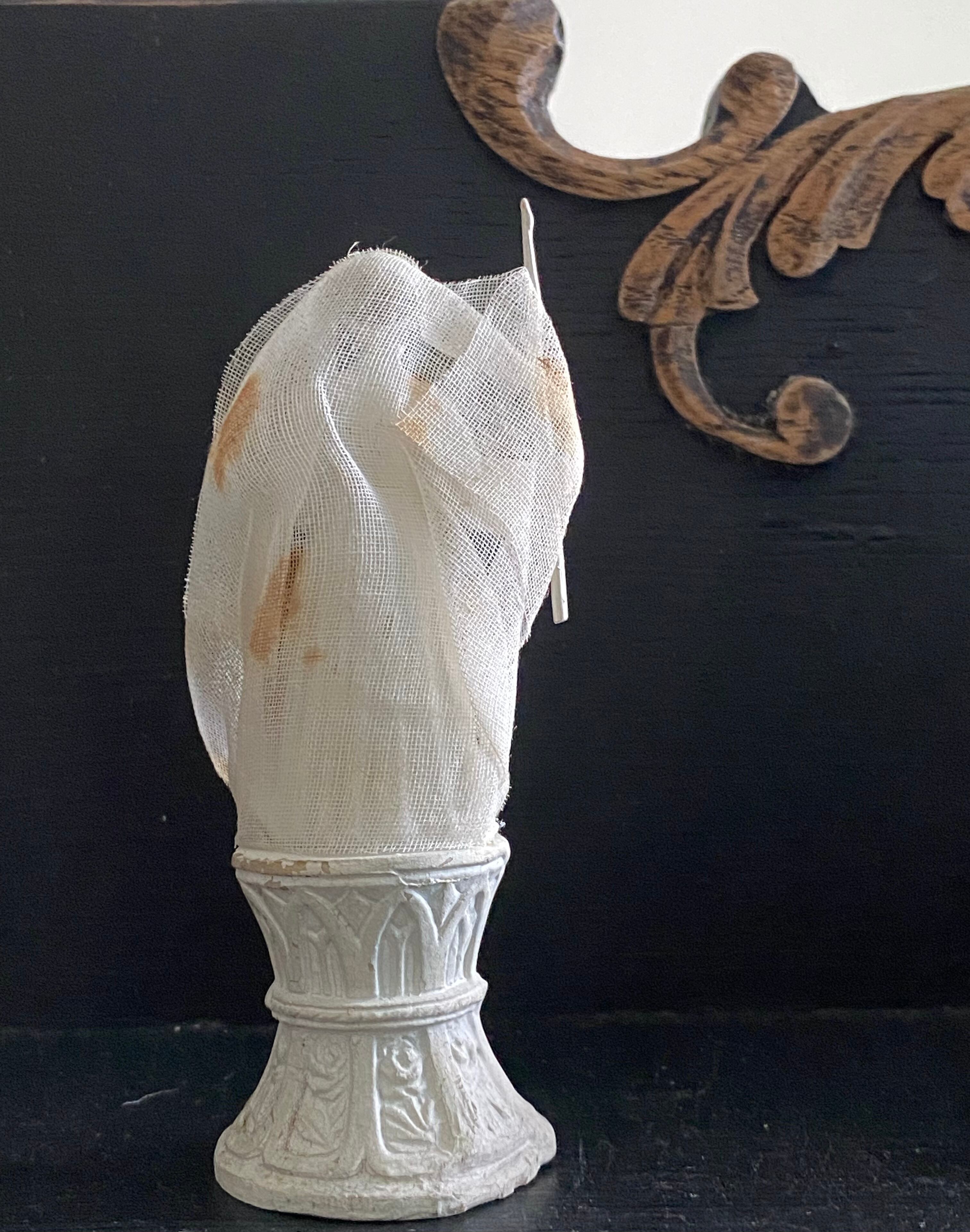 光に透けるガーゼのような麻?布のベールも良い雰囲気です。ほんのりシミが見られます。