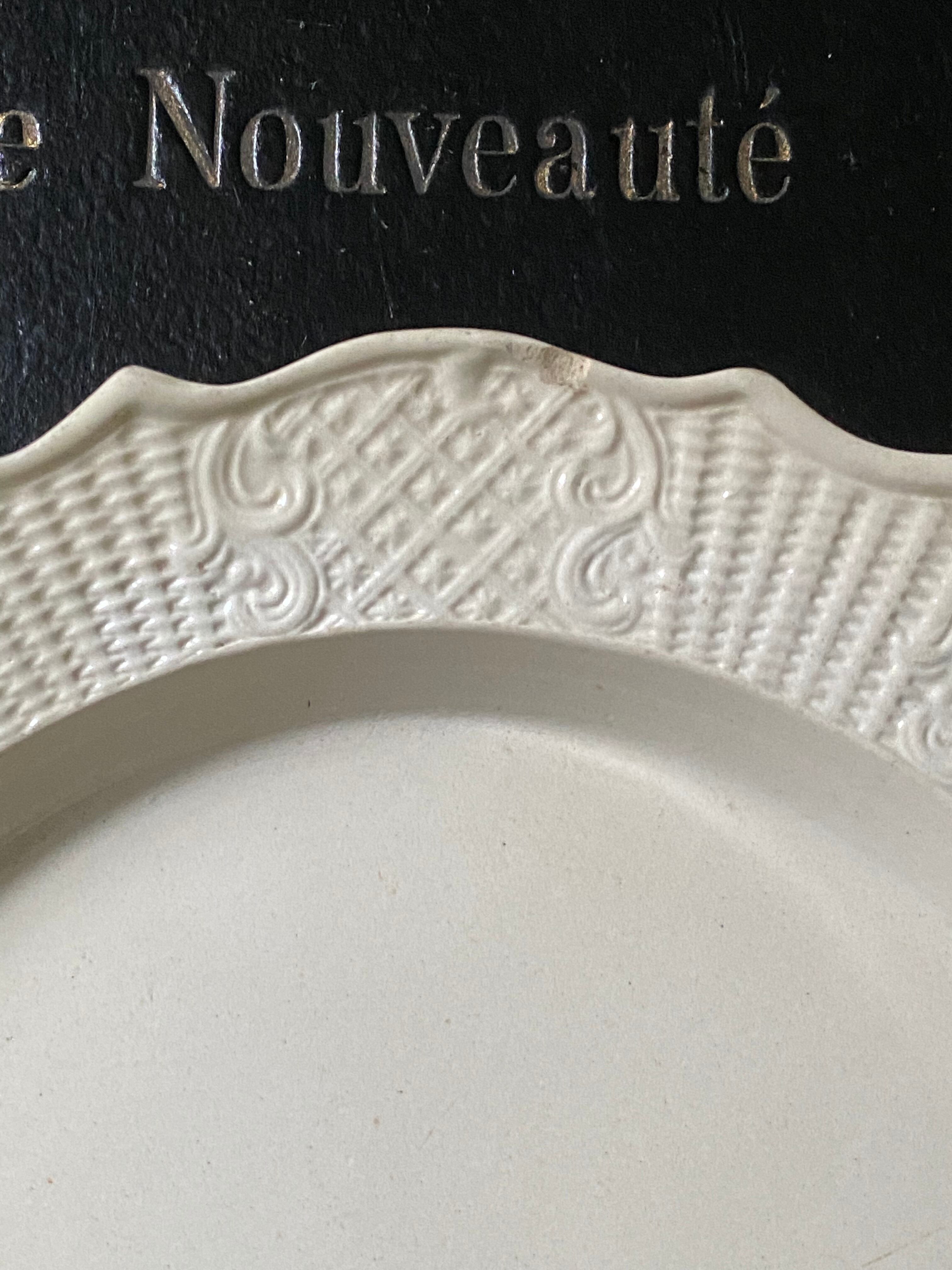 くっきりと出たリムのレリーフやアウトラインが大変美しいシリーズで、マットでグレーを感じる白が普通ですが、こちらはベージュも感じるような白です(お写真には白の微妙なお色味が出ませんのでお手元でご覧ください)