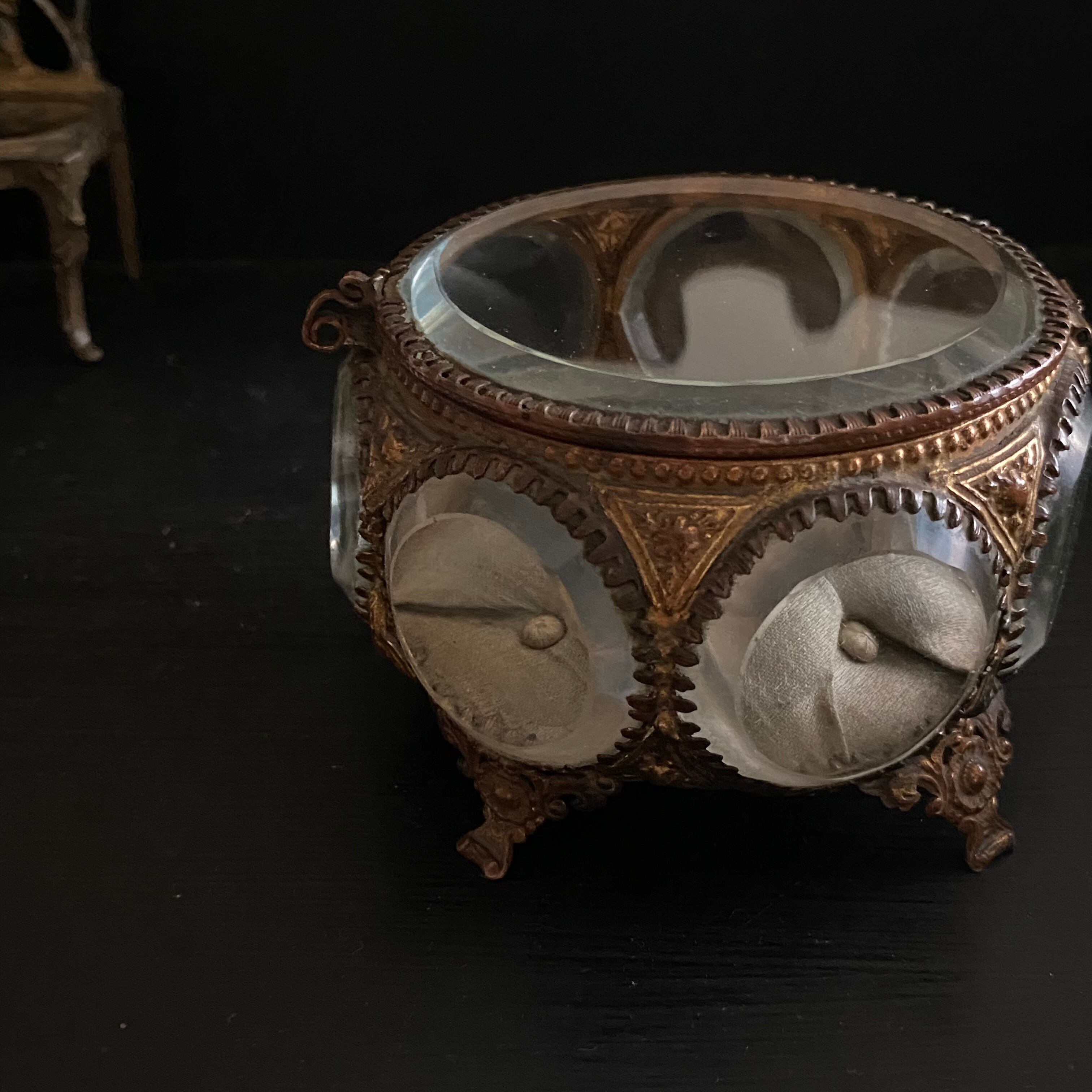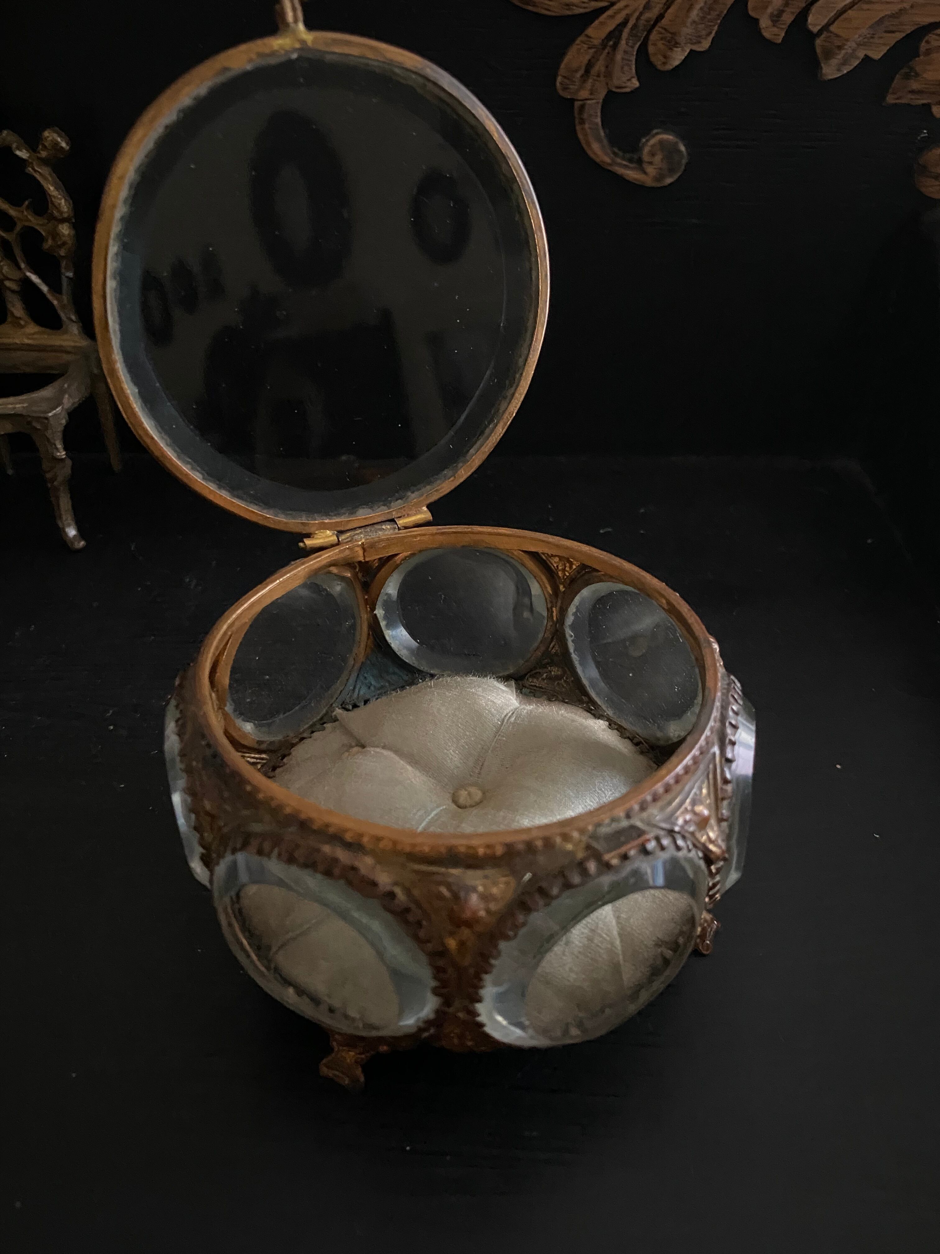 ビゾデ面取りガラスジュエリーケース/淡緑ラウンド
