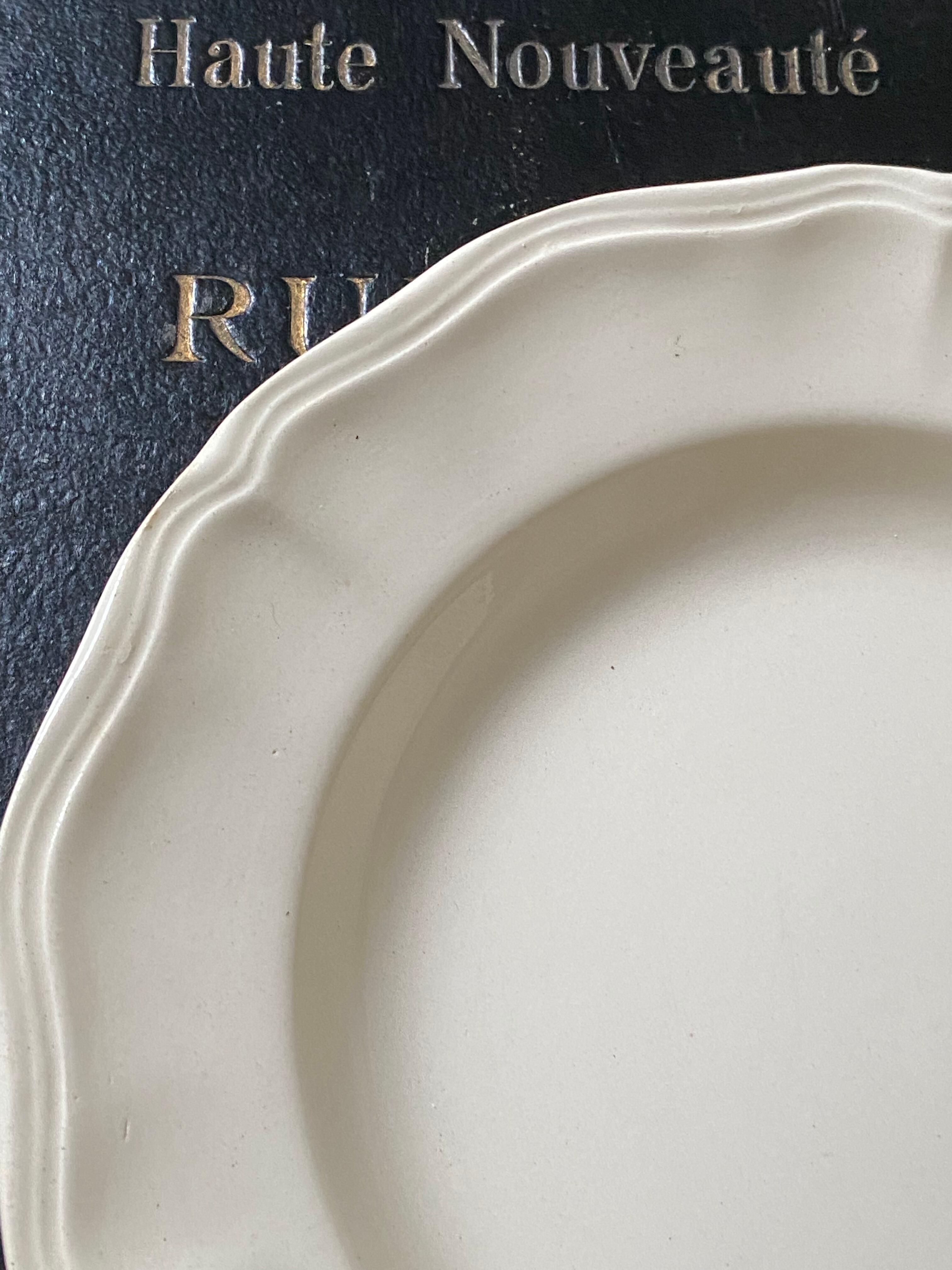 柔らかなクリーム系アイボリーカラーの人気の花リムプレートですが、コンディションの良いものにはなかなか出会えなくなっています。