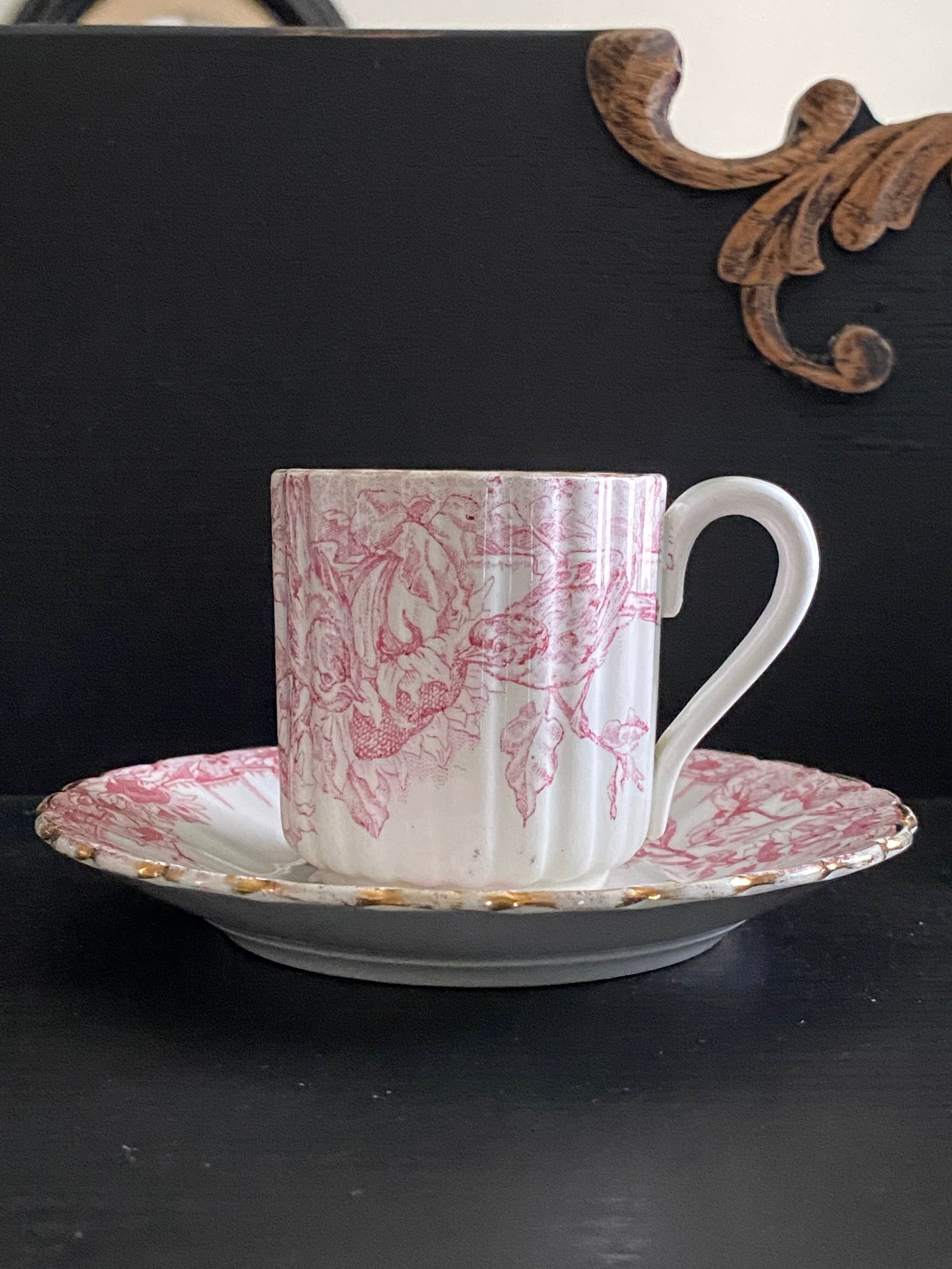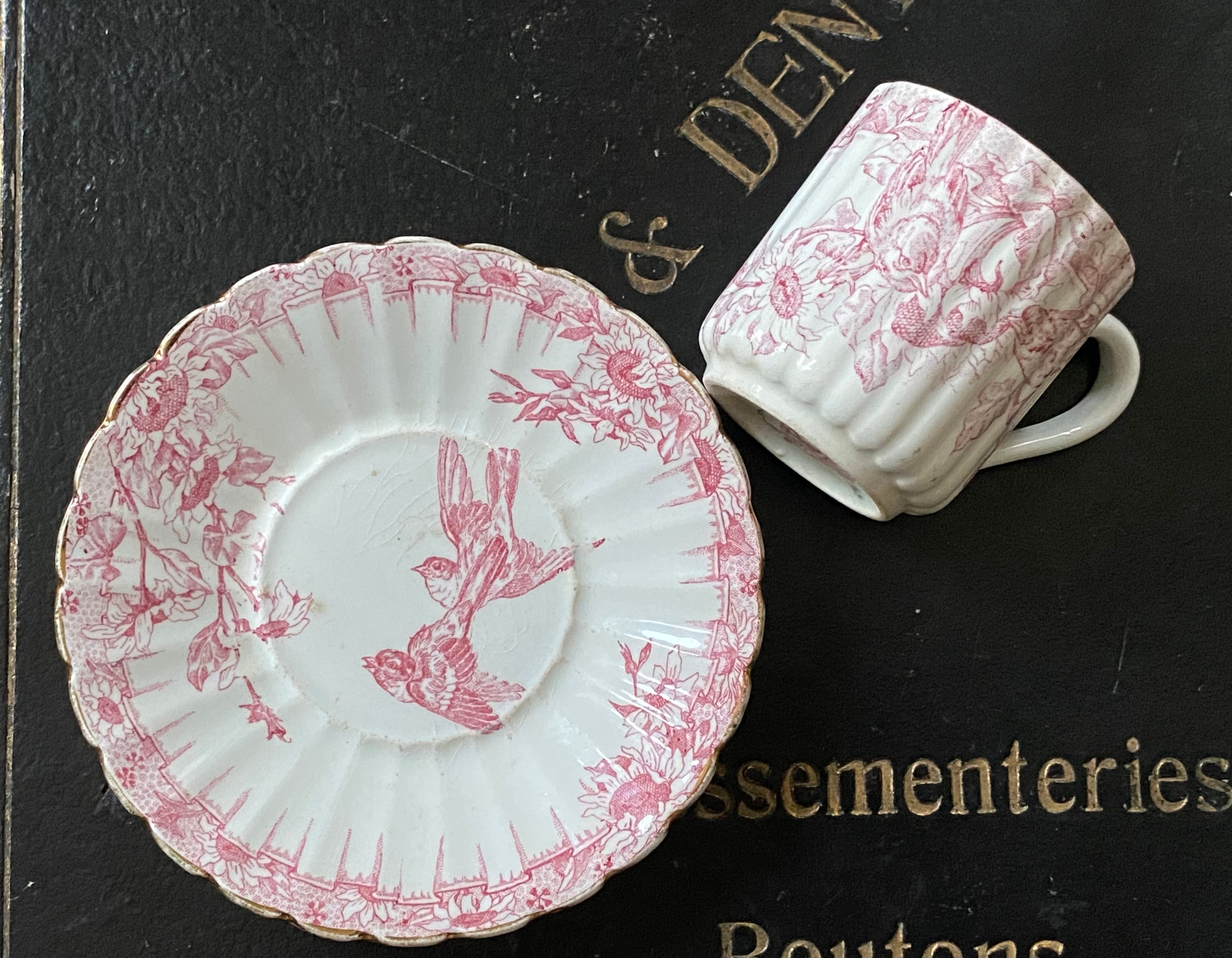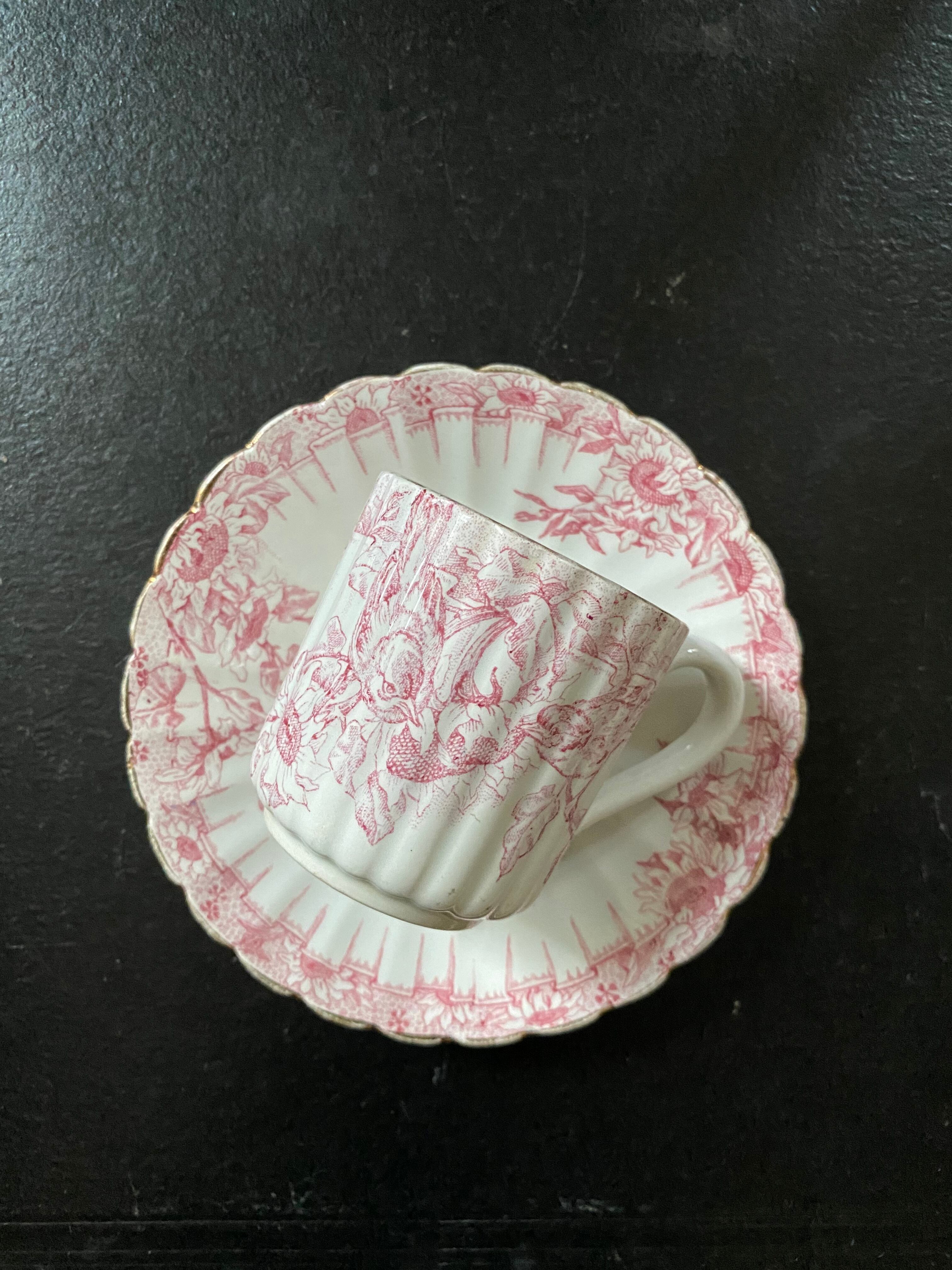 リュネヴィル*カップ&ソーサー/小鳥ピンク系デミサイズ