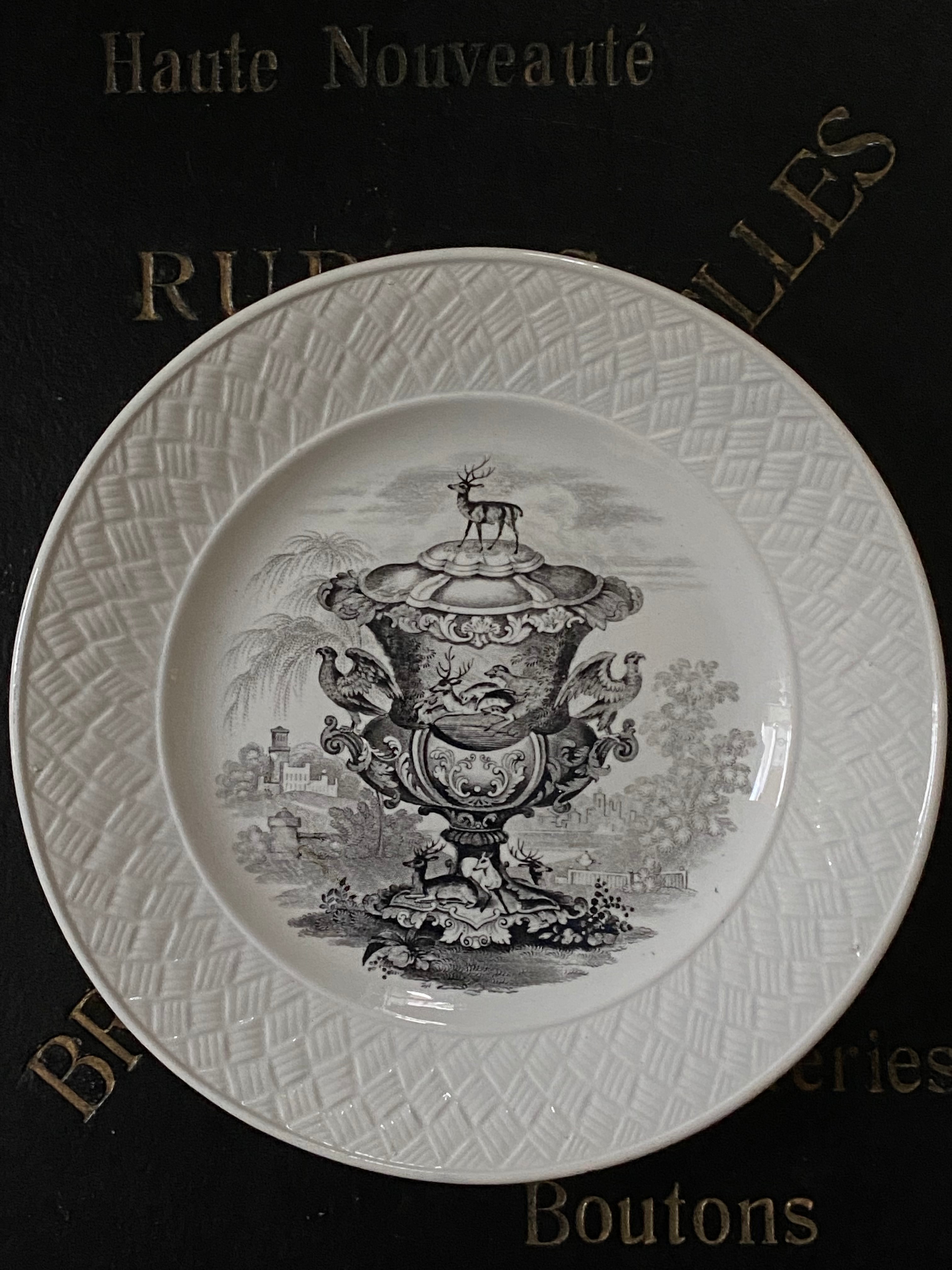 Dジョンストン ボルドー*グリサイユ パニエレリーフ プレート
