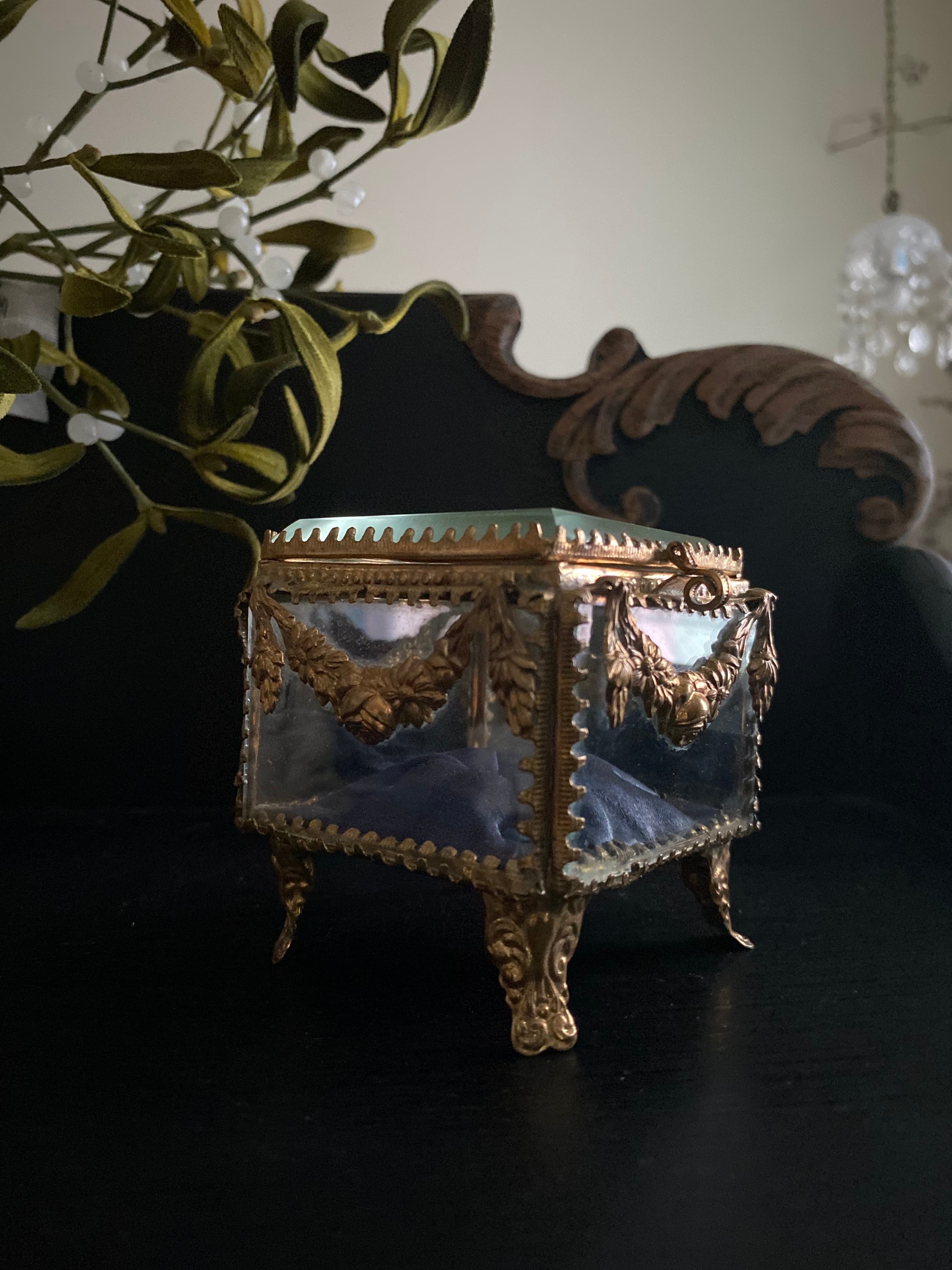 クッションブルー*ビゾデ面取りガラスジュエリーケース