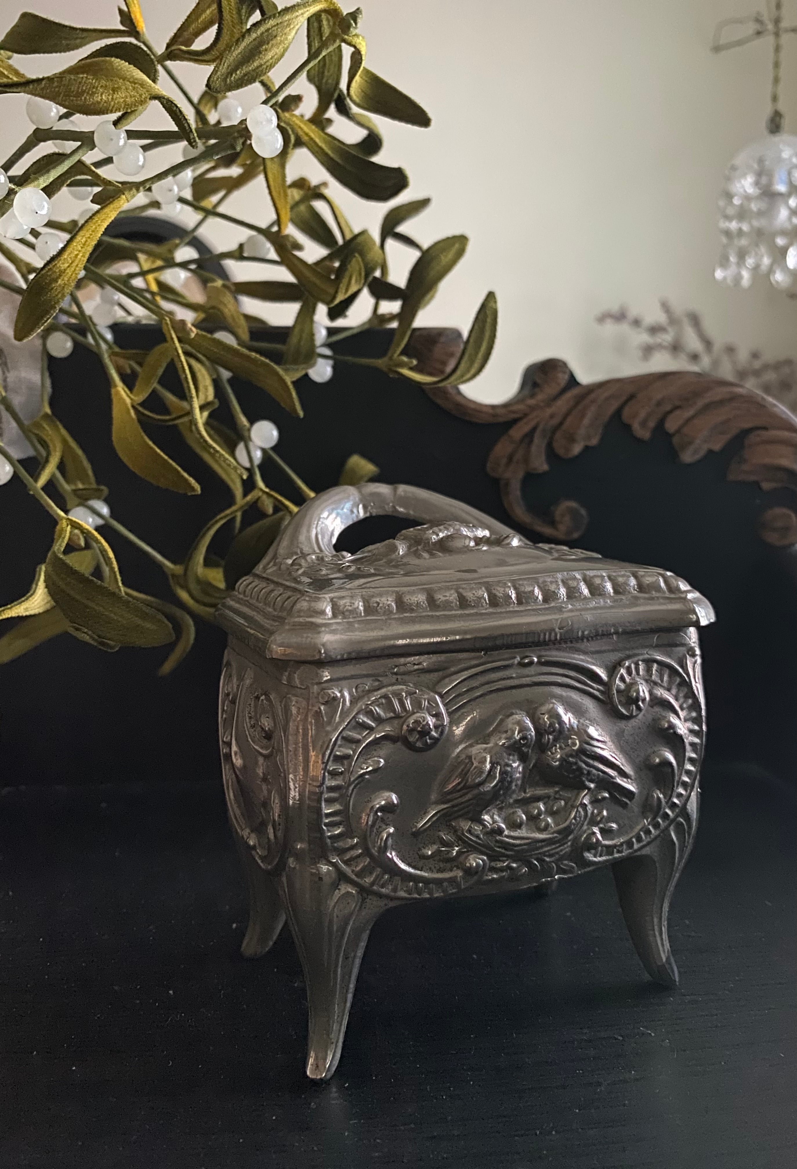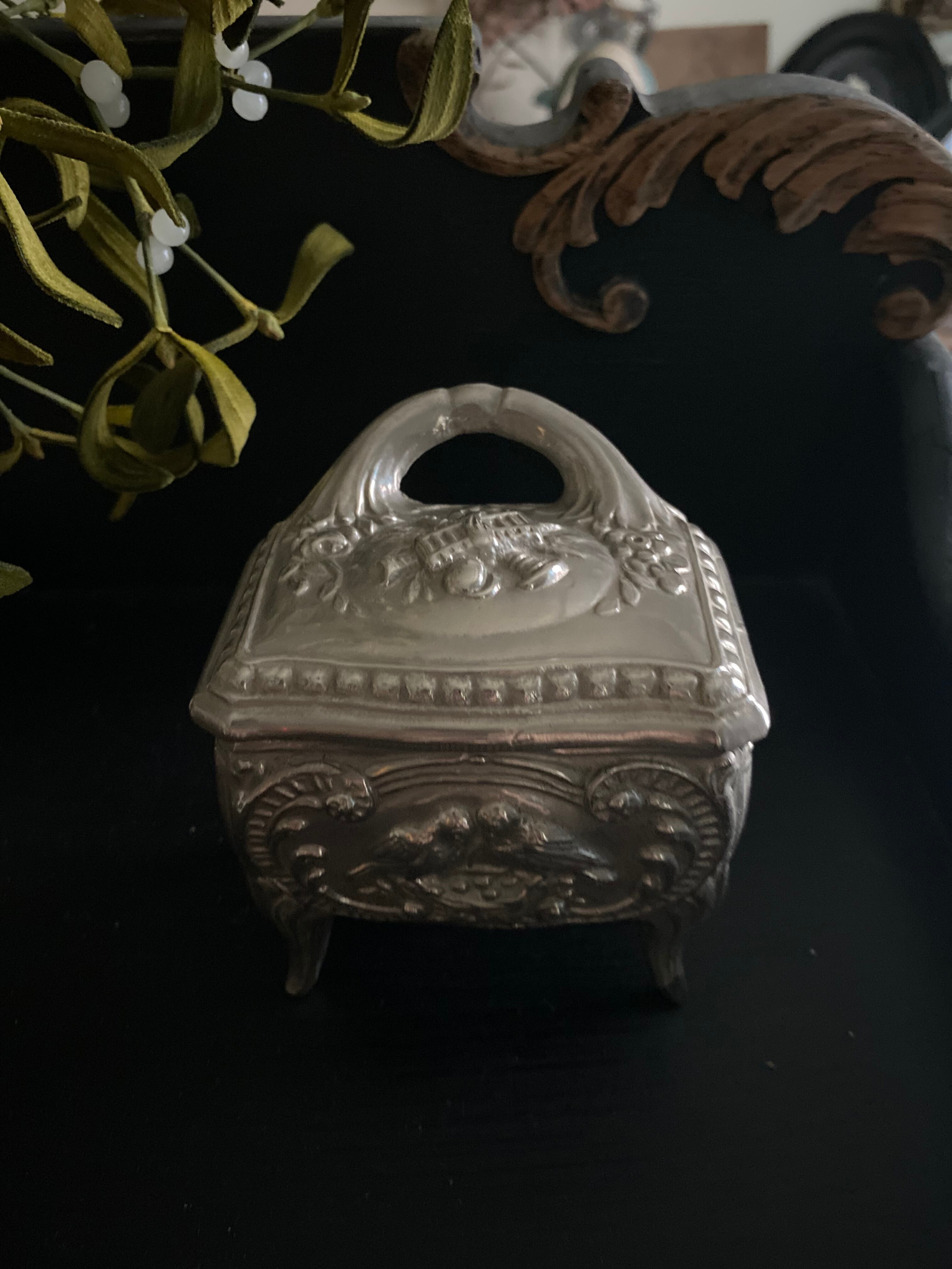 小鳥やルイ16世スタイルを思わせるモチーフなど、裏面迄5面にレリーフが施されたステキなジュエリーケースです。