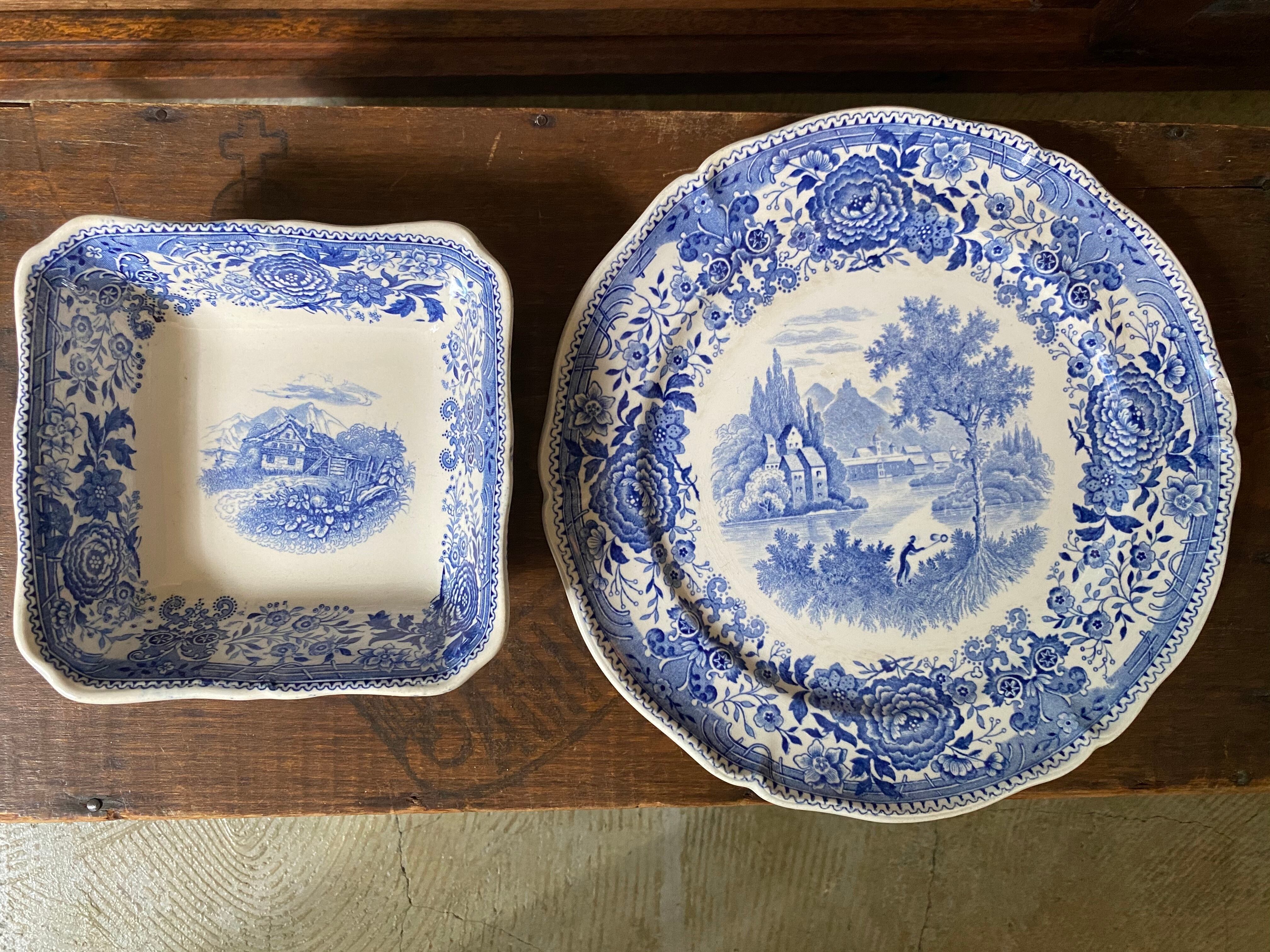 各国でも作られている人気のブルーパターン。1920年~のバックスタンプの異なる2品をジョイントしてお得にご紹介します♪