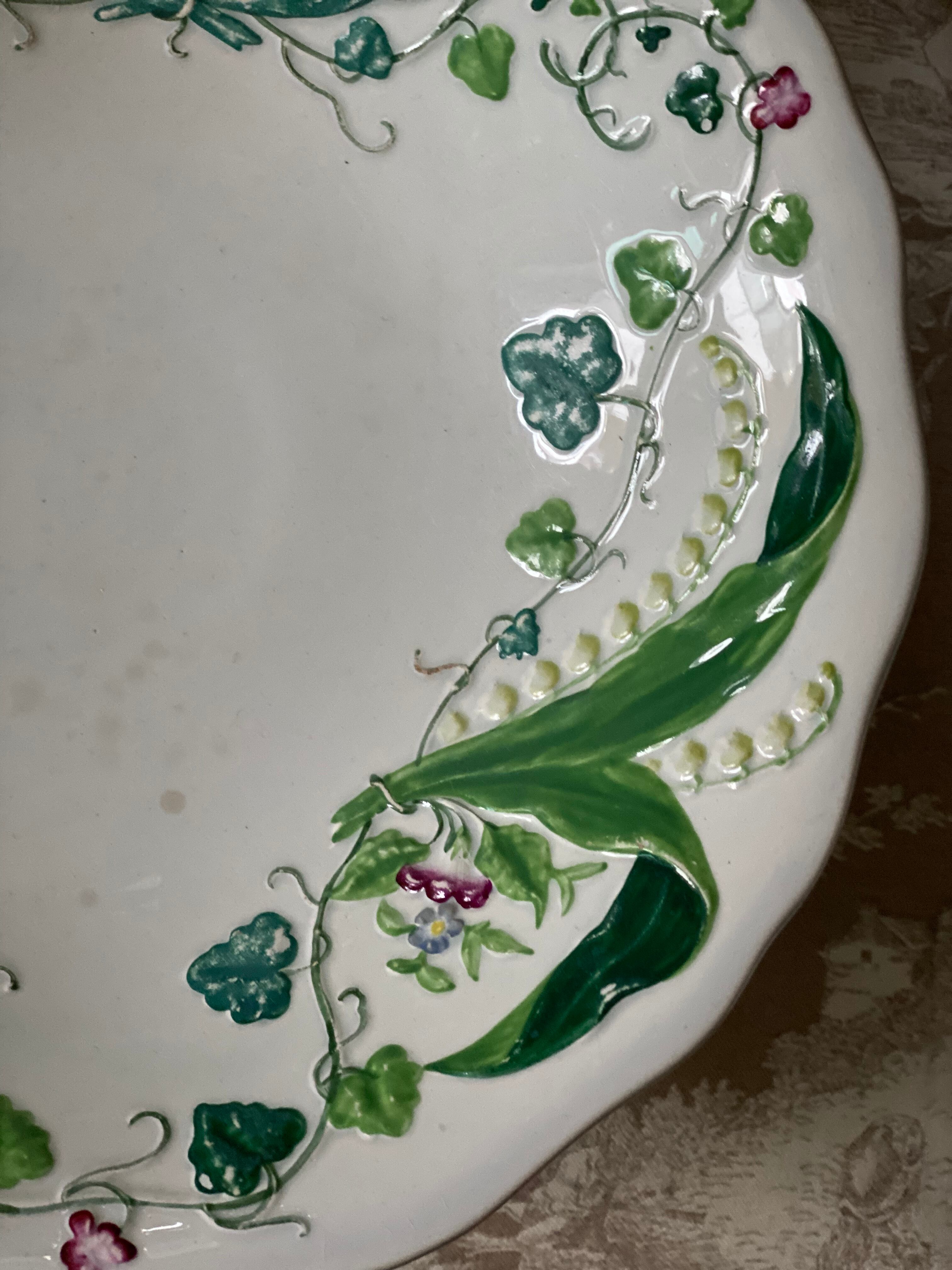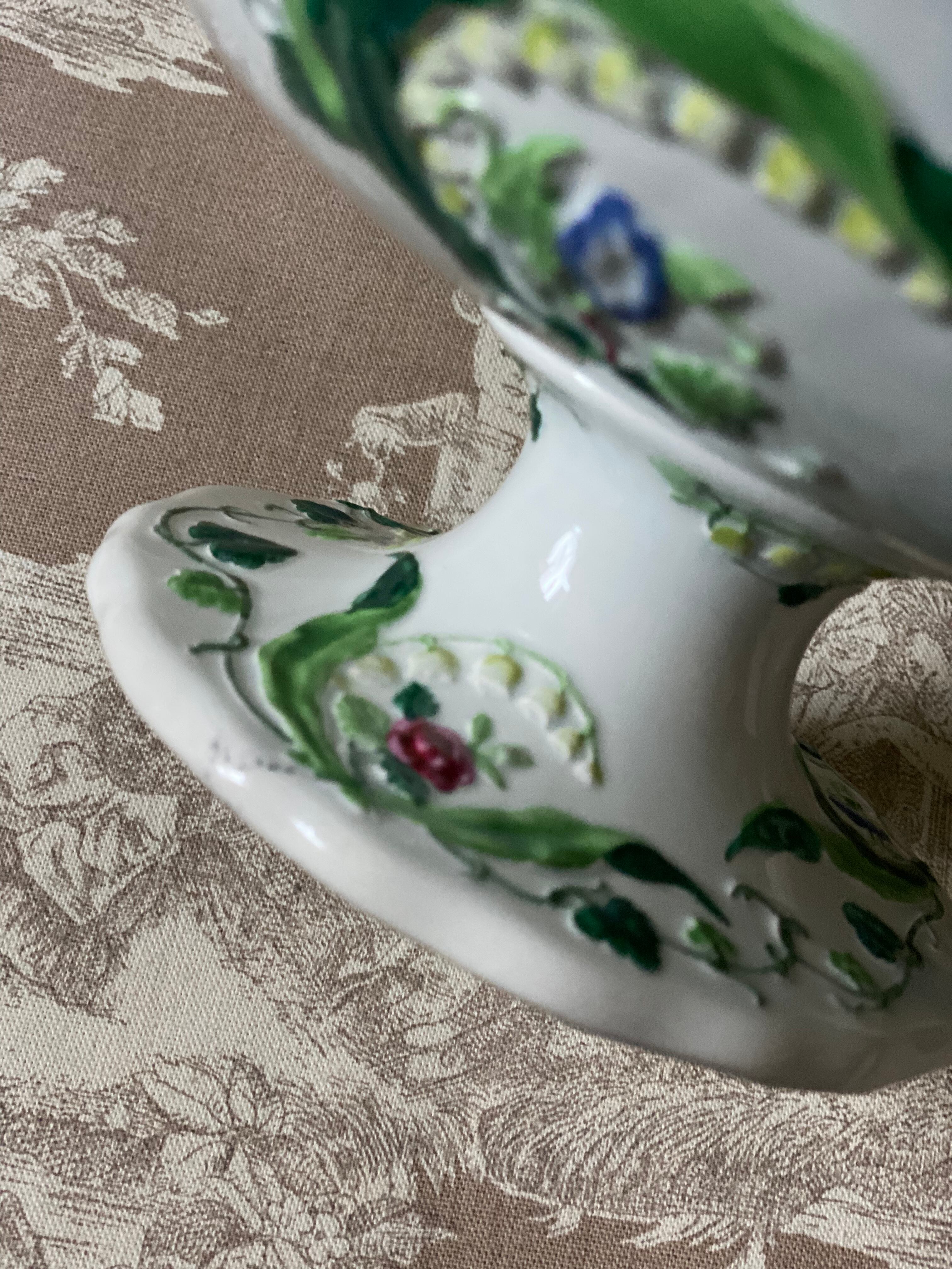 鈴蘭はじめお花たちのレリーフが美しいシリーズです。このタイプは釉薬の上からの手彩色の為、同じモデルでもひとつひとつ彩色具合が異なります。こちらは大変美しい仕上がりです♪