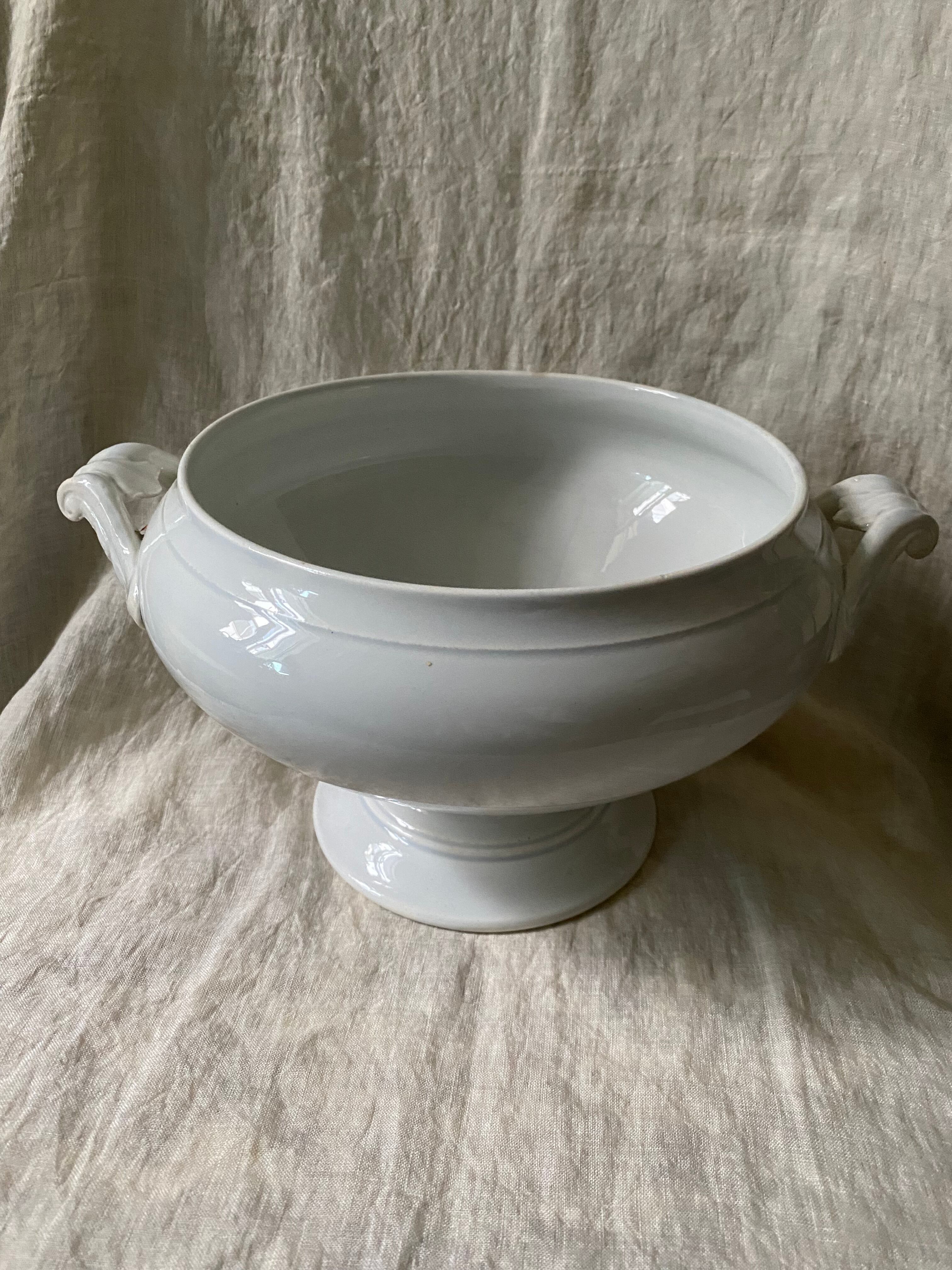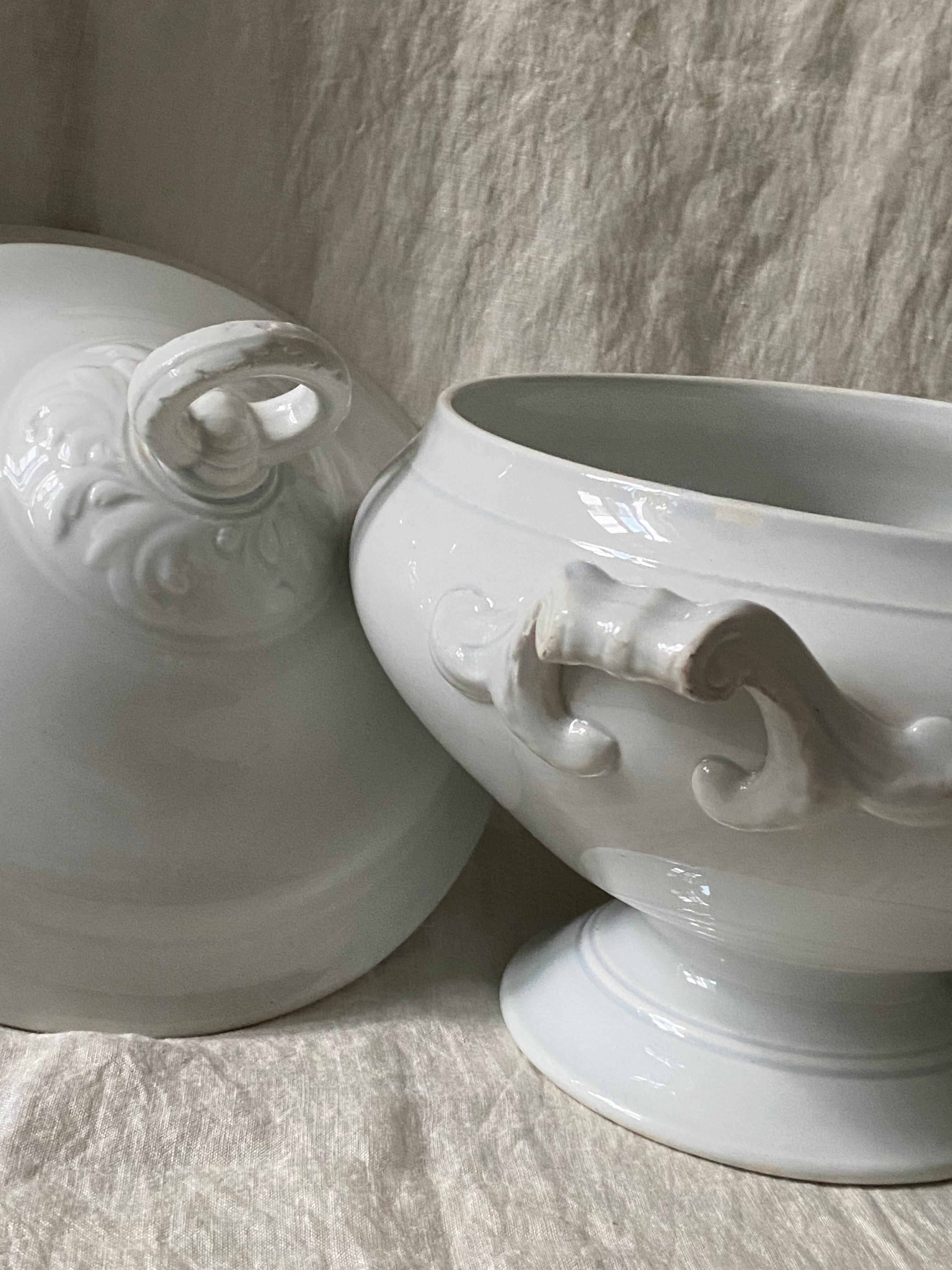 蒼みを感じる白釉、蓋のレリーフなどの意匠も美しいスーピエールです。