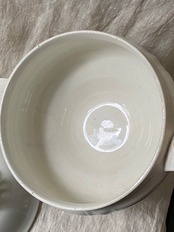 作陶時から蓋摘みの裏に穴が空いており、ここから水分等が入った為か蓋摘み辺りがベージュカラーに色づいています。これがまた意図的なツートンカラーのように美しい景色となり唯一無二のお品となっております。