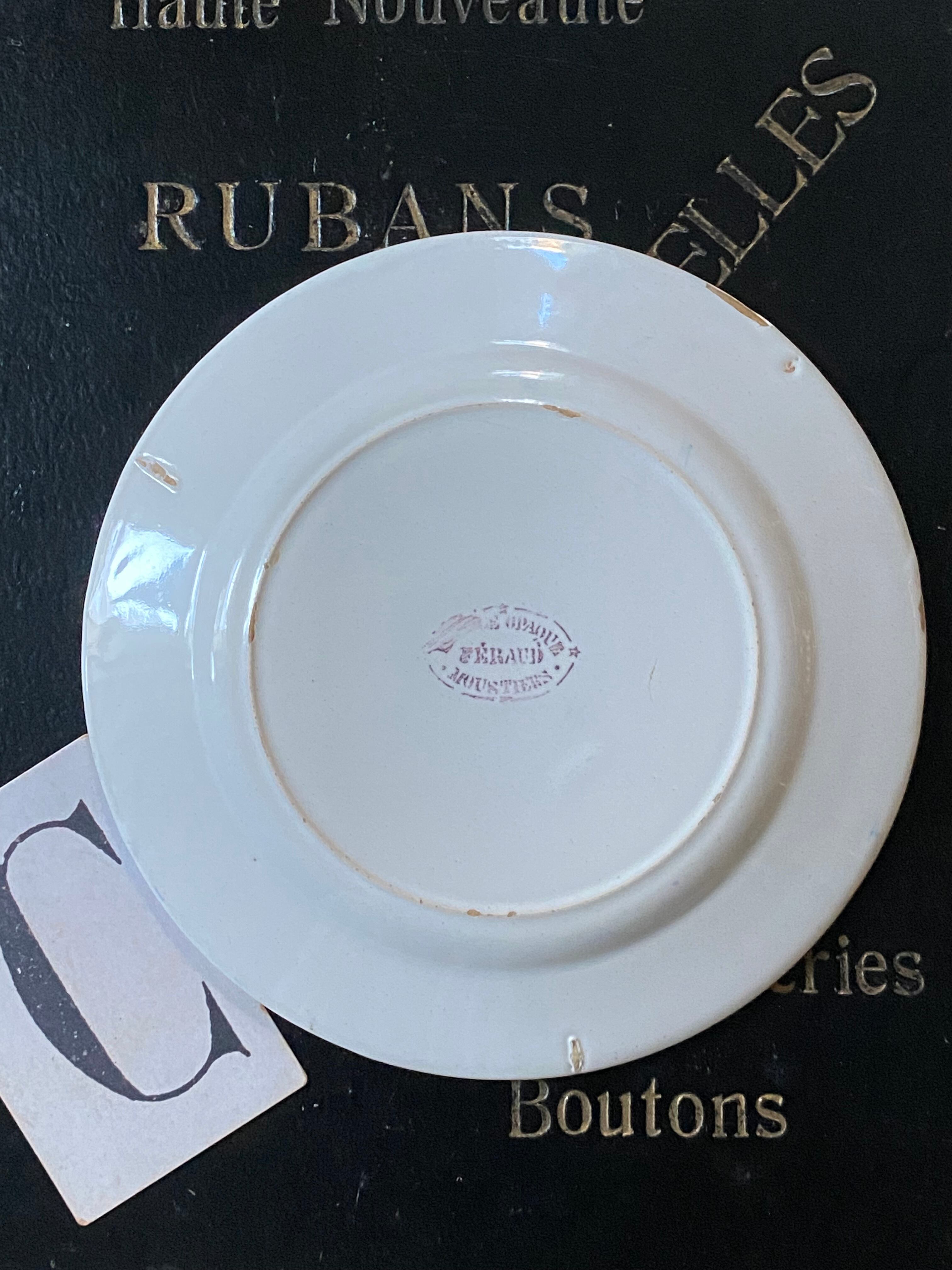 ムスティエや南仏系の陶器ではありそうでない小さめサイズの平皿。程よい厚みでたっぷりとかけられた白釉のとても使いやすいデザートサイズです。