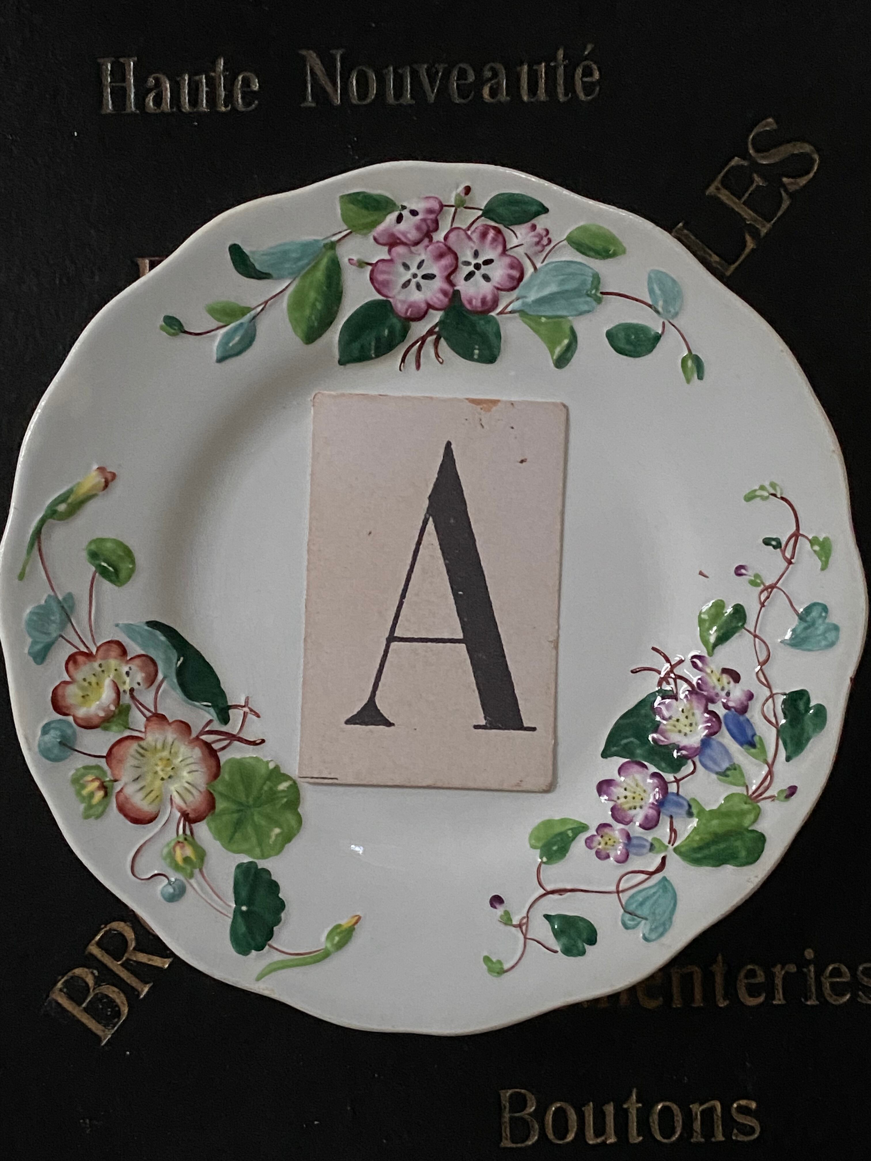 クレイユモントロー*手彩色フラワーレリーフ プレート。231005